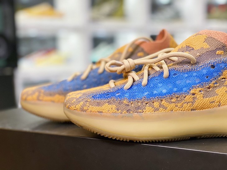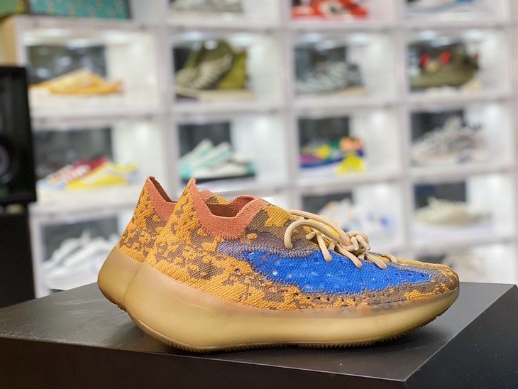 巴斯夫真爆 侃爷联乘adidas Yeezy Boost 380 V1"Blue Oat/Reflectiv"百搭轻便爆米花中底休闲运动袜子慢跑鞋“蓝棕迷彩满天星3M”FX9847 尺码:36--47