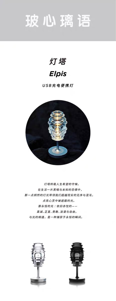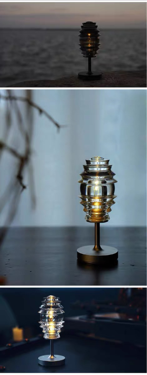 玻心璃语|灯塔 氛围灯 usb充电 户外便携 台灯 原创设计 光学玻璃