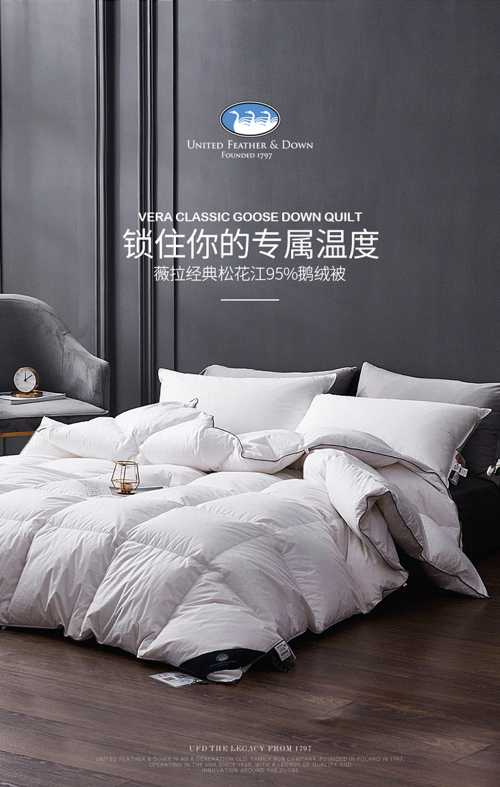 UFD纯棉羽绒被95白鹅绒冬被加厚双人鹅绒被酒店定制冬季被子被芯