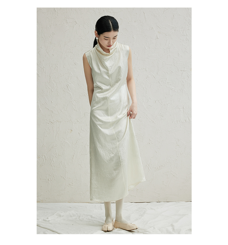 oldcolour白色简约连衣裙2022秋季新款法式气质高级感无袖长裙女