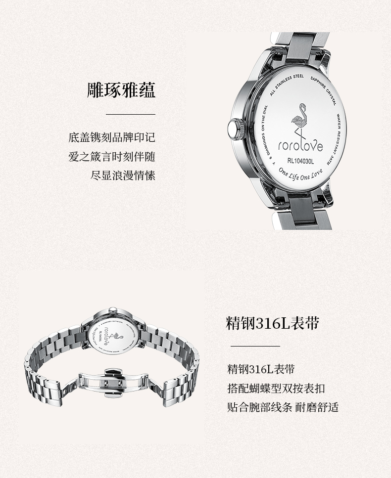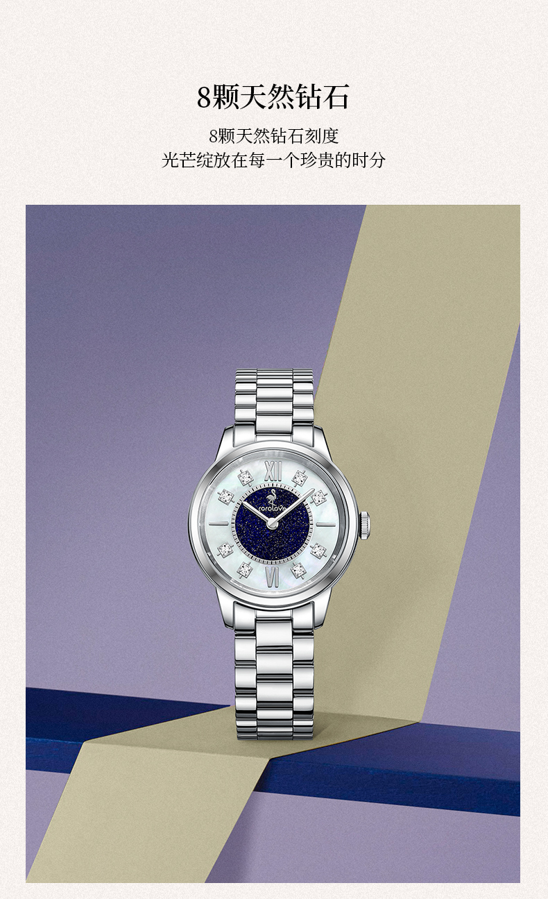 【ROROLOVE】邂逅Enchanted系列 天然钻石腕表 天然钻石时尚气质手表女精致简约女表送礼物 (8颗钻)