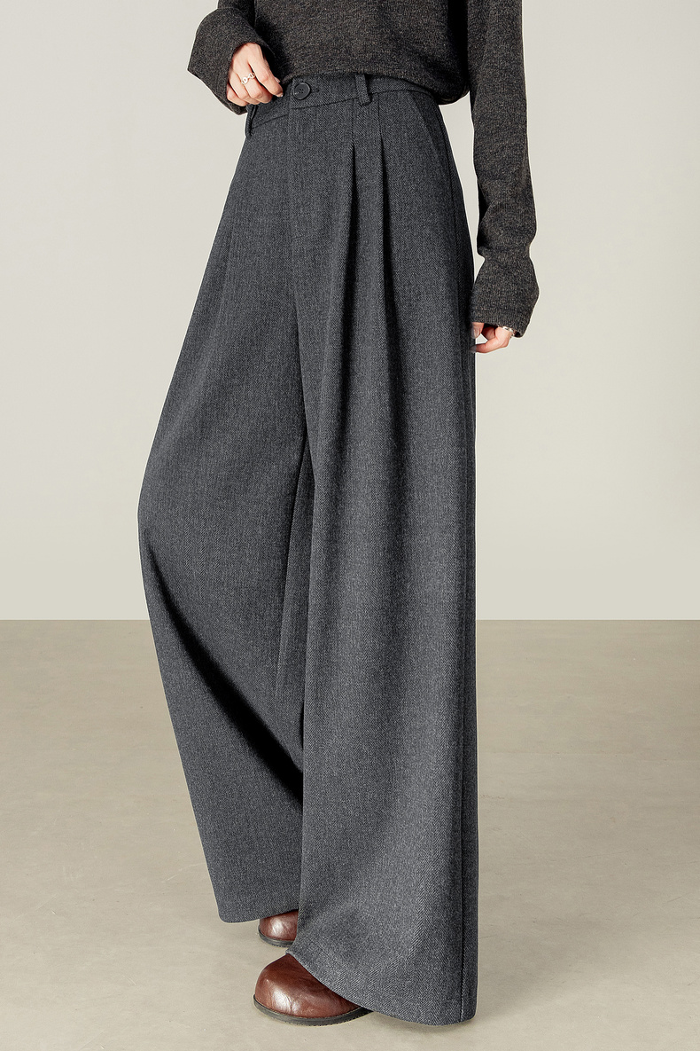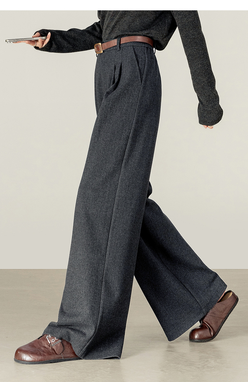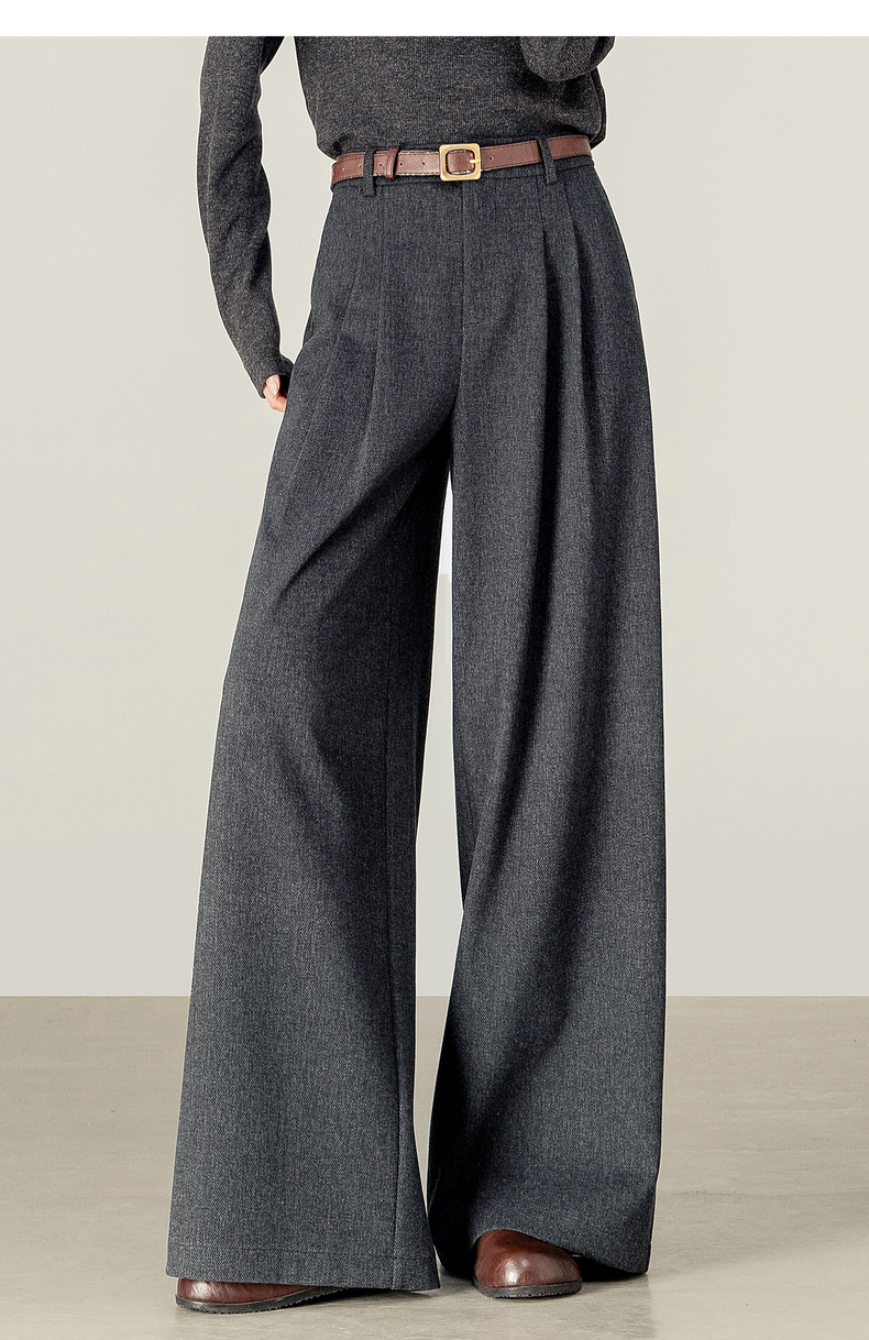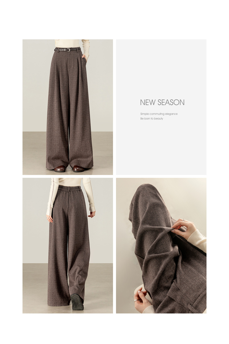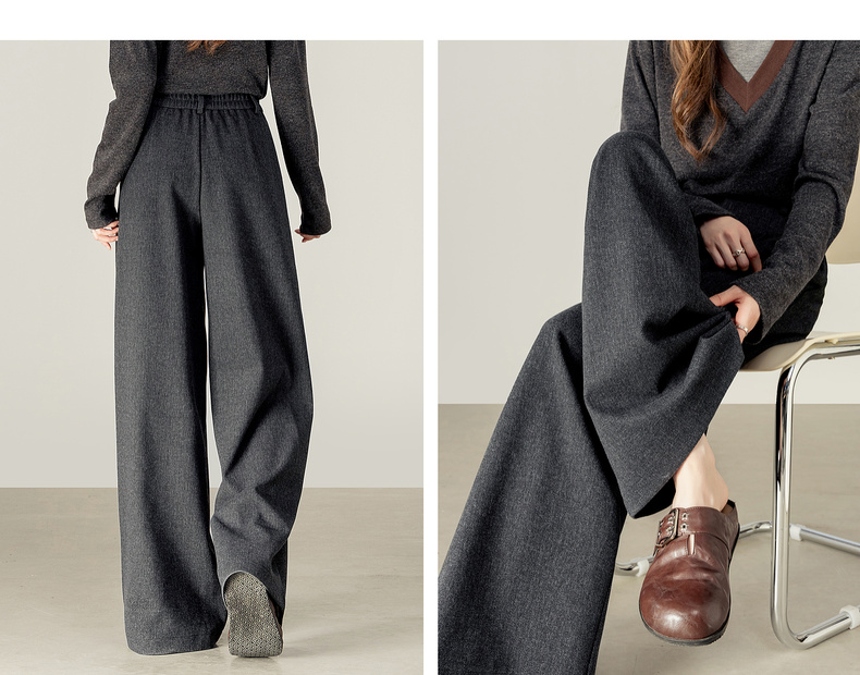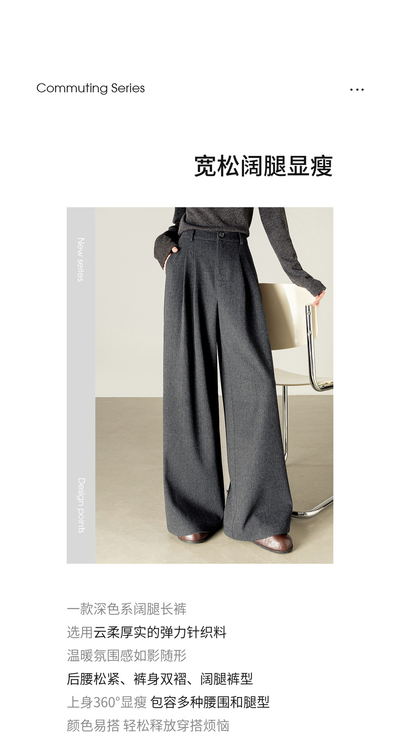 【内购】【瘦瘦裤】通勤梨型身材松紧腰立体双褶弹力厚针织宽松阔腿长裤-153KD2456