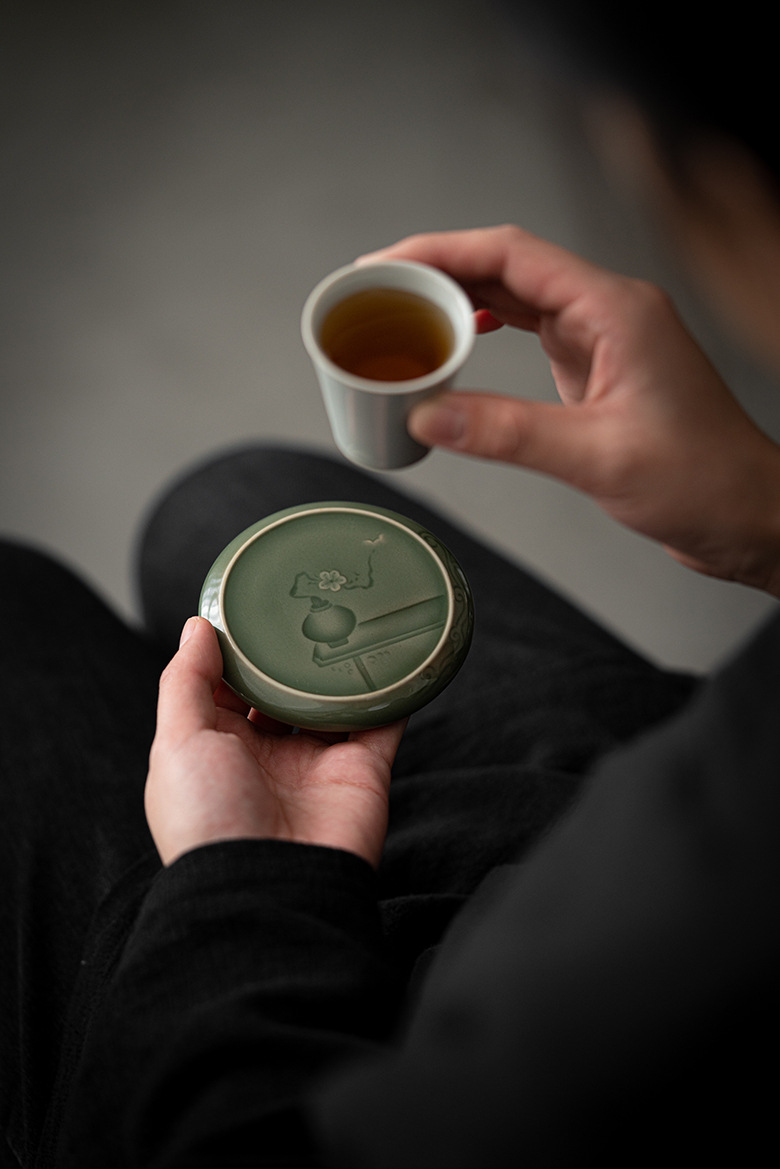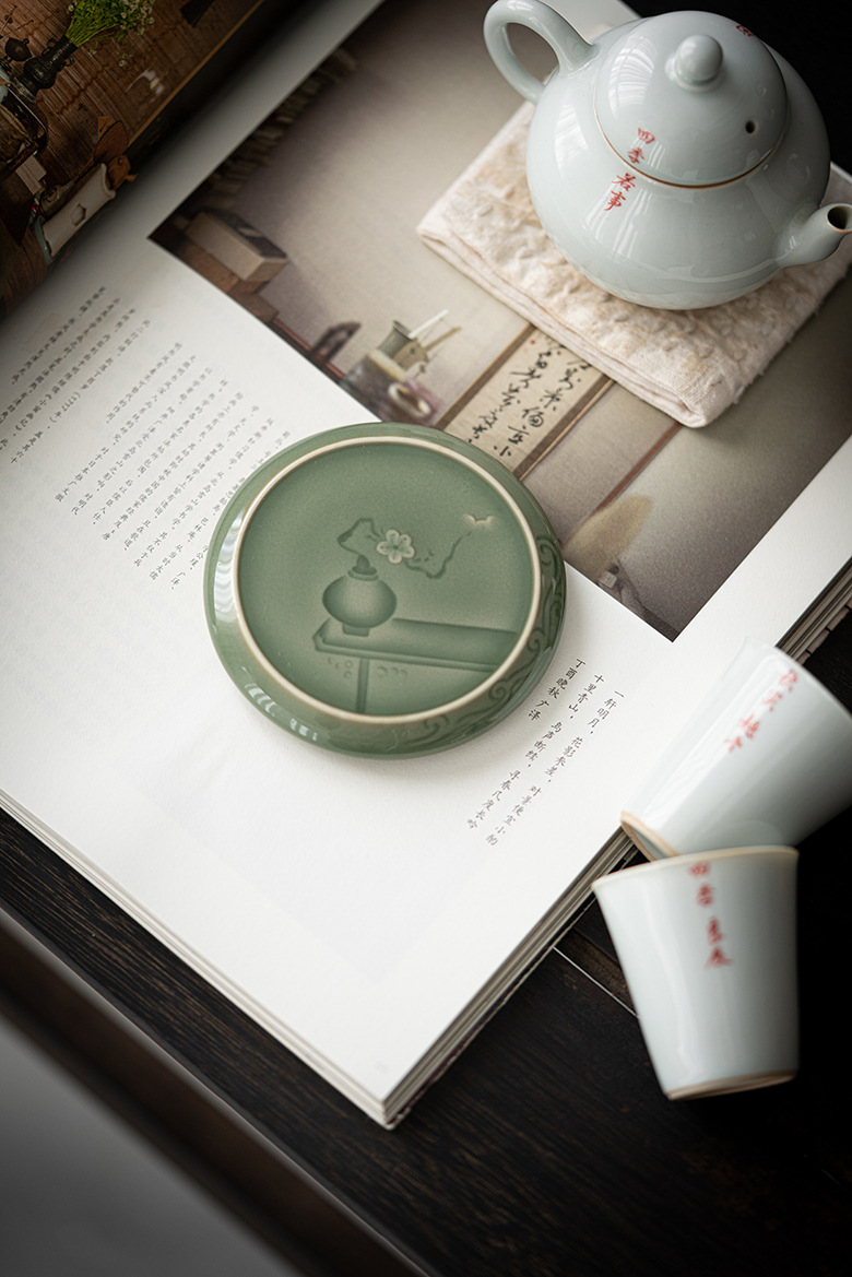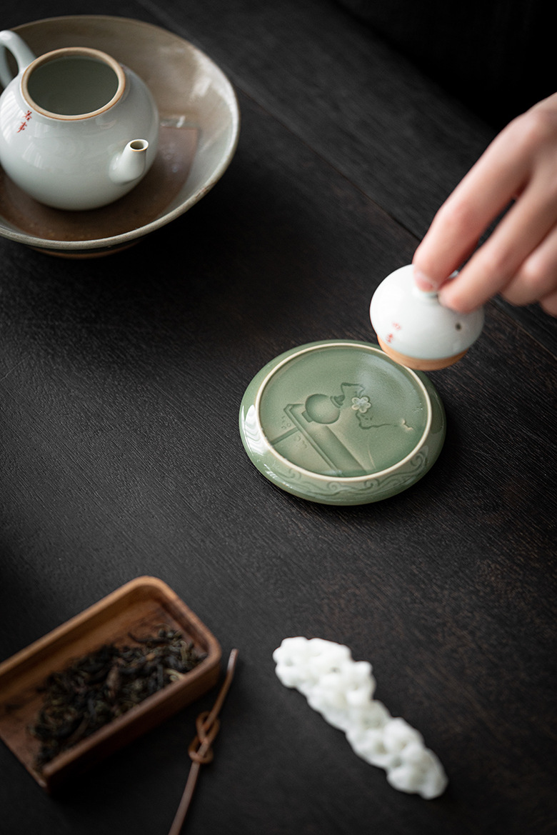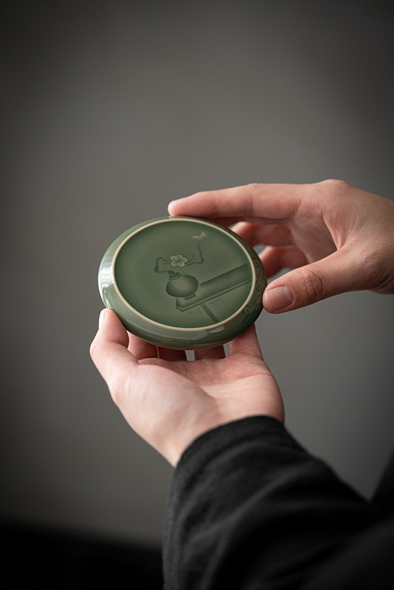 墨己 | 越窑青瓷半刀泥镜花盖置