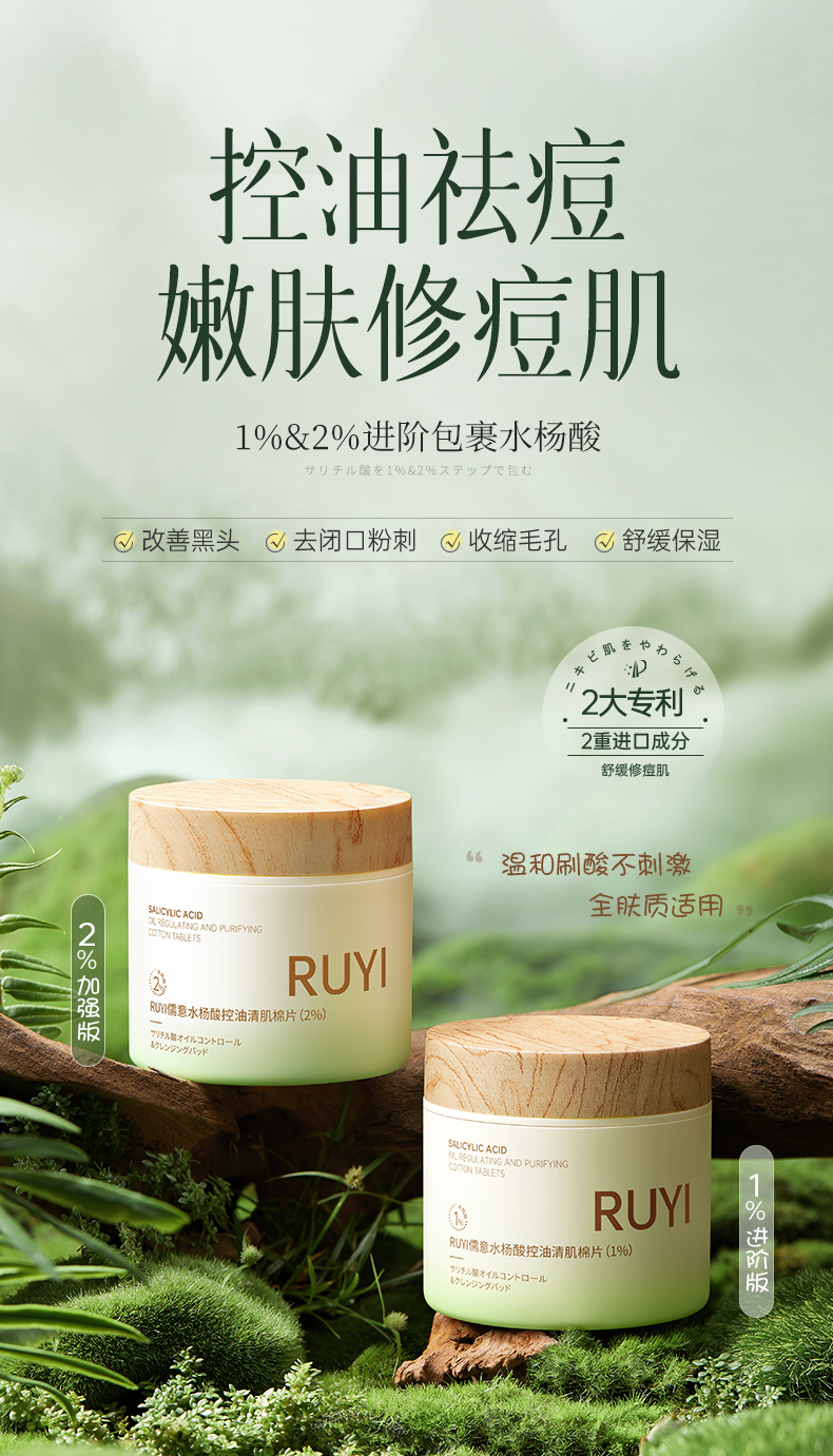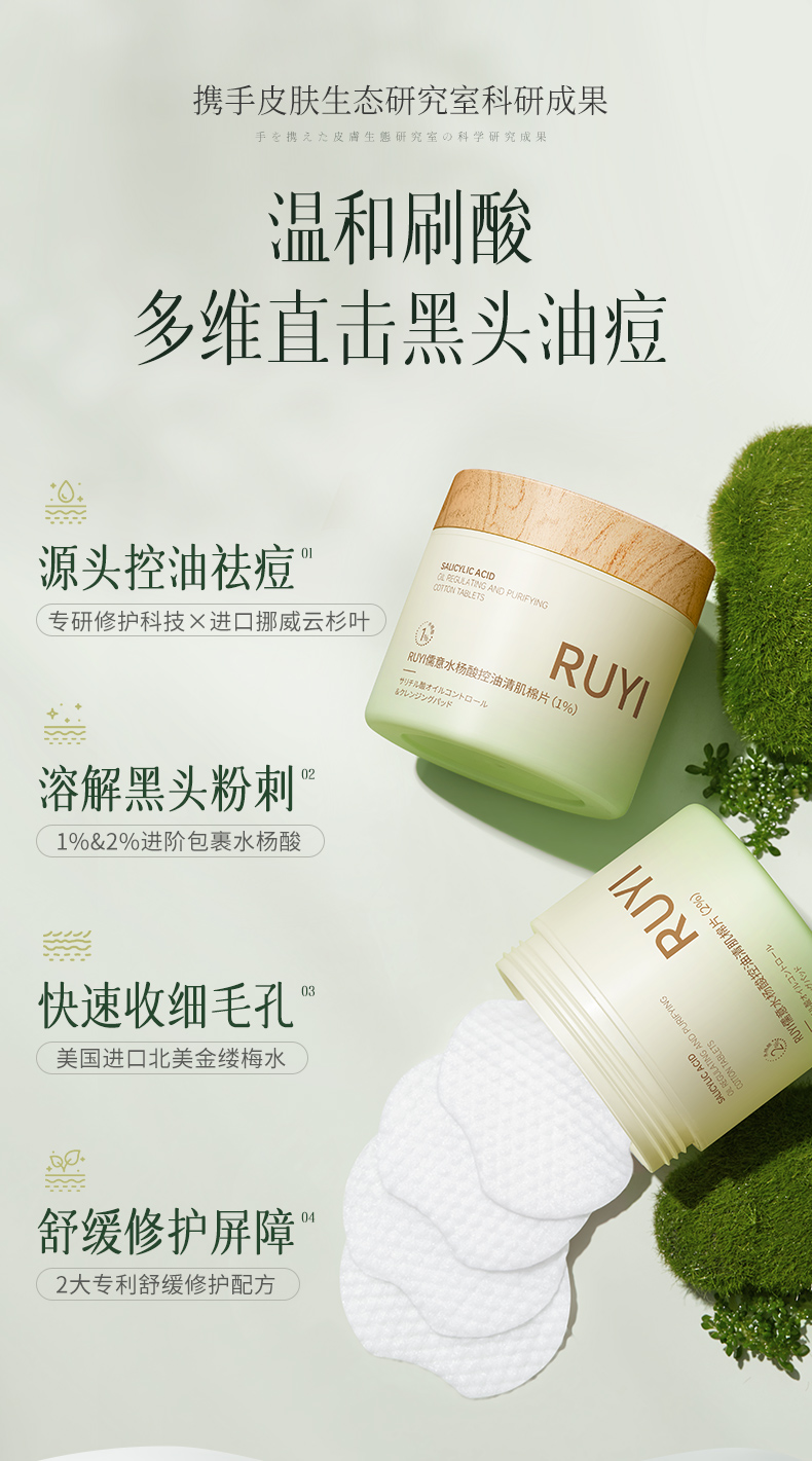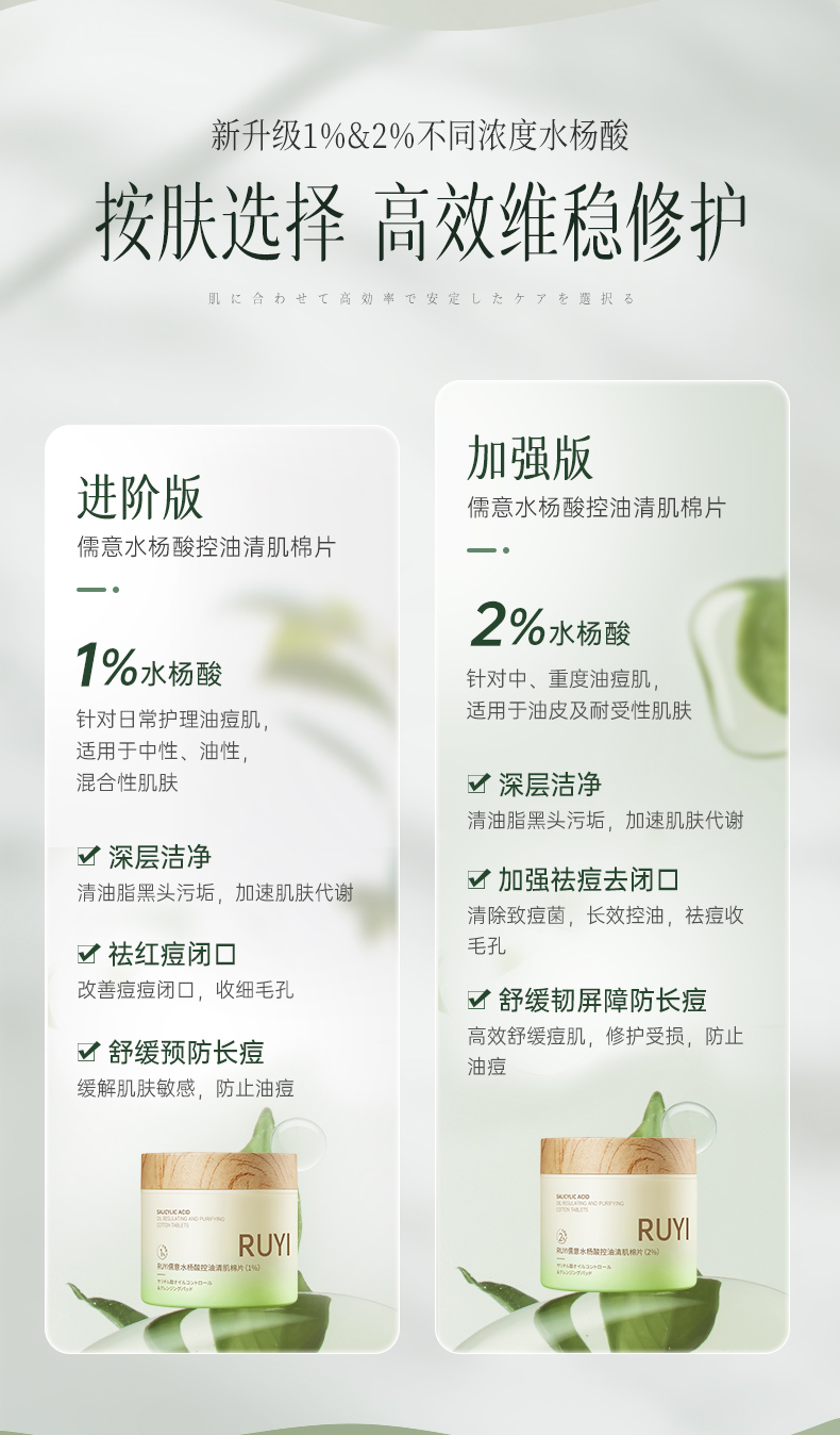 儒意水杨酸控油清肌棉片52片/1瓶 刷酸去闭口粉刺 祛痘痘印 清洁收缩毛孔 | 儒意官方商城