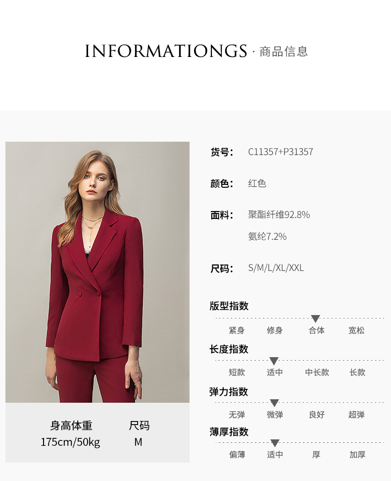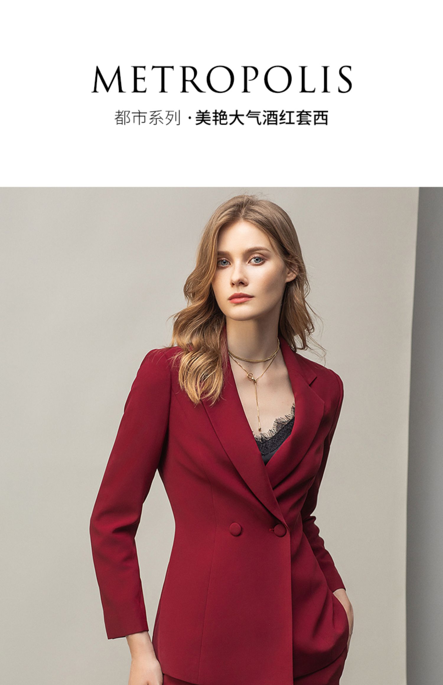 IWY/红色正装女西装套装时尚高端职业装阔腿裤气质女神范西服C11357+P31357