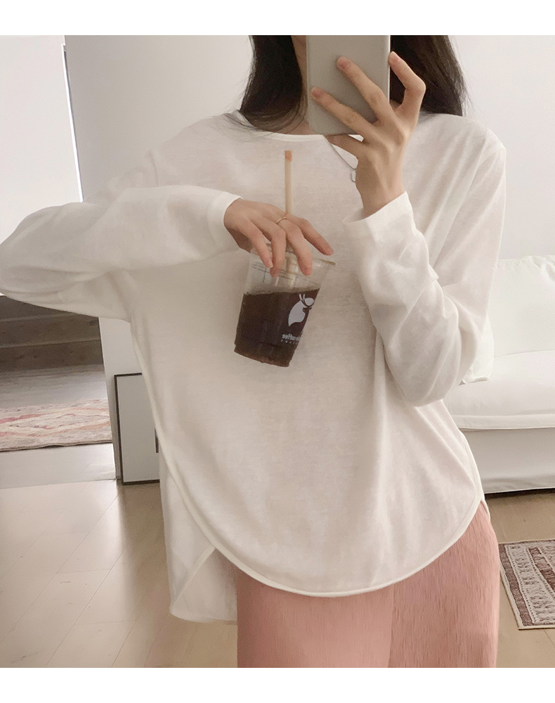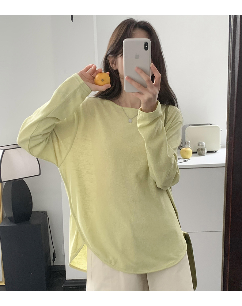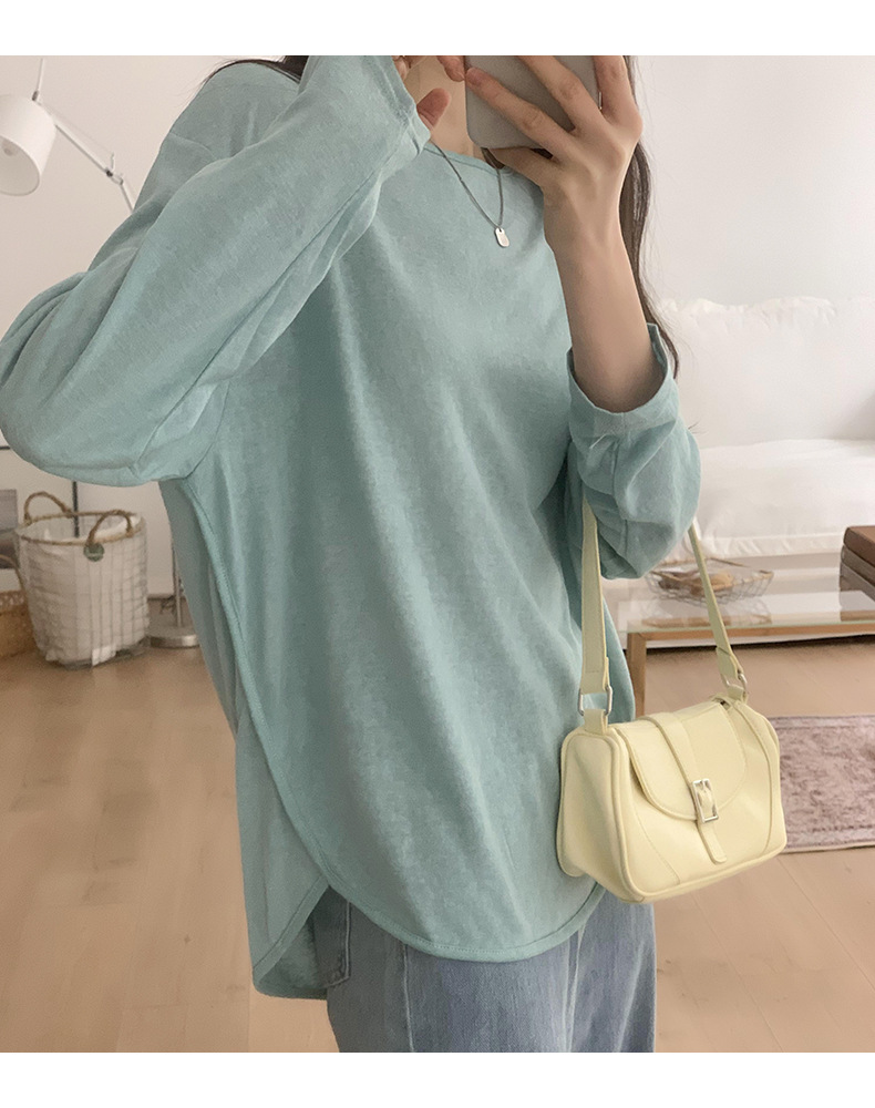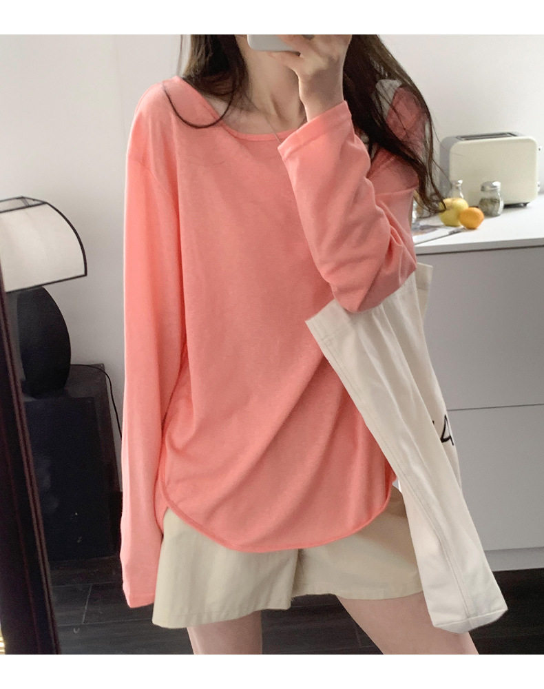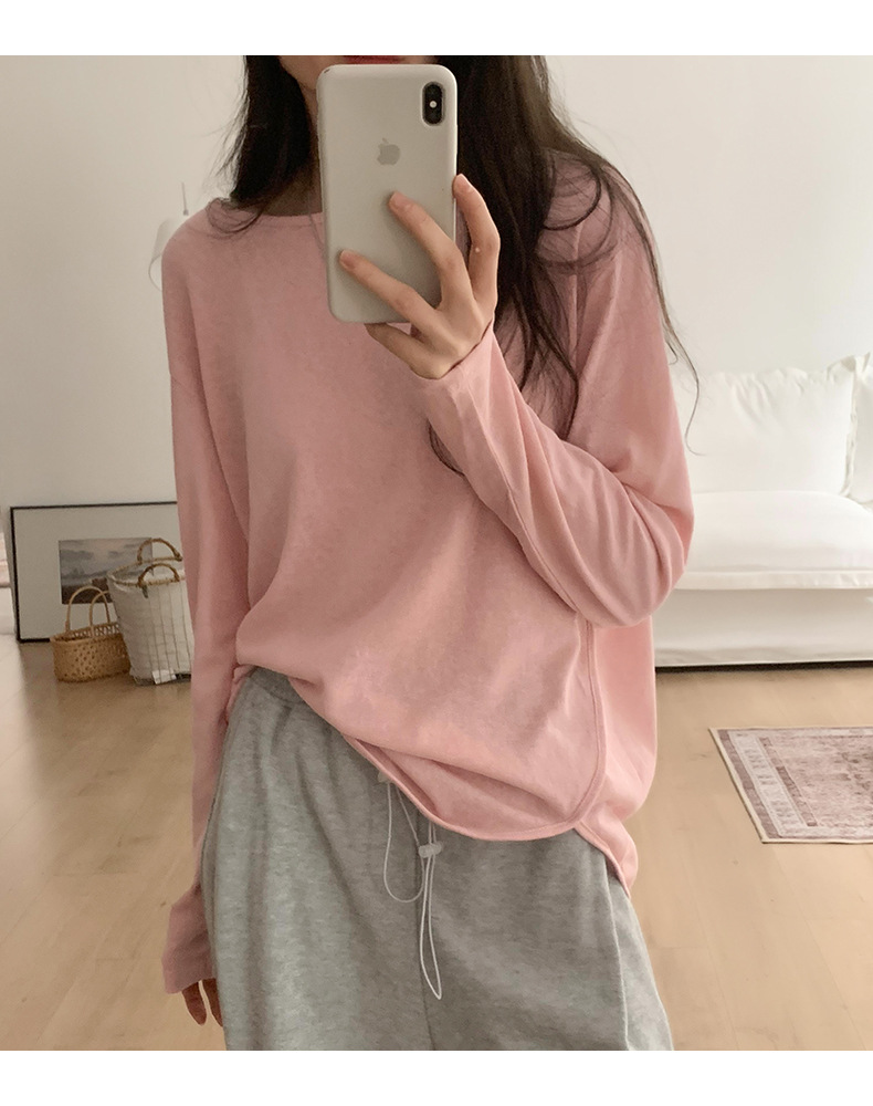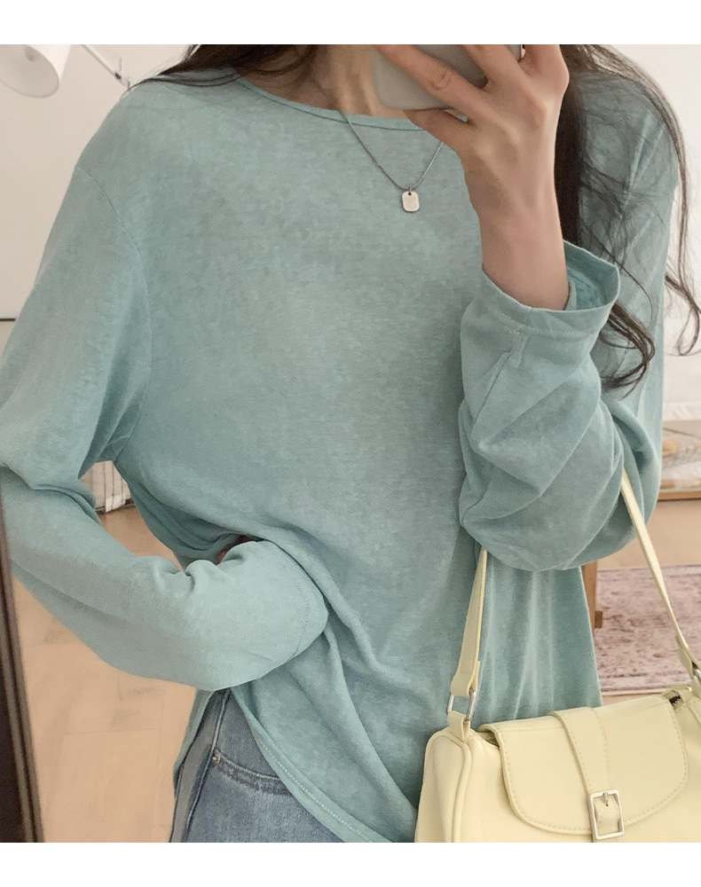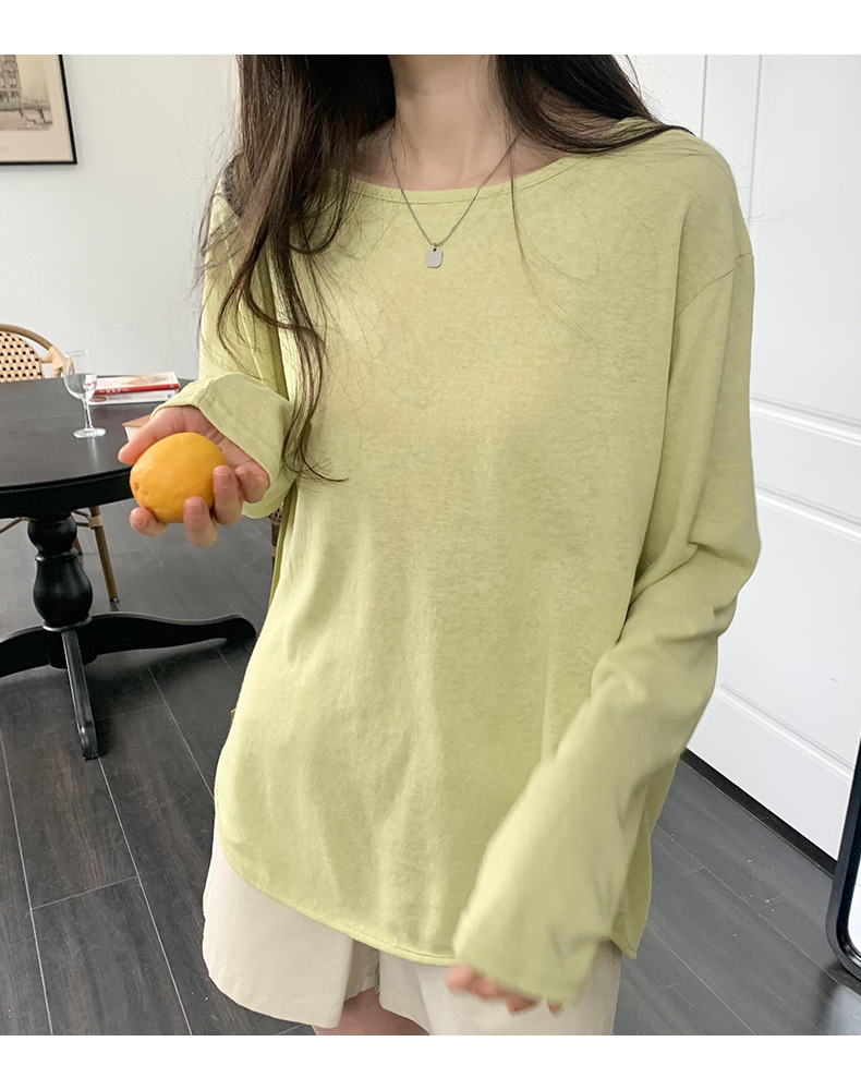 【薄款纯色内搭打底衫】长袖T恤女罩衫 宽松慵懒感防晒上衣面膜T 商品图9