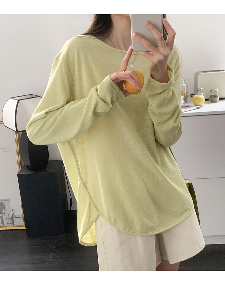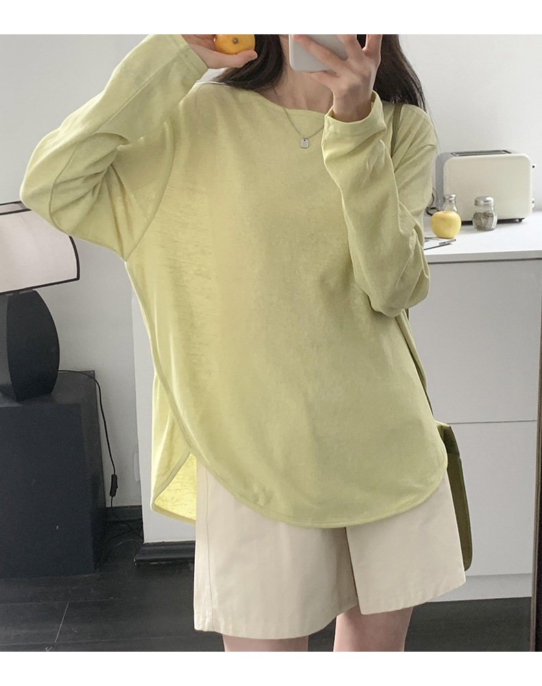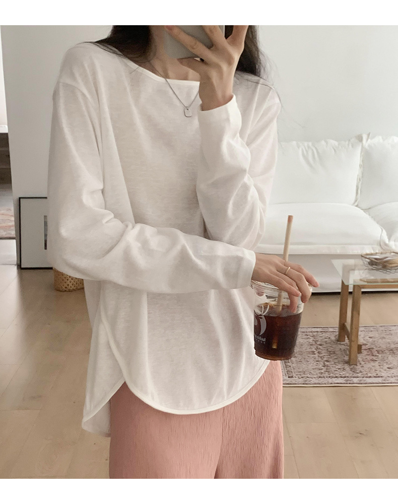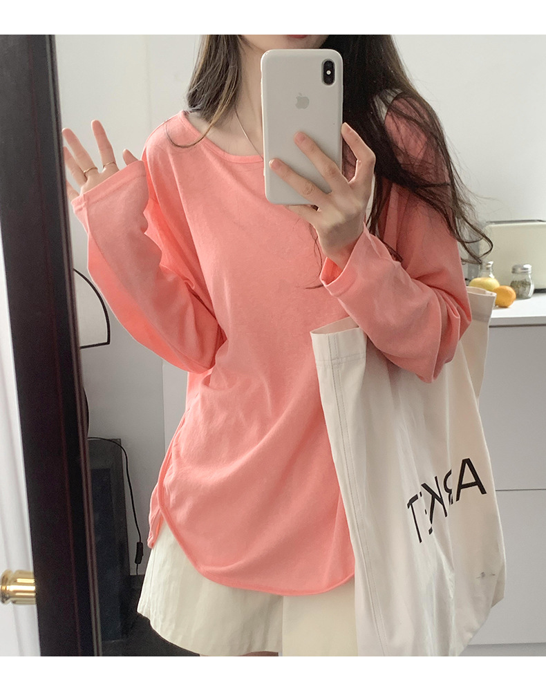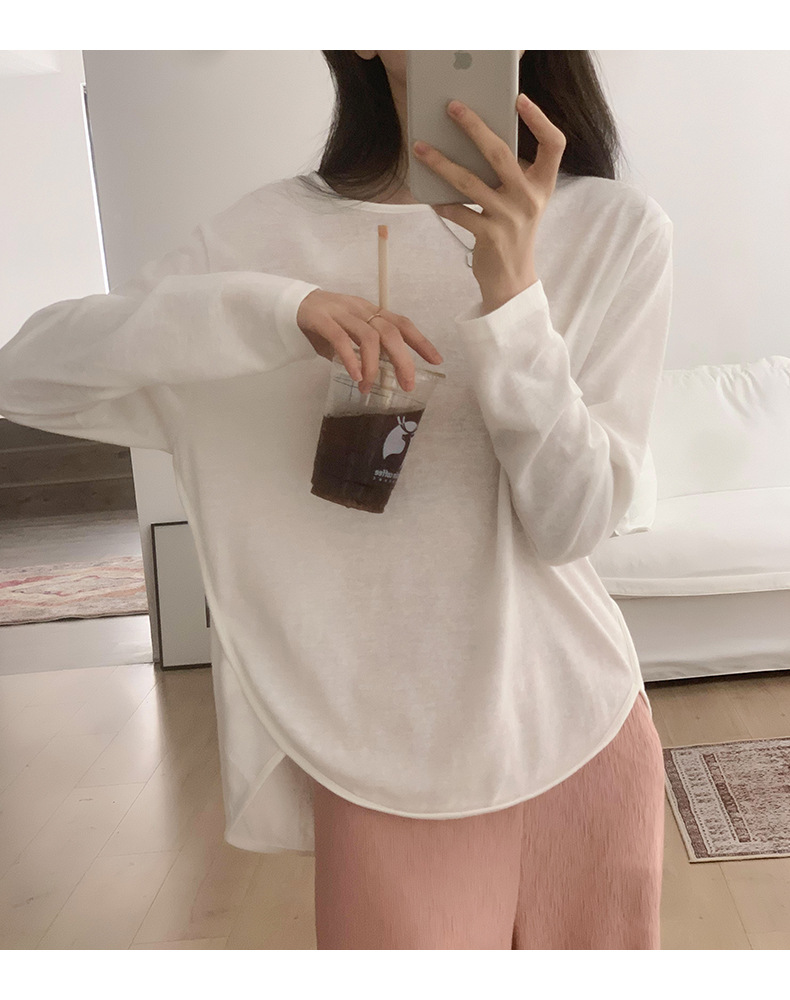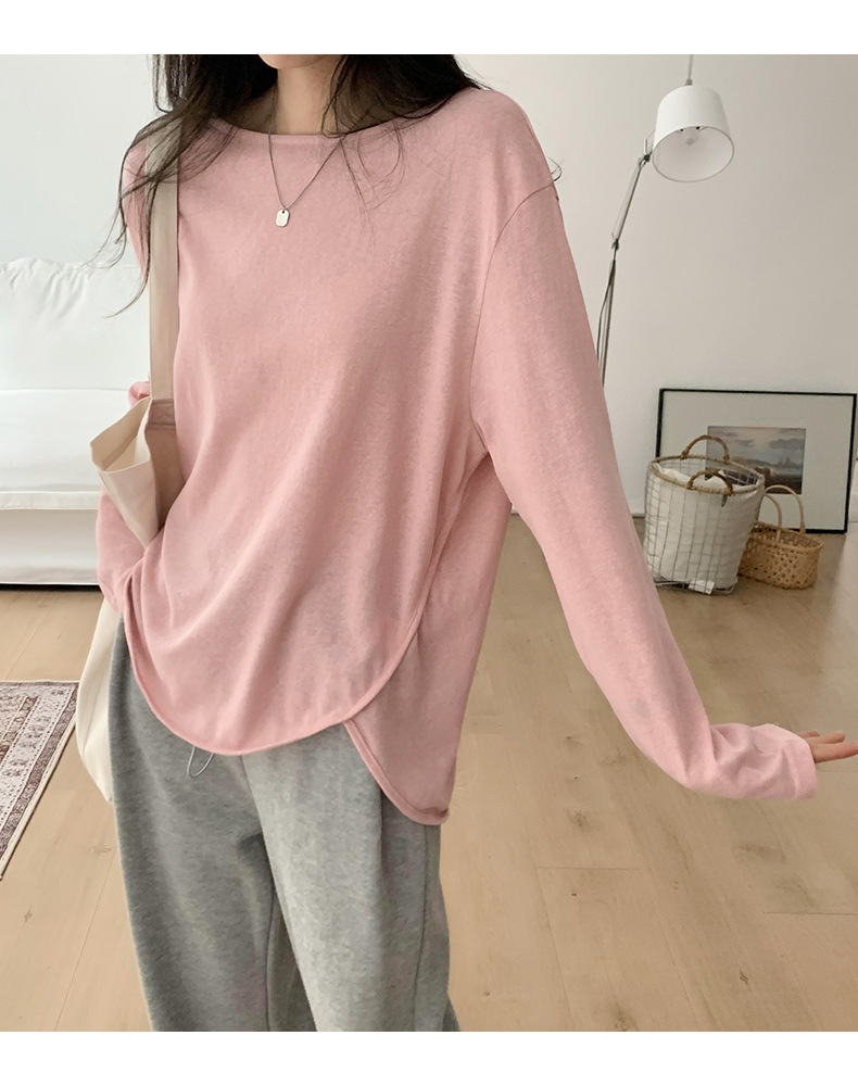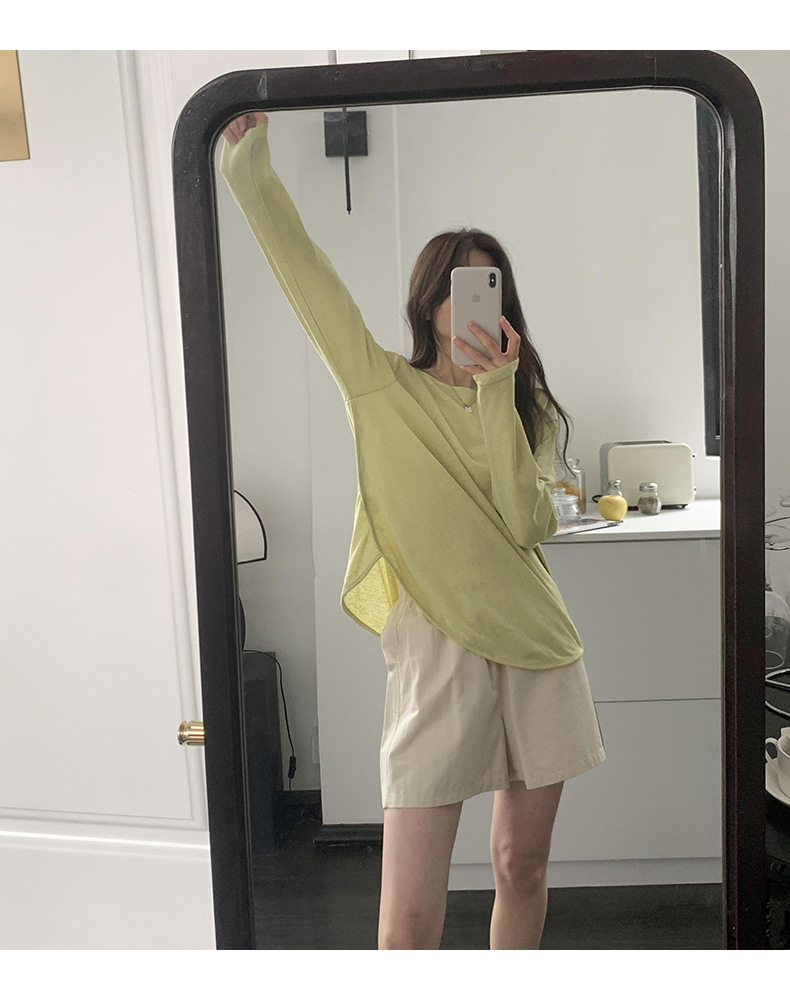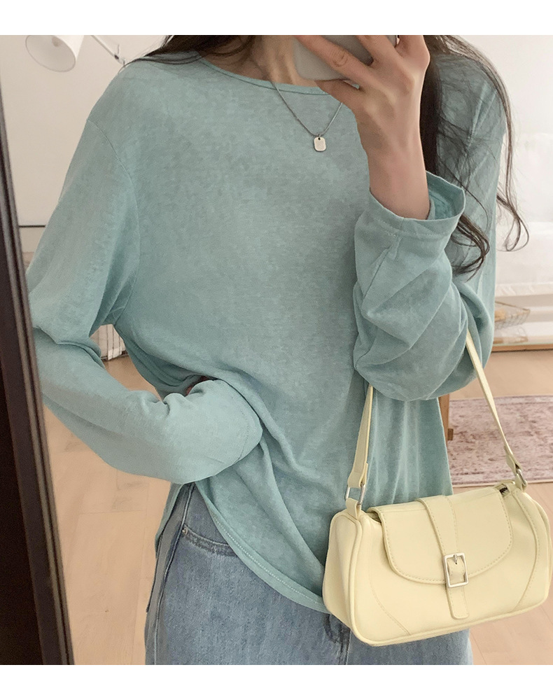 【薄款纯色内搭打底衫】长袖T恤女罩衫 宽松慵懒感防晒上衣面膜T 商品图9