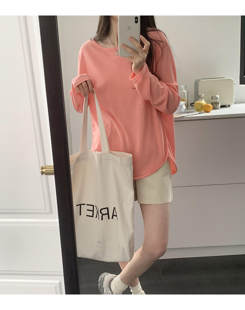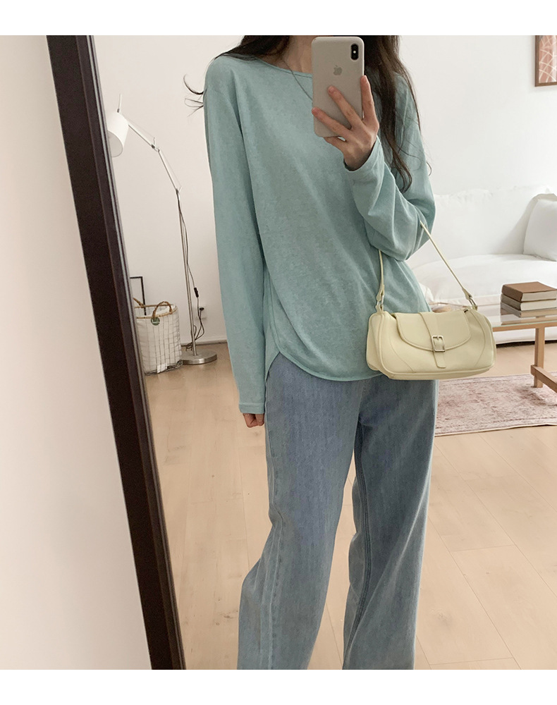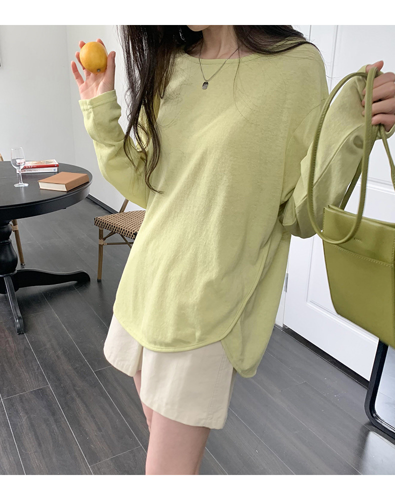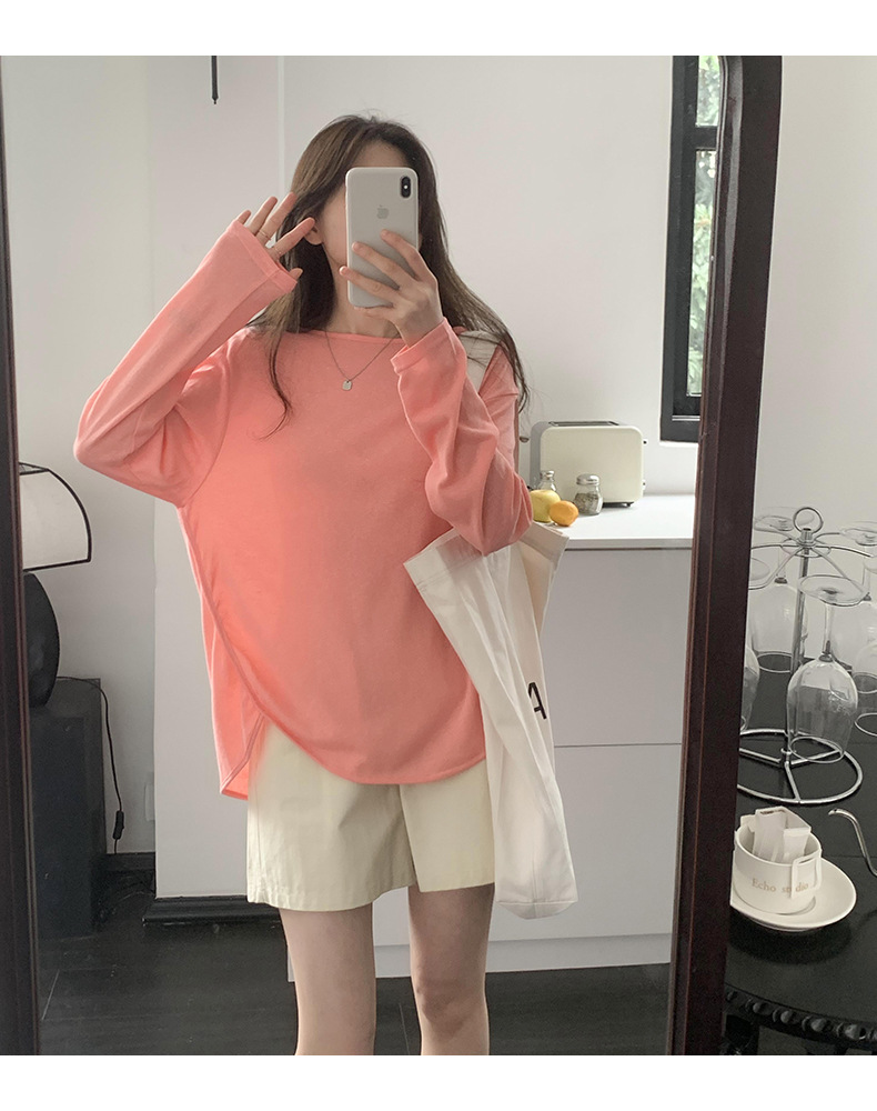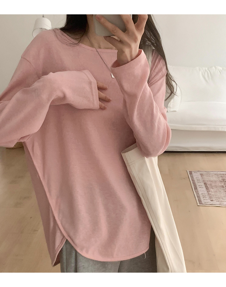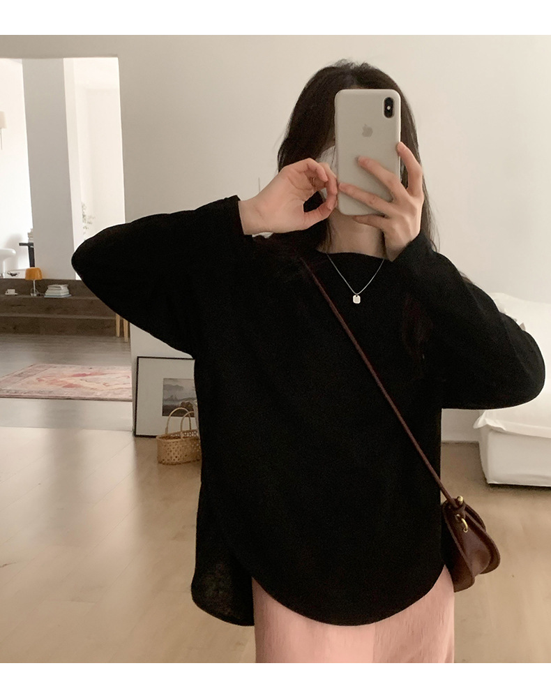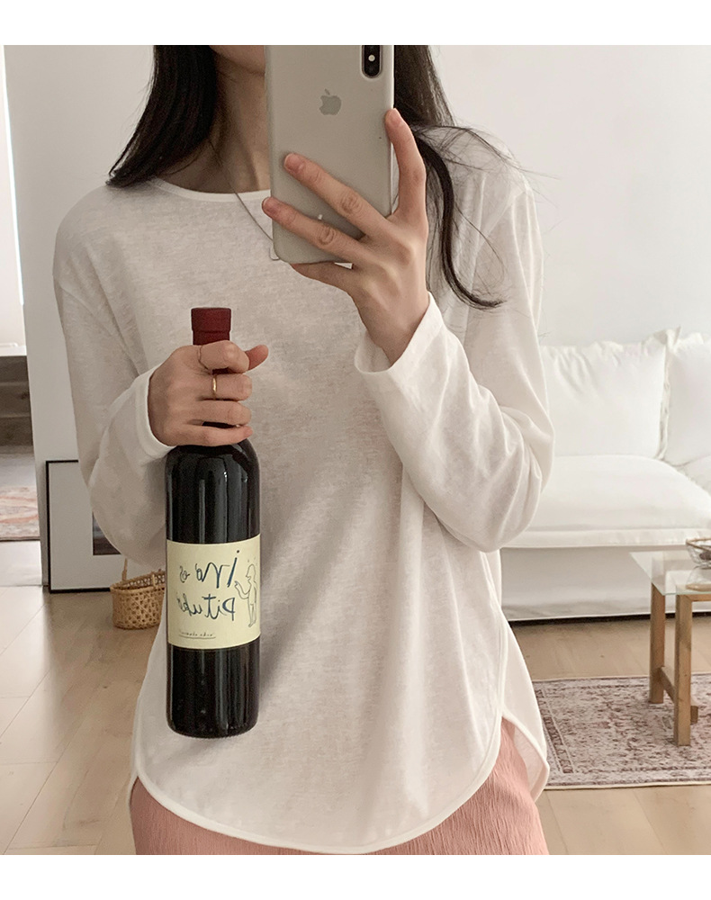 【薄款纯色内搭打底衫】长袖T恤女罩衫 宽松慵懒感防晒上衣面膜T 商品图9