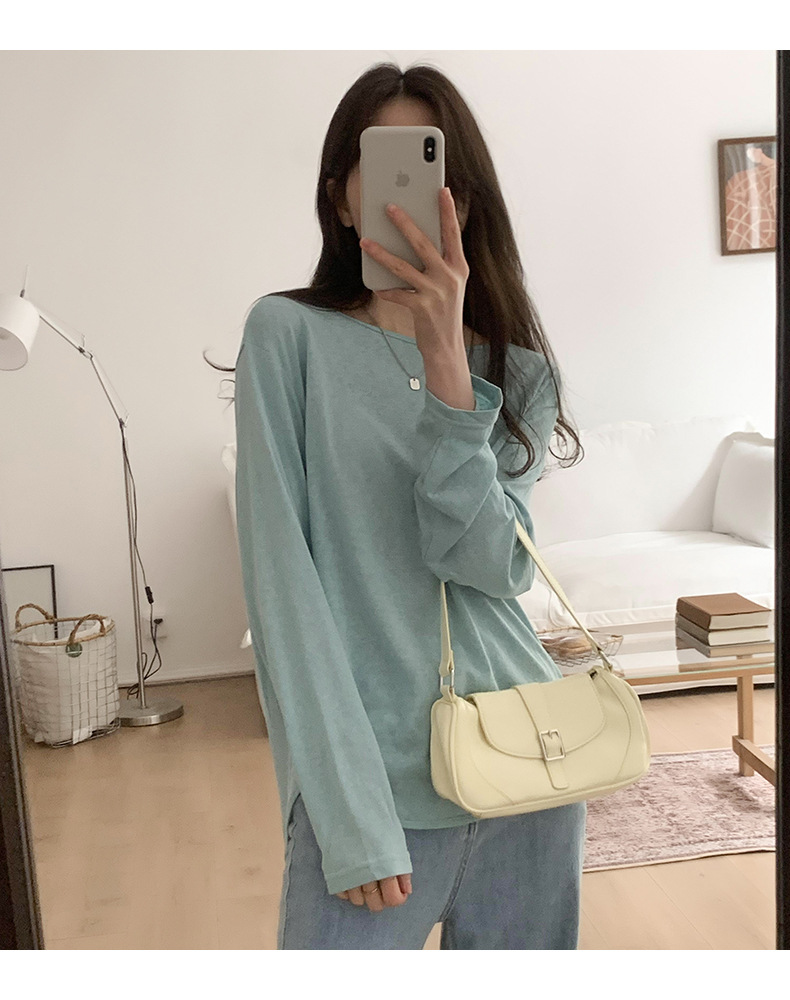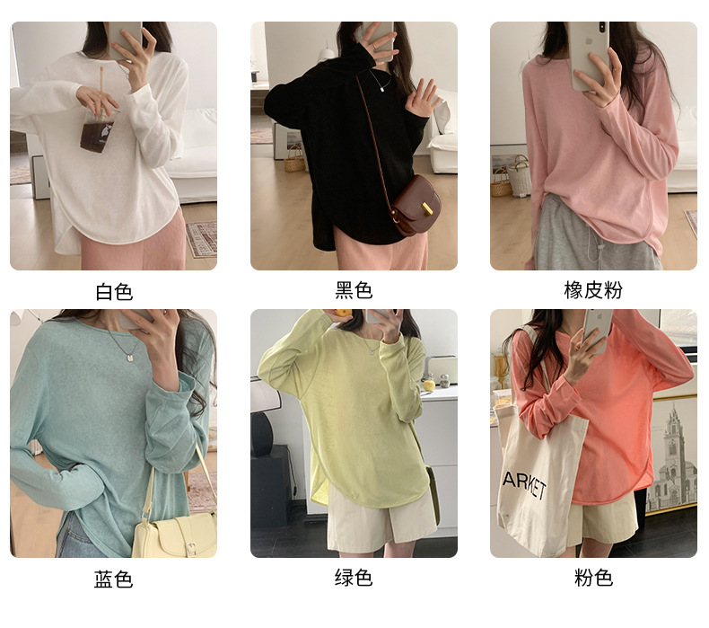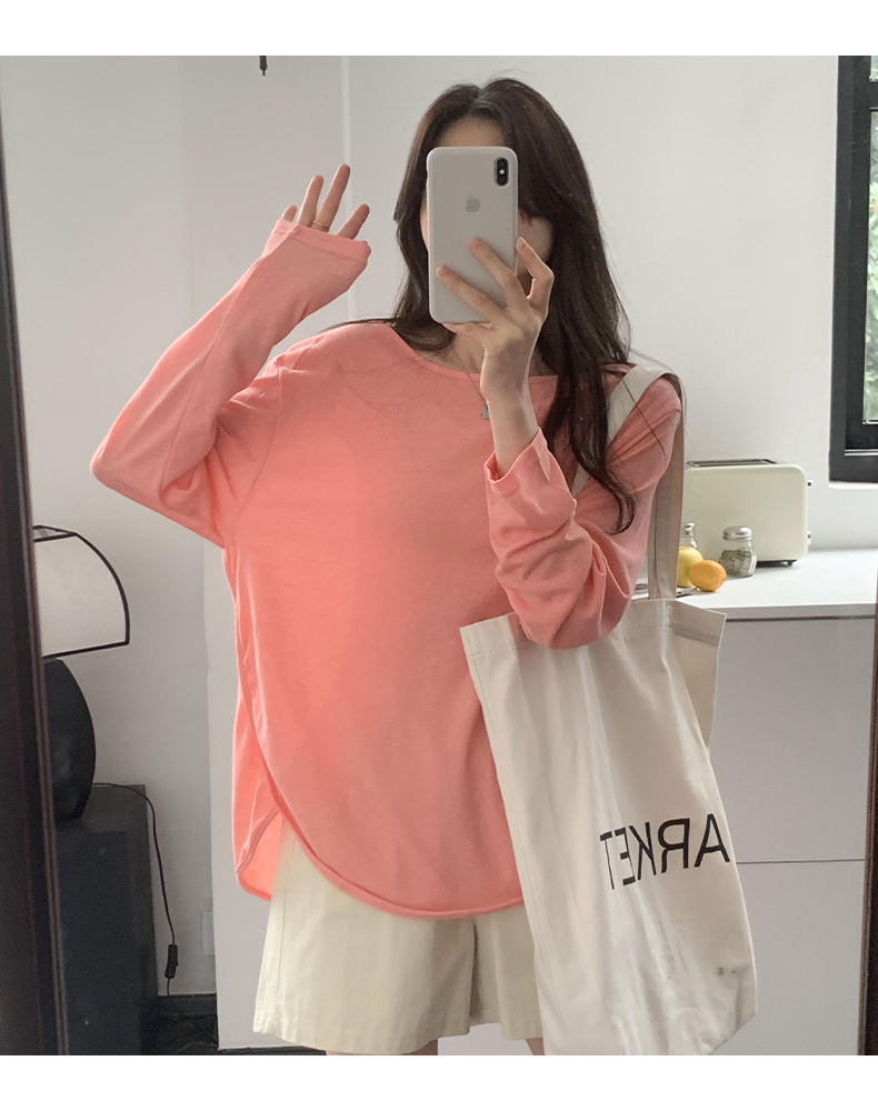 【薄款纯色内搭打底衫】长袖T恤女罩衫 宽松慵懒感防晒上衣面膜T 商品图8
