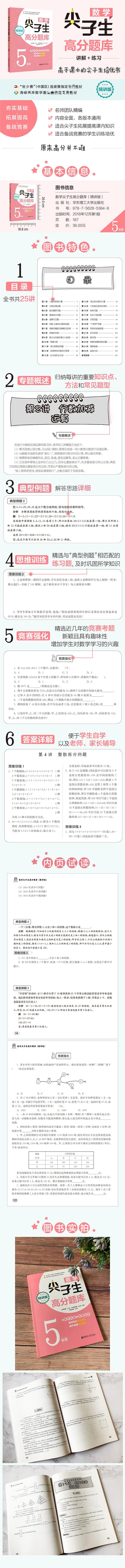 “数学尖子生高分题库”系列分为“精讲版”和“精练版”,是“世少赛”(中国区)选拔赛以及海峡两岸数学邀请赛的指定专用教材。本书为“精讲版”,注重挖掘小学数学教材中的数学思想,并通过针对性的训练提高学生的数学能力。这本书的主要内容包括专题概述,对每讲的重要知识点、方法和常见题型进行归纳;典型例题,精选典型题目,并给出详细解答;思维训练,及时巩固所学知识;竞赛强化,精选近几年新颖且具有趣味性的竞赛考题,帮助数学尖子生备战竞赛。本书既适合中等程度的学生拓展提高课内知识,挑战数学高分,也适合学有余力的学生强化训练数学思维,备战竞赛。书中的例题和练习题都有详细的答案,便于学生自学,以及老师、家长辅导。