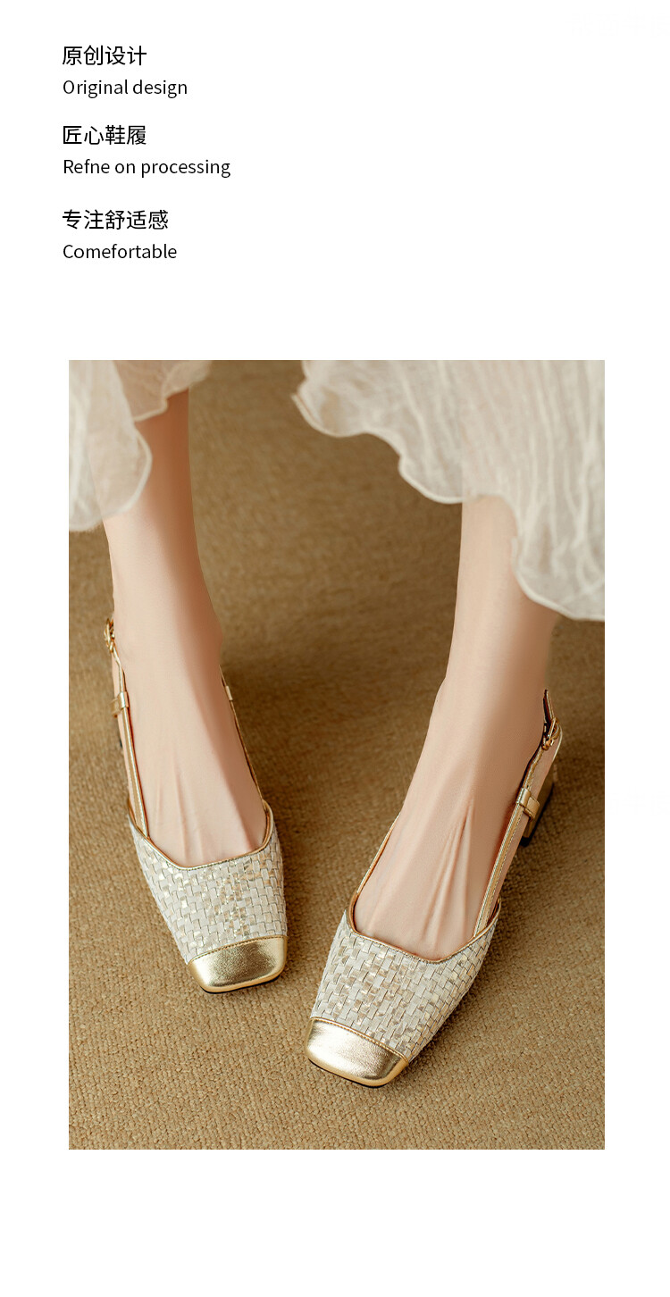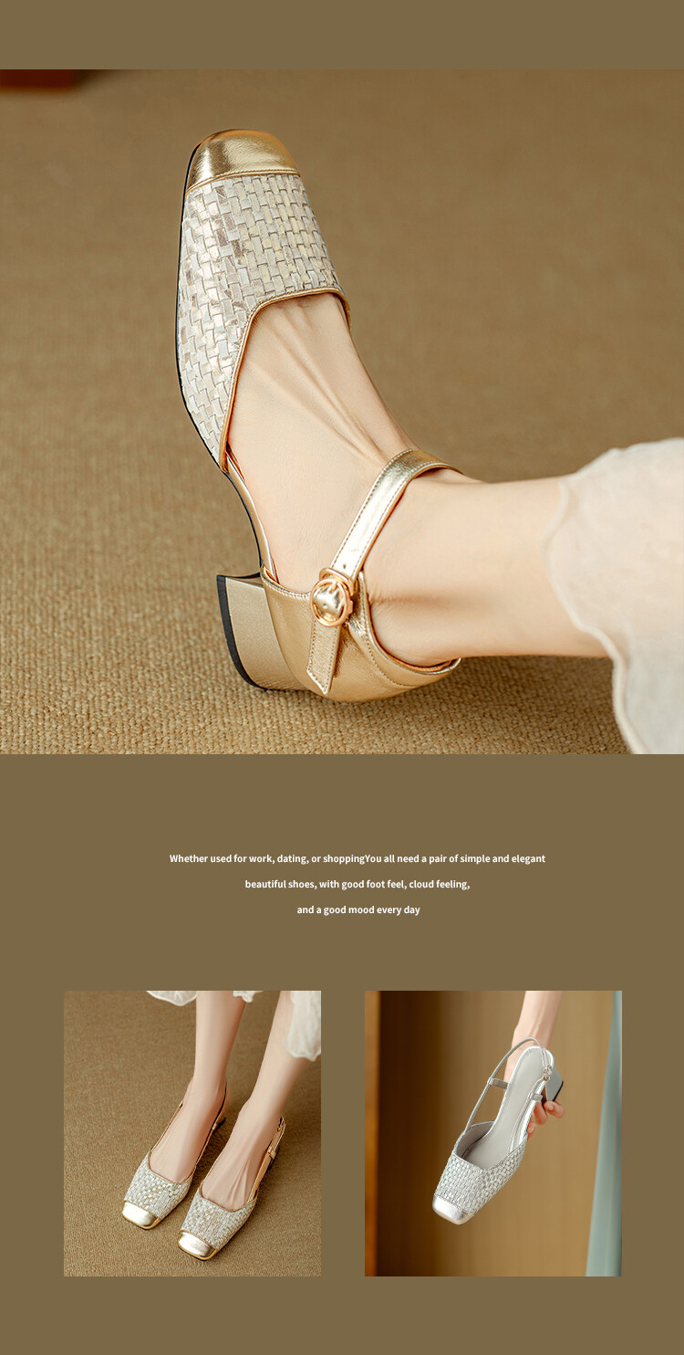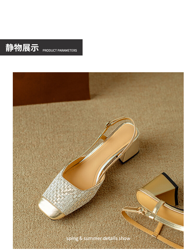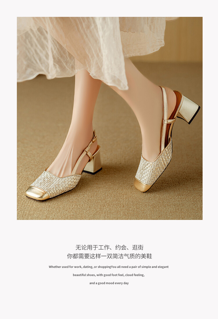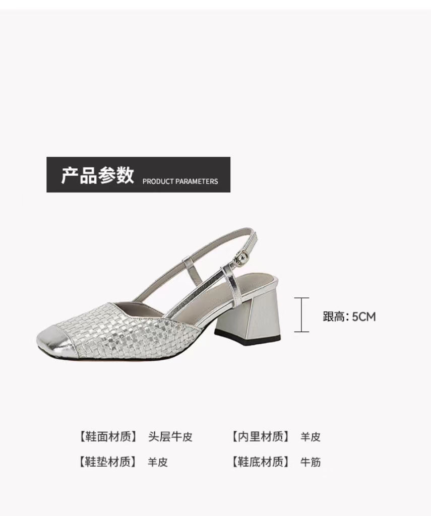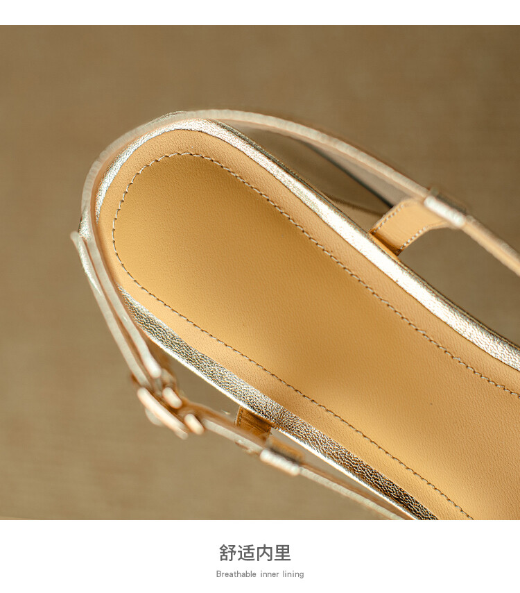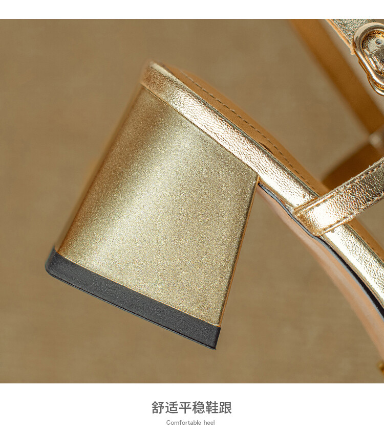 【预售5天】2024夏季牛皮金银色高跟鞋一字扣带粗跟包头后空凉鞋NJMK&K976