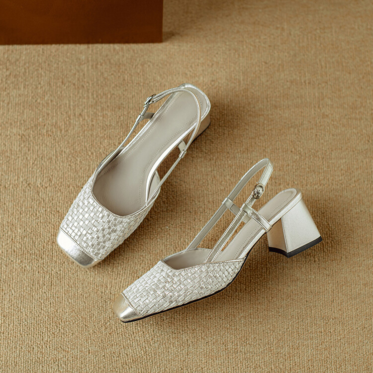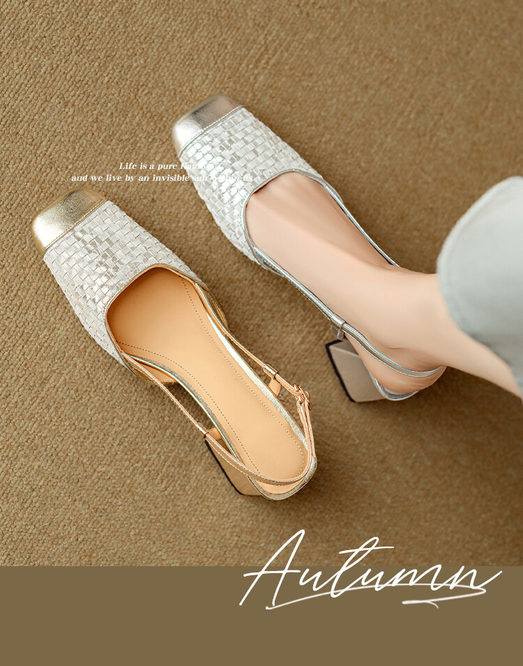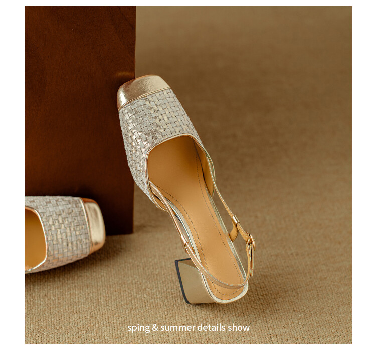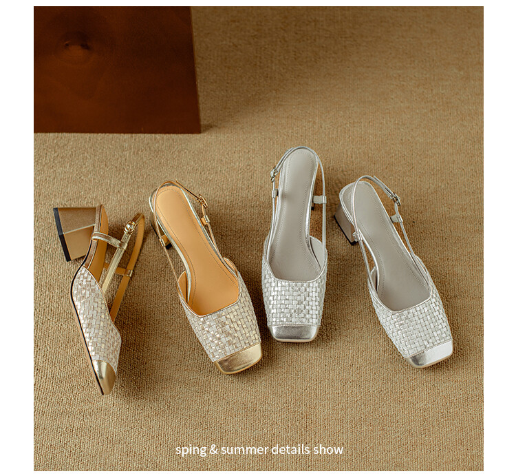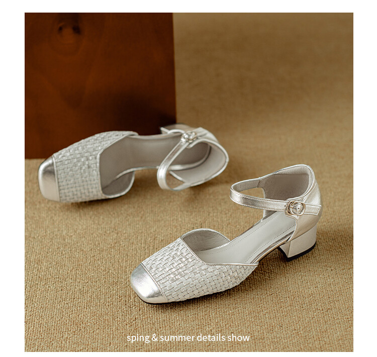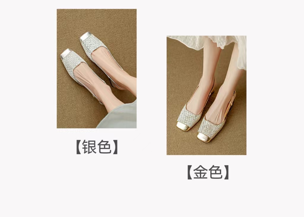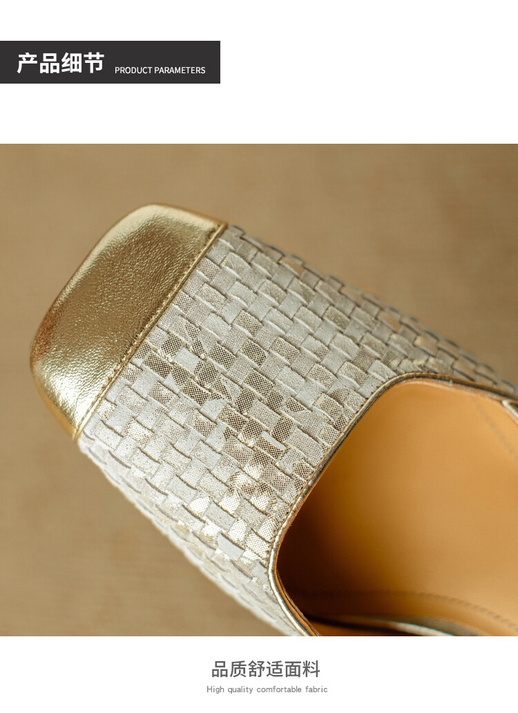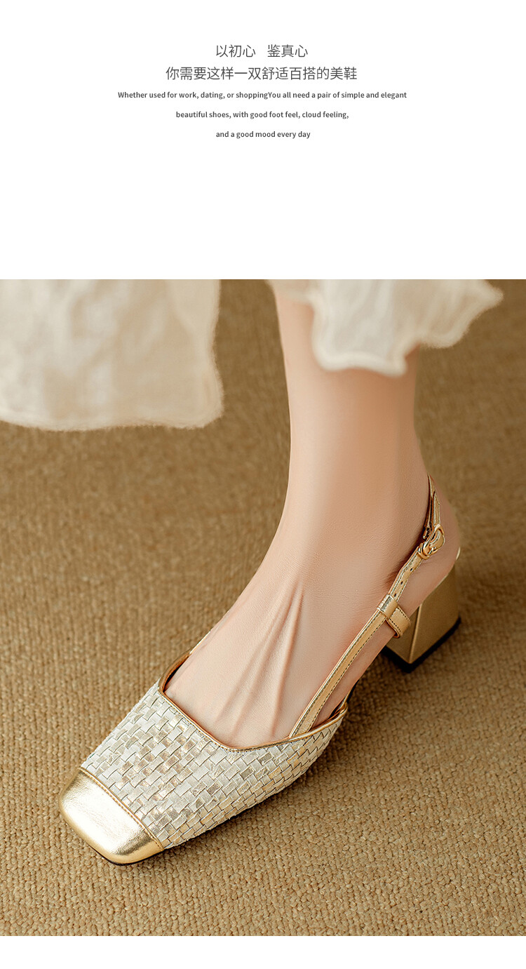 【预售5天】2024夏季牛皮金银色高跟鞋一字扣带粗跟包头后空凉鞋NJMK&K976