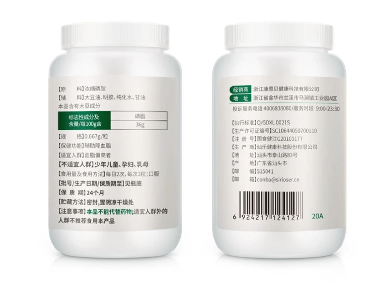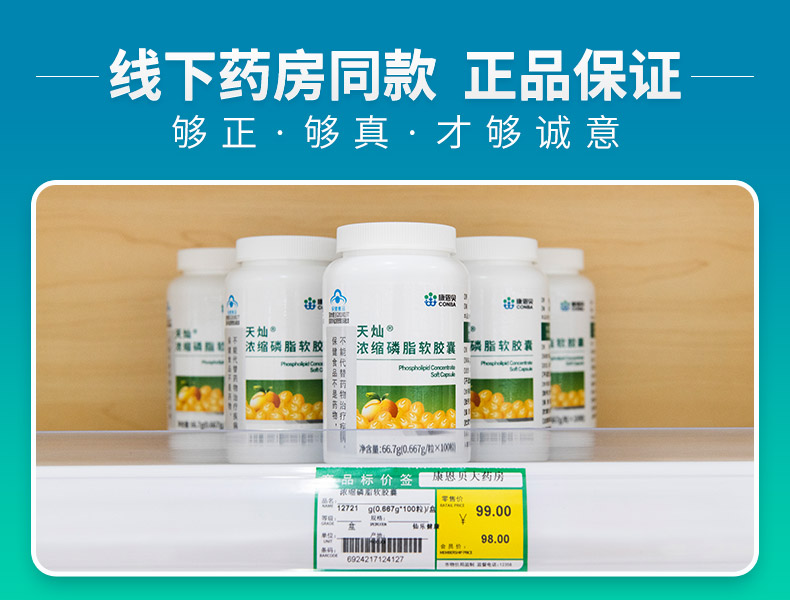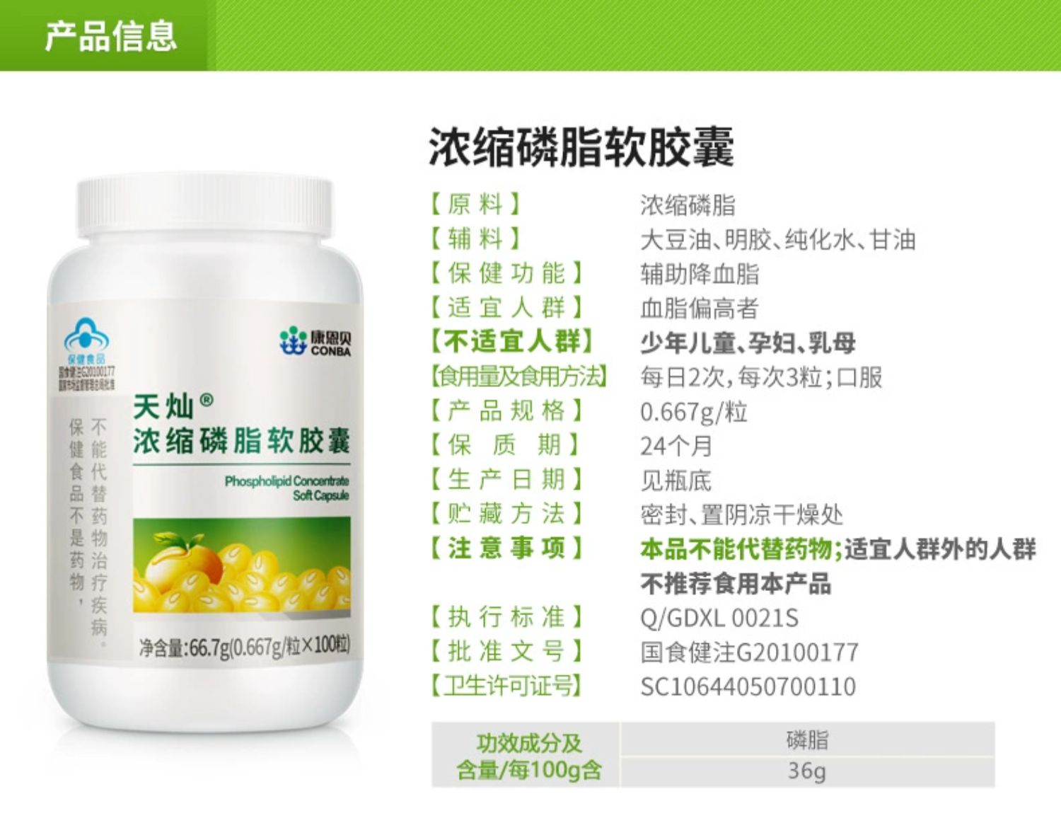 康恩贝大豆浓缩磷脂软胶囊辅助降血脂成人中老年