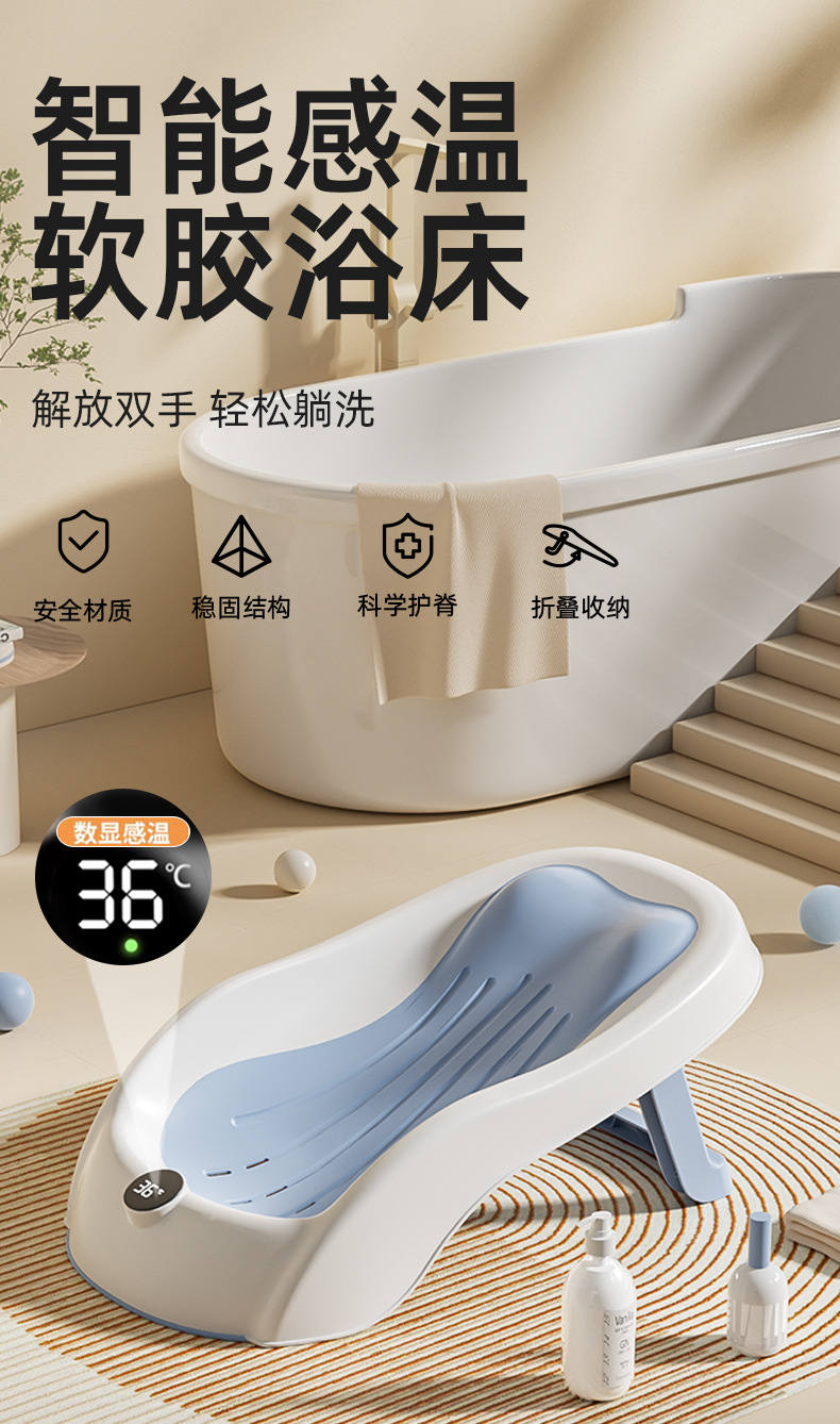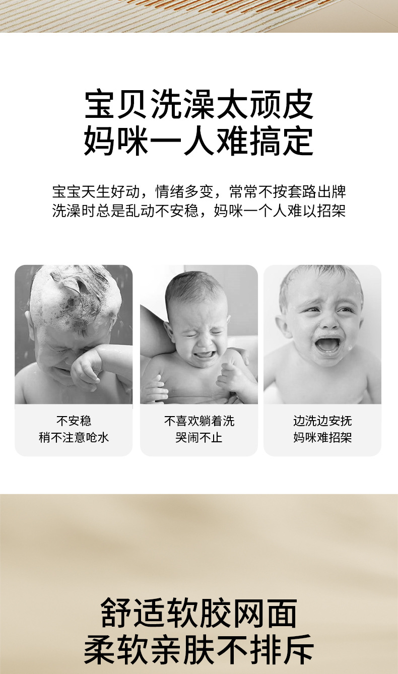 新生儿洗澡托架软胶护脊浴床婴儿浴架婴儿洗澡躺托宝宝浴网可折叠