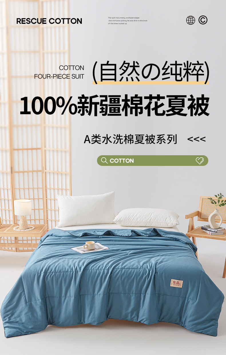 【品牌直发】加倍生活 A类水洗棉新疆棉花夏被-纯色系列 7色可选 带检测口 夏凉被空调被
