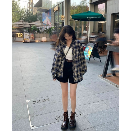 版型是宽松的H廓形 包容性很强 这件里里外外都很用心 细节到位 真心高颜值 有哪个女孩子不喜欢 春天怎么能没有bm风格子衬衫呢 春天当外套 夏天当防晒 而且水洗蓝的复古颜色超级! 简直好看又洋气!俺滴自留款!!!