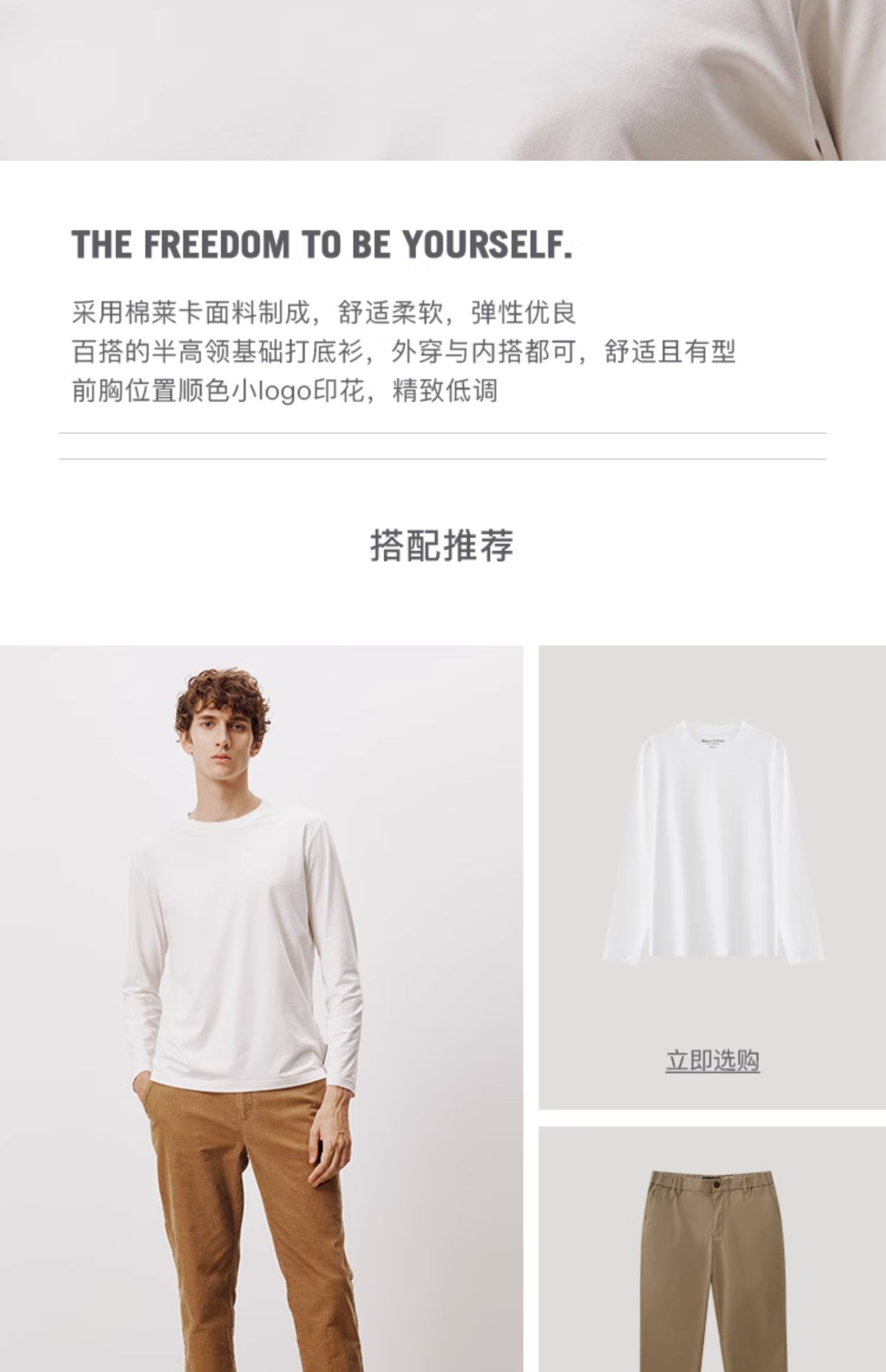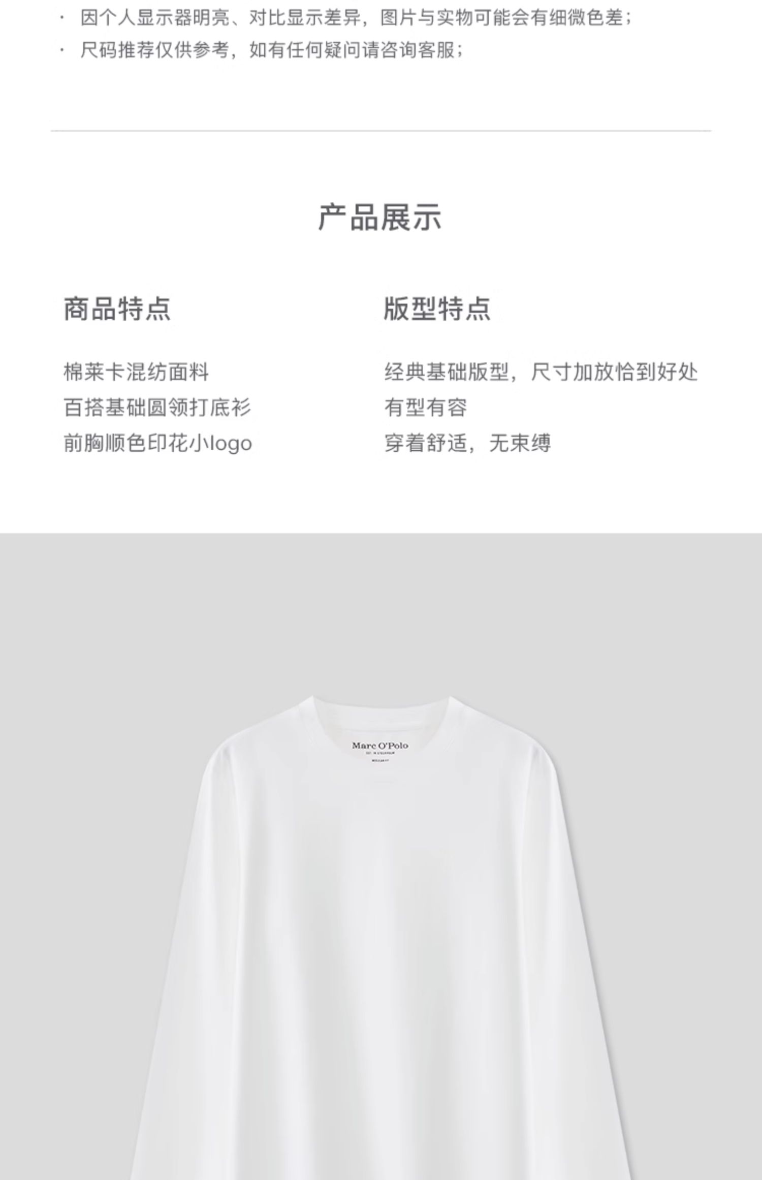 Marc O'Polo/MOP【商场同款】秋季新款莱卡面料圆领打底T恤衫男士