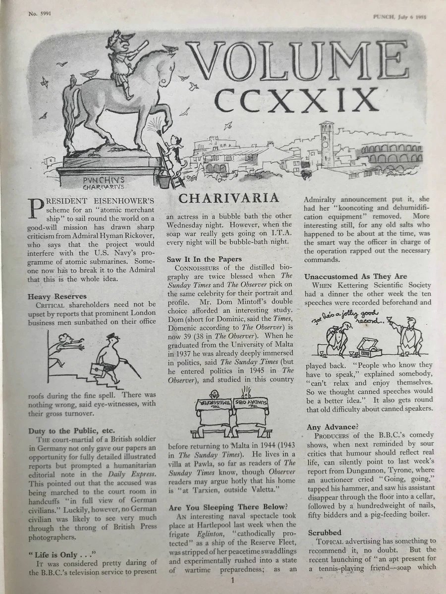 1955年7-12月 英国讽刺漫画杂志《笨拙》(含多幅彩色) 漆布精装16开