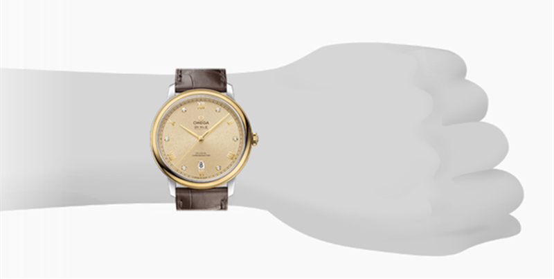 镜面材质 | 蓝宝石水晶玻璃 | 表盘 | 精钢‑黄色18 K金表壳 经Moonshine 18K金PVD处理的太阳光芒射线表盘,环绕“轨道式”分钟圈。腕表的6点位置设有日历窗,欧米茄品牌标识、间隔出现的罗马数字与托槽,以及指针均采用镀黄色18K金制成。 密底 |