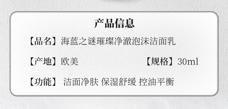 La Mer海蓝之谜璀璨净澈泡沫洁面乳 中样30ml/支