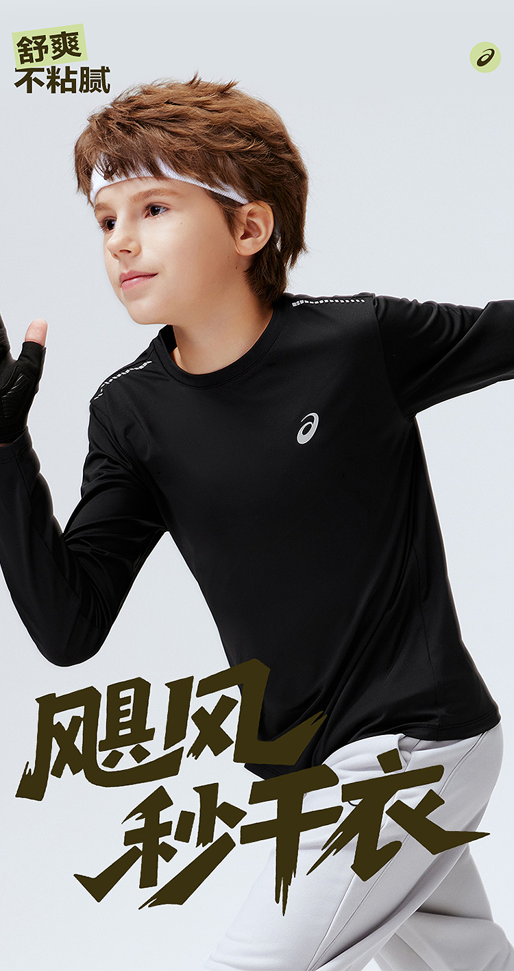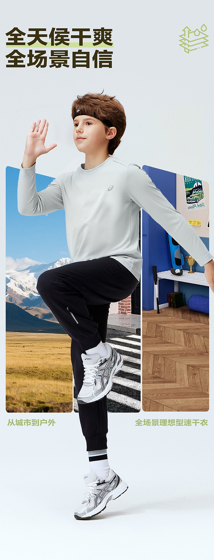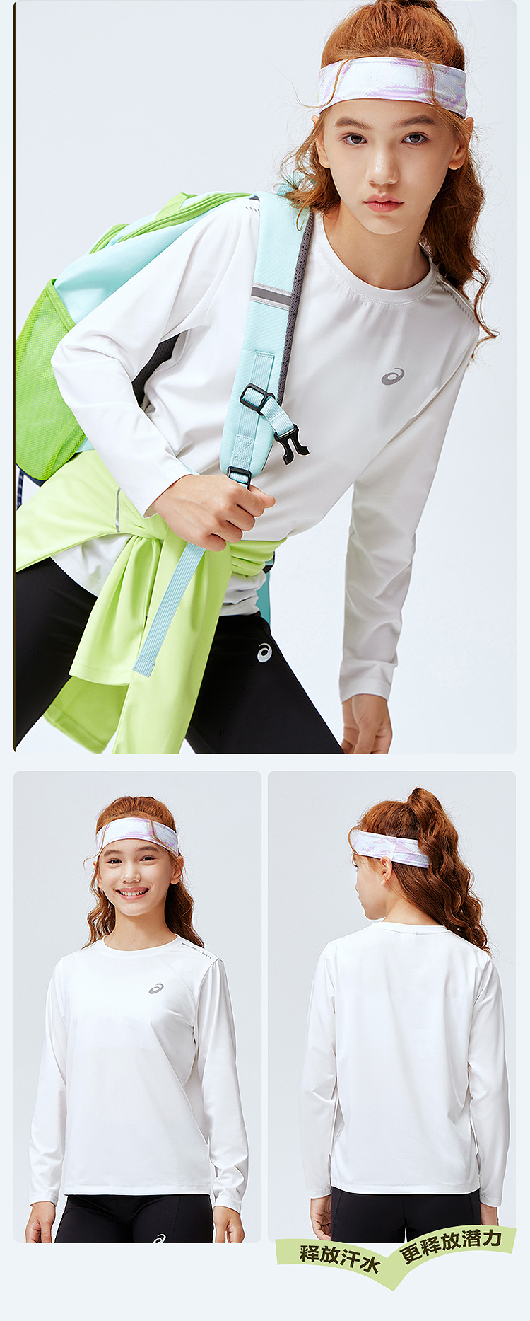 ASICS/亚瑟士儿童2026年新款基础款运动长袖T恤高弹吸湿速干百搭