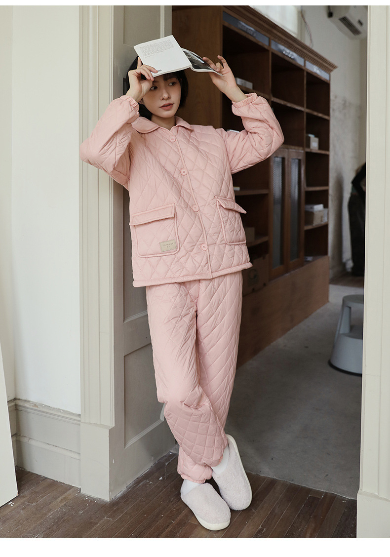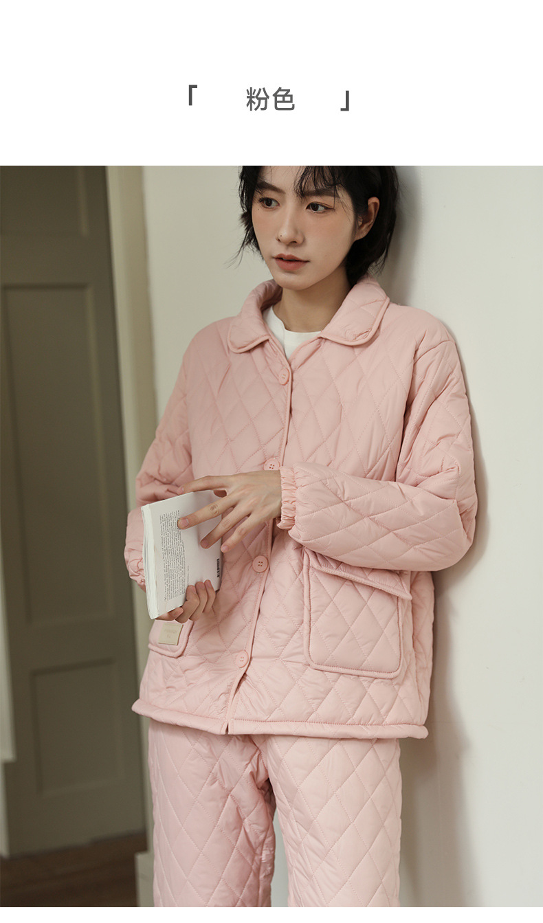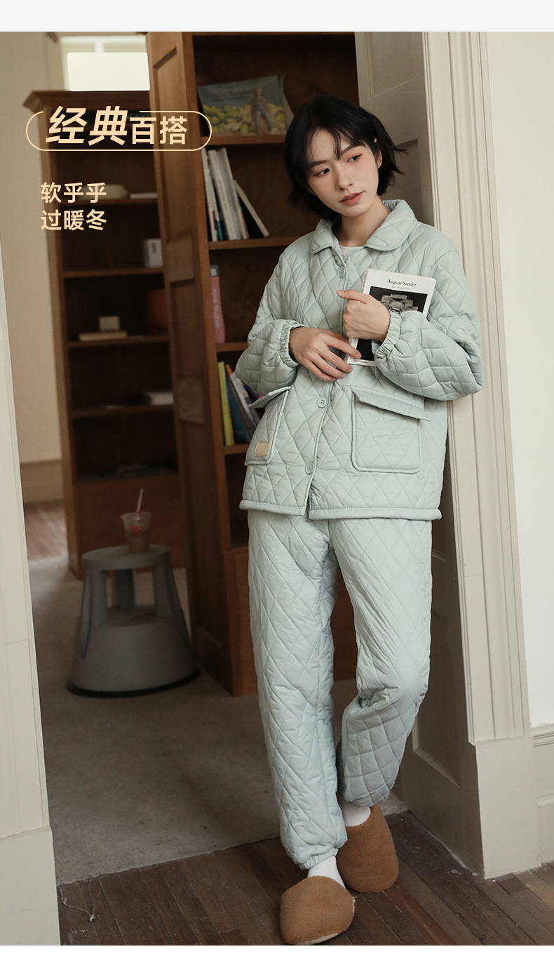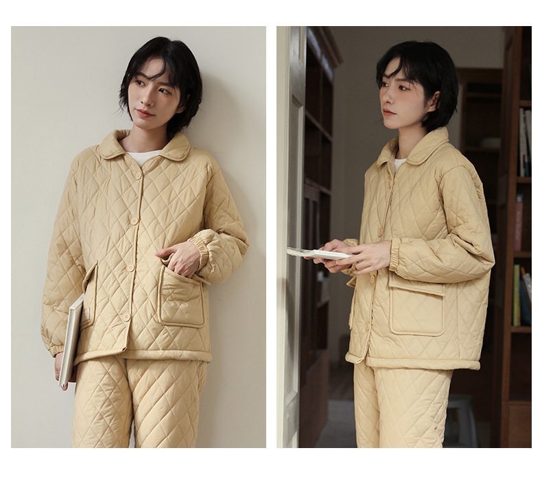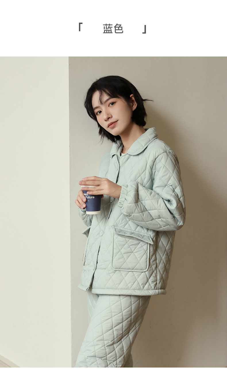 女士三层夹棉家居服套装 可外穿防风防水时尚洋气加绒加厚防寒睡衣
