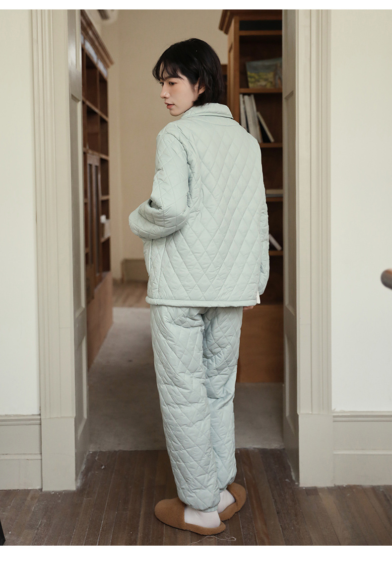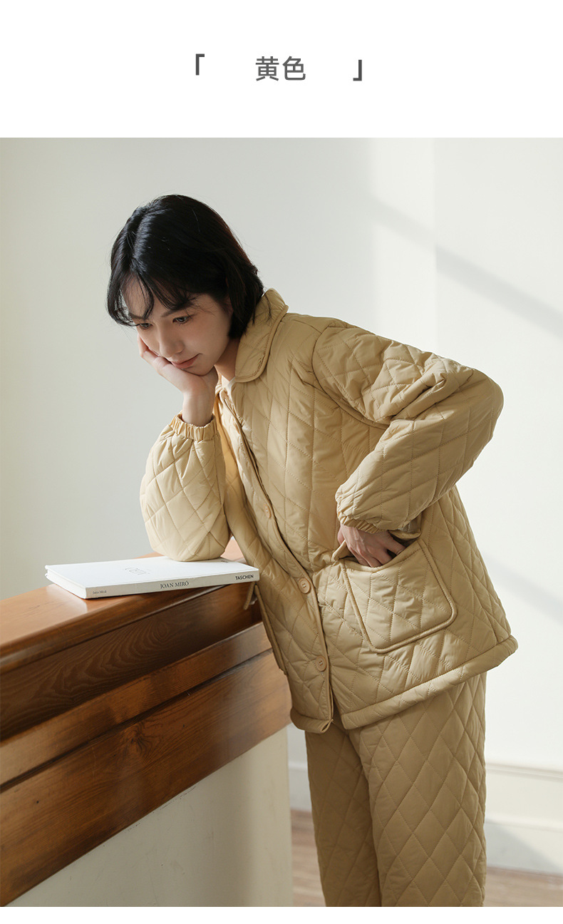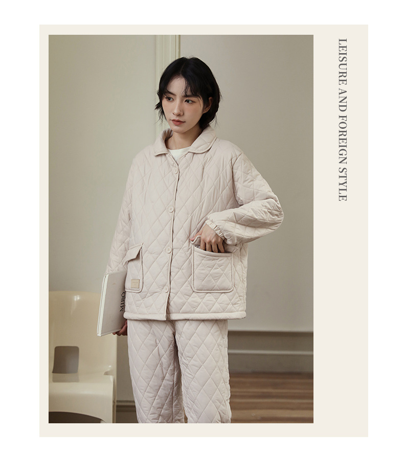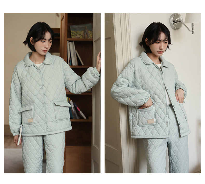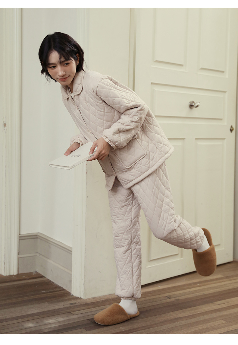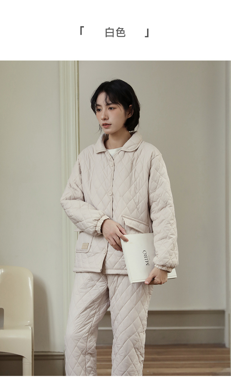 女士三层夹棉家居服套装 可外穿防风防水时尚洋气加绒加厚防寒睡衣