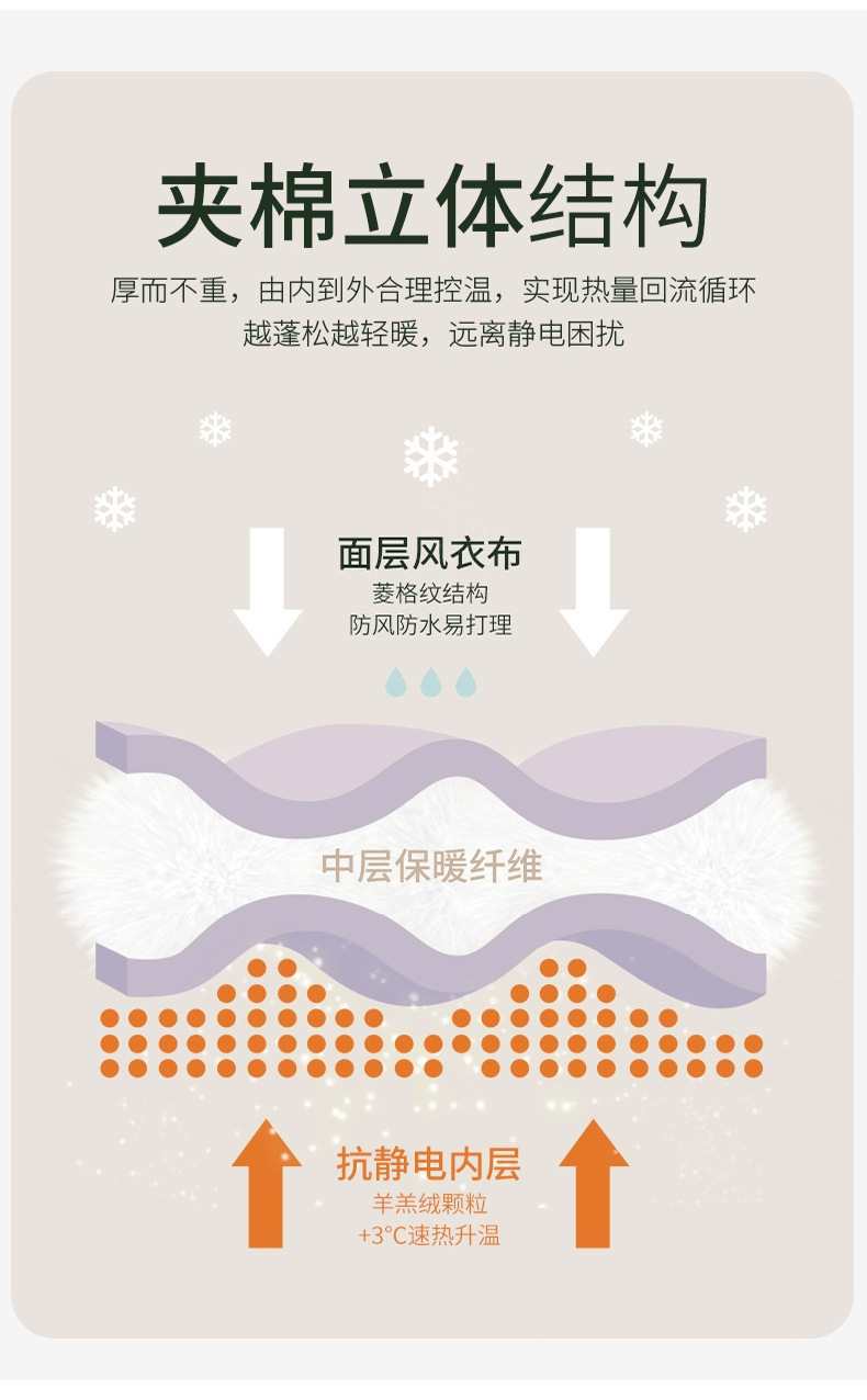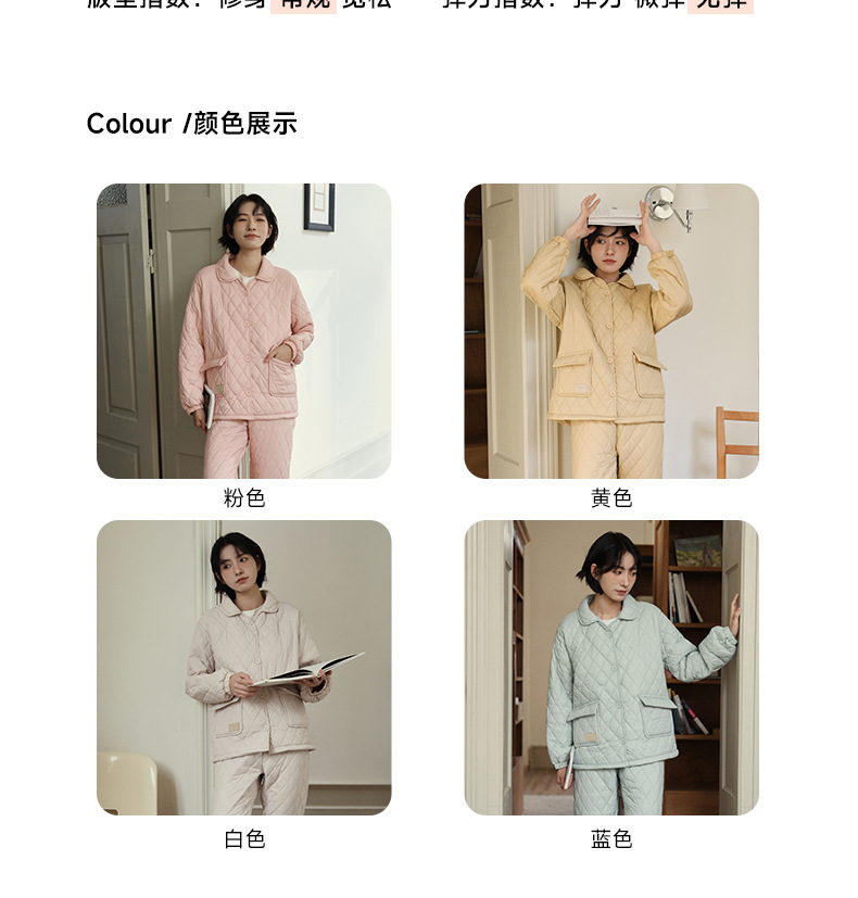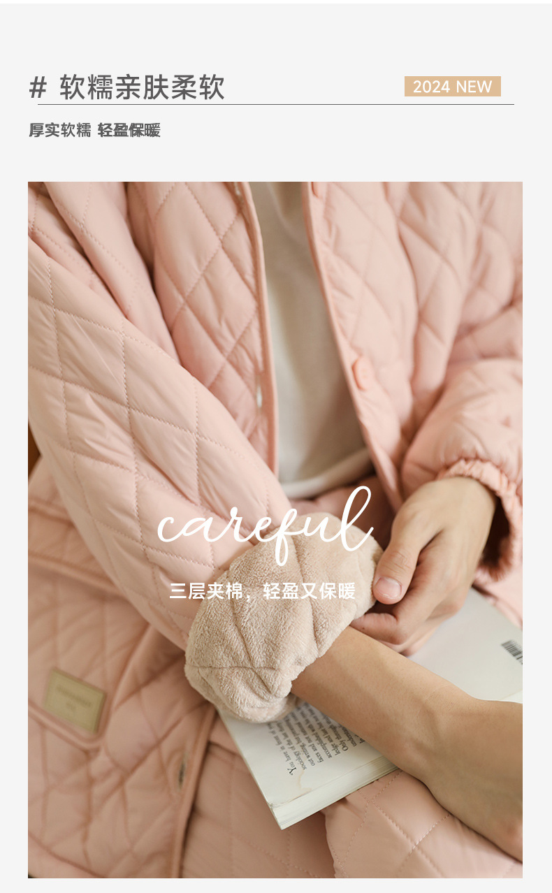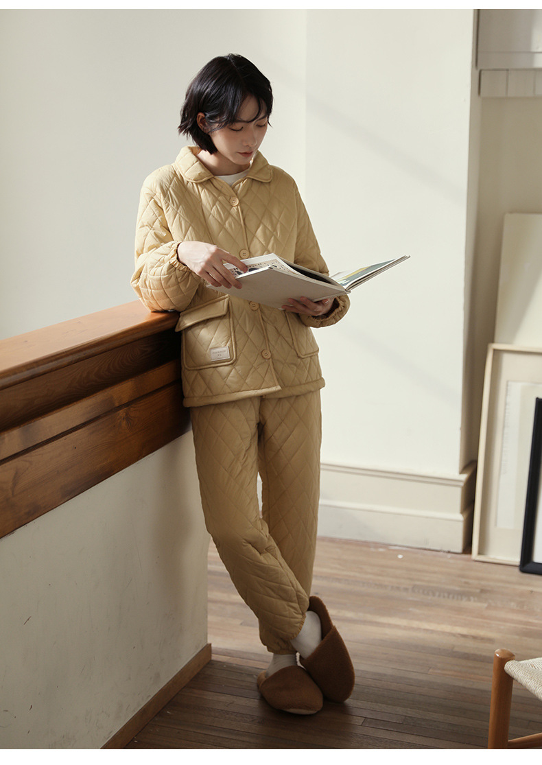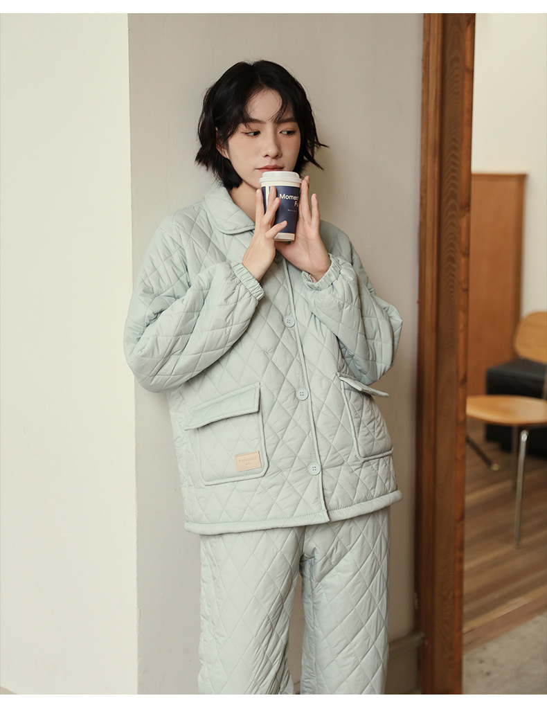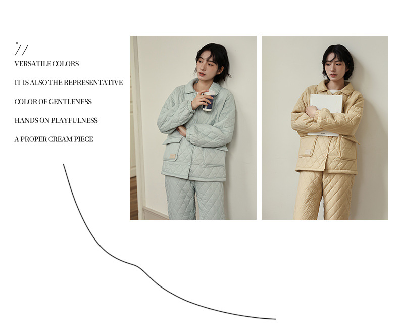 女士三层夹棉家居服套装 可外穿防风防水时尚洋气加绒加厚防寒睡衣