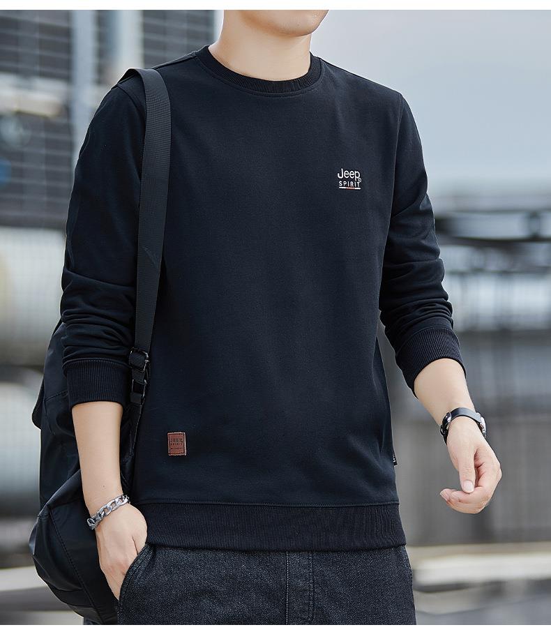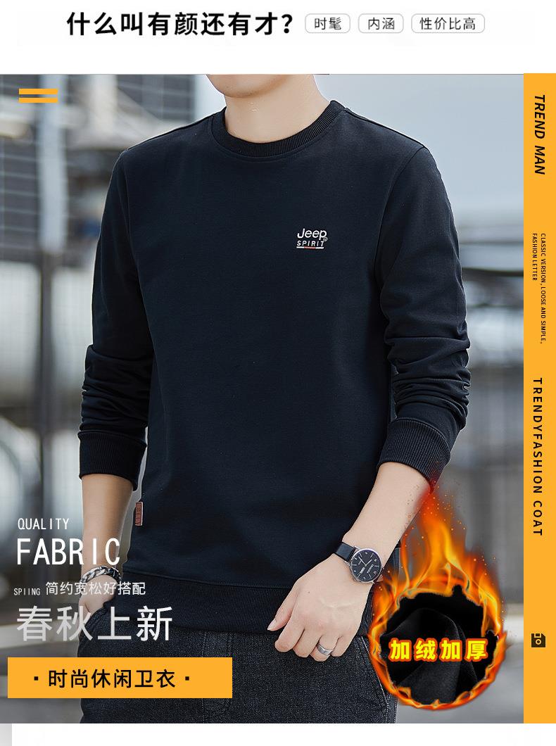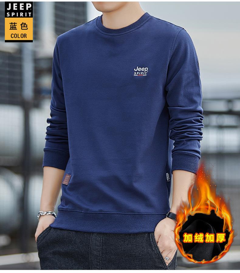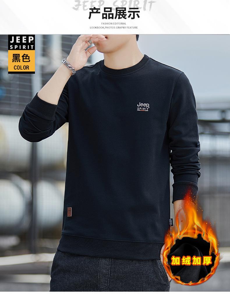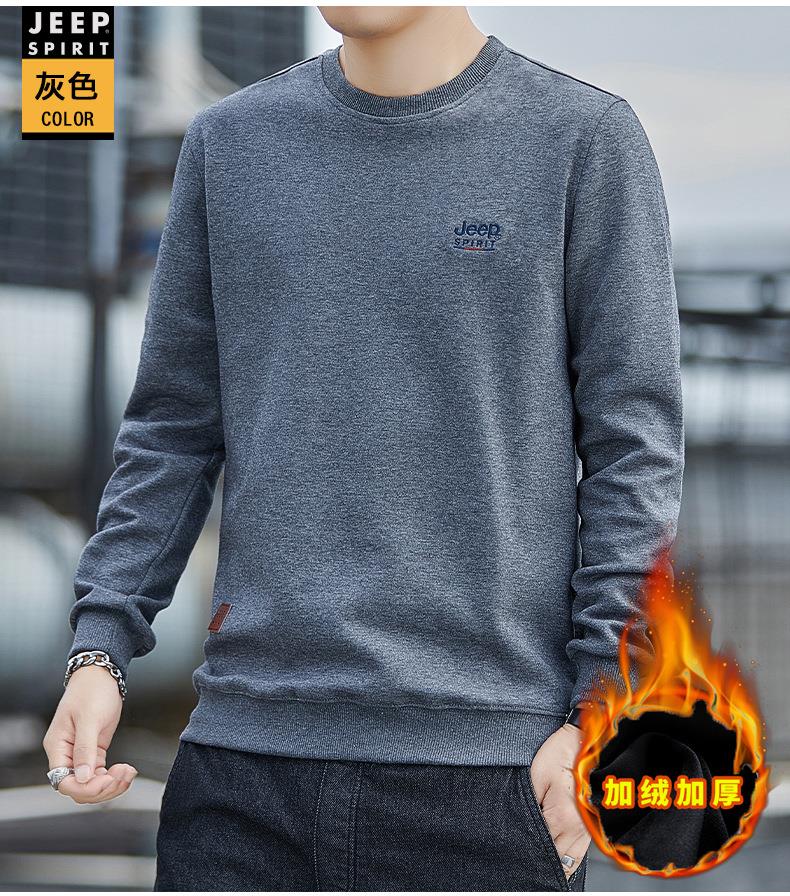 JEEP SPIRIT秋冬加绒加厚圆领男运动宽松卫衣加绒上衣HL7151B(主推)
