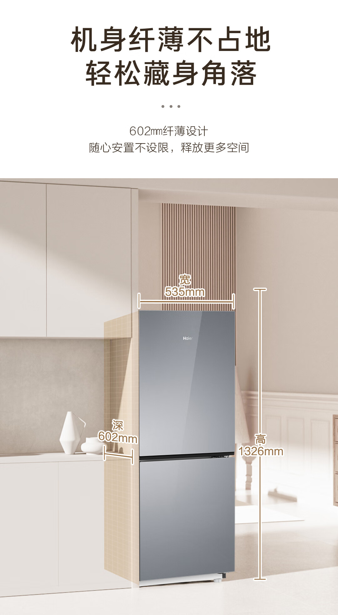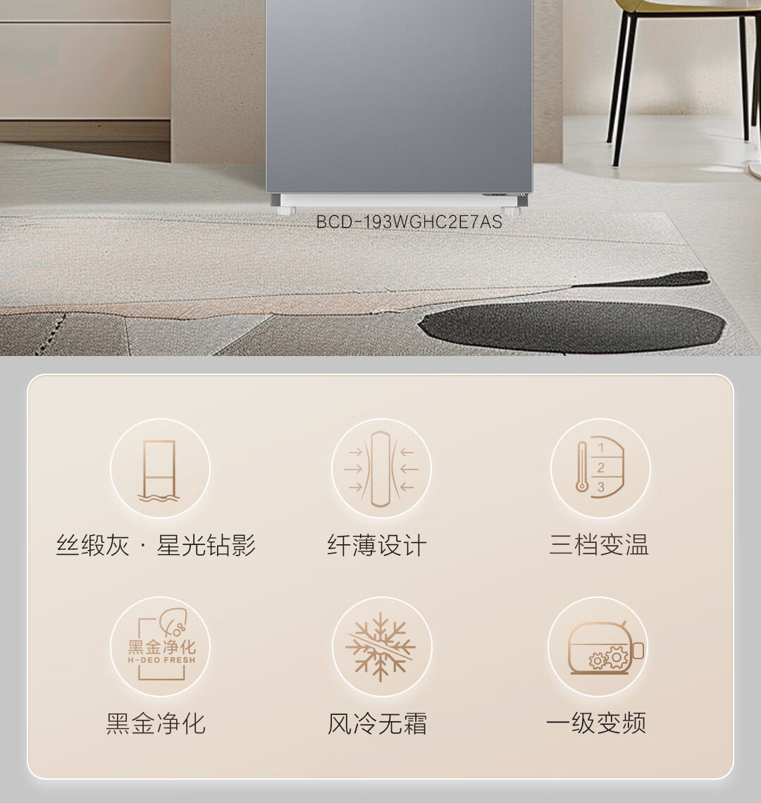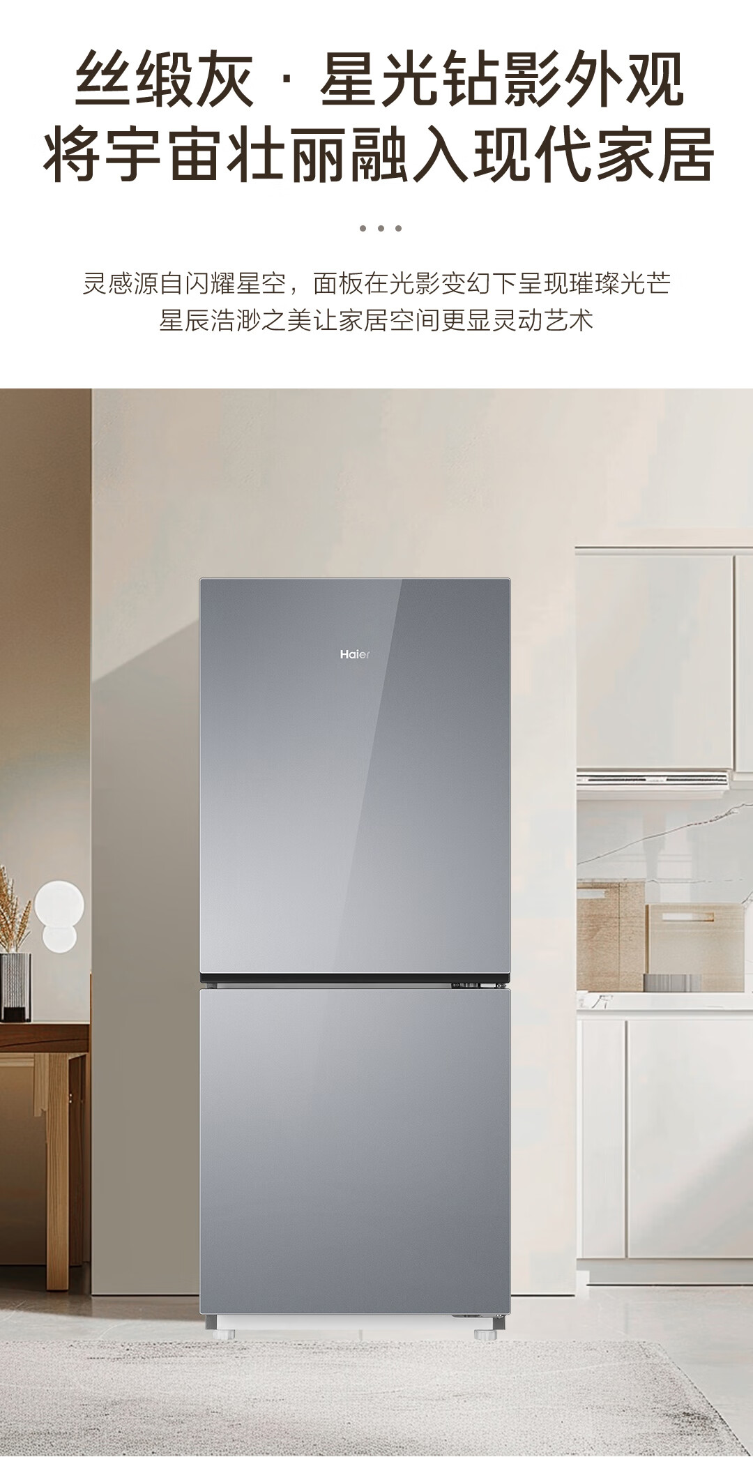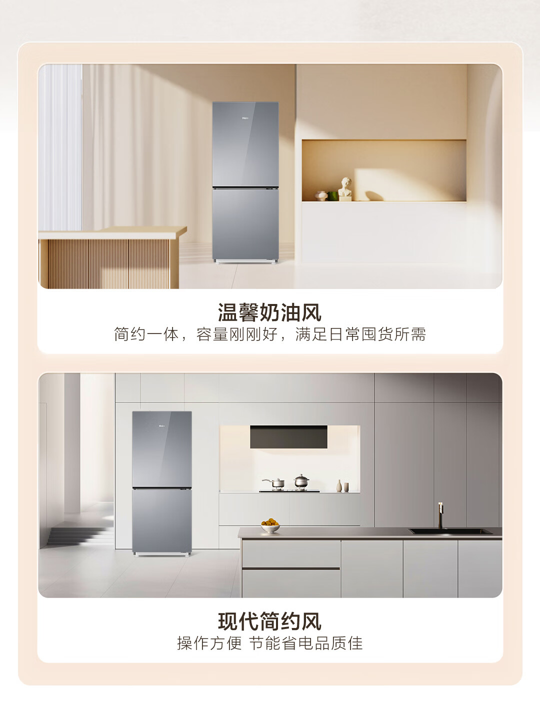 海尔(Haier)冰箱193升双门两门对开门风冷无霜一级能效节能变频玻璃面板净味家用租房电冰箱BCD-193WGHC2E7AS