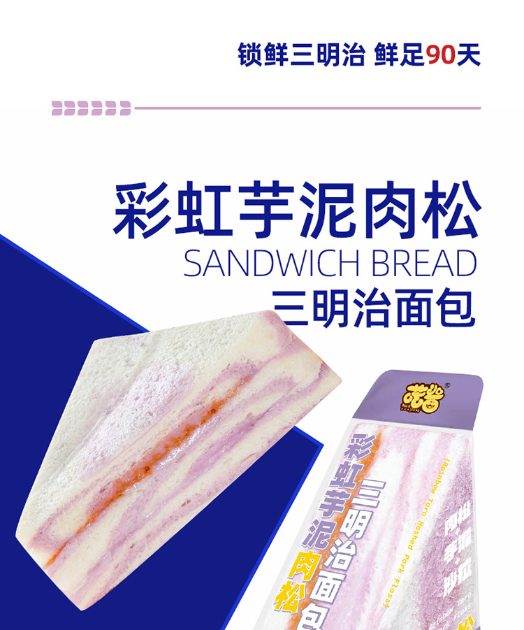 【绵密芋泥厚厚肉松!彩虹芋泥三明治】代餐饱腹,三明治奶香浓郁,面包香气四溢。无边爆浆果酱,鲜美爆浆,松软无边;香气四溢、口感细腻。手工制作爆浆无边吐司健康早餐代餐休闲下午茶—DD健康