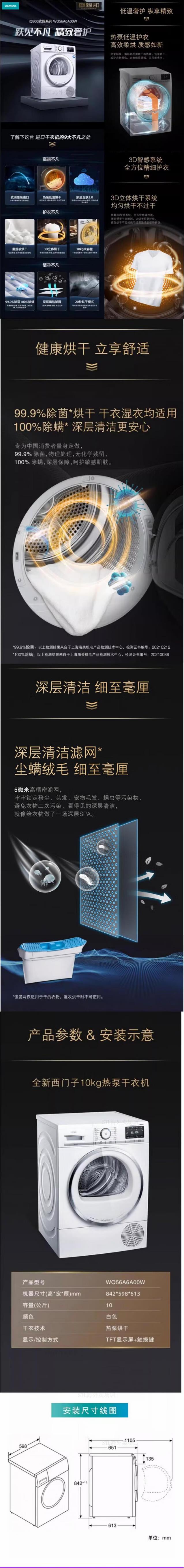 西门子(SIEMENS)(252035)WQ56A6A00W烘干机原装进口10KG洗烘 洗衣机烘干机系列 WQ56A6A00W烘干机