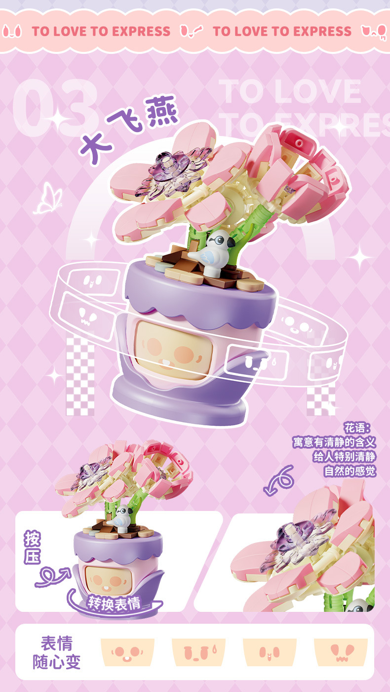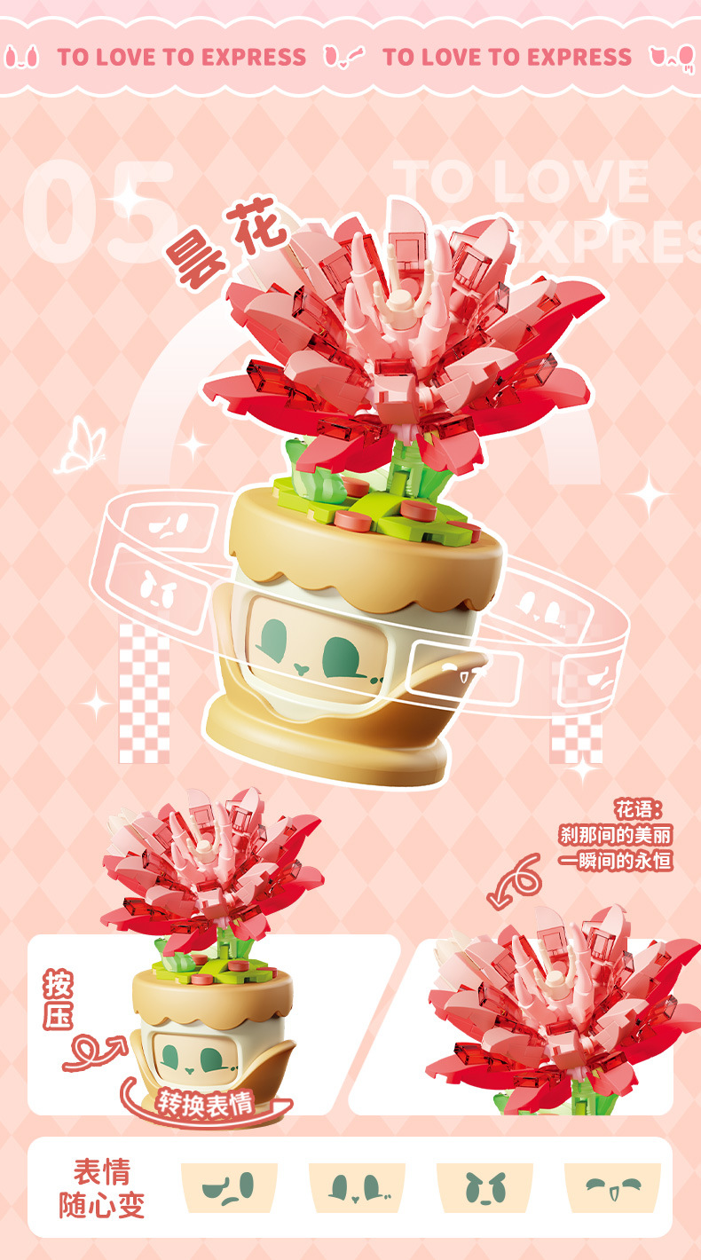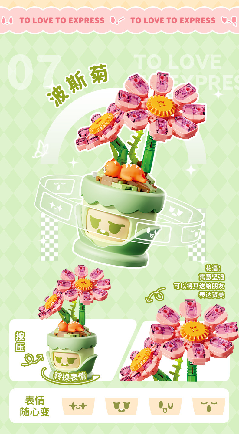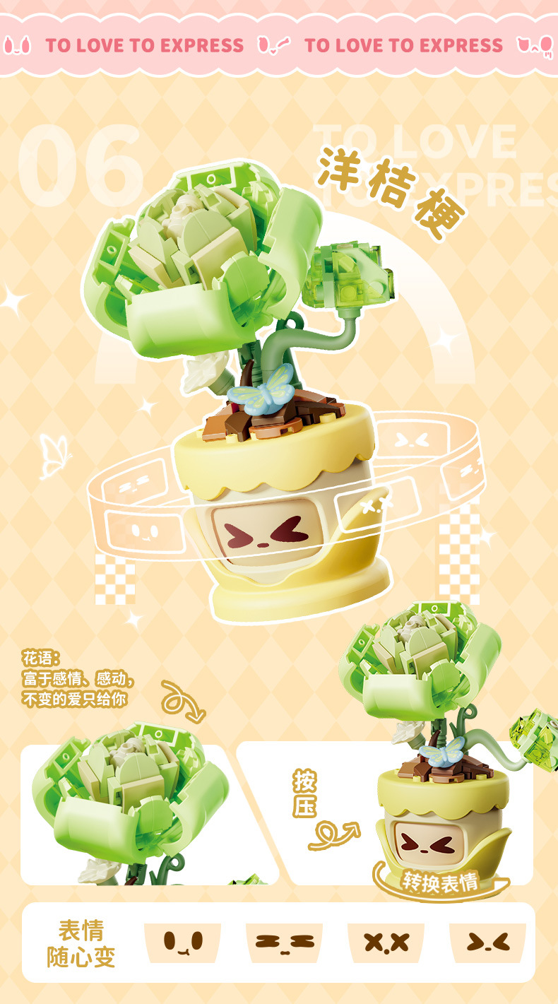 兼容乐高教师节情人节日积木花多肉盆栽情绪变脸花语拼装玩具