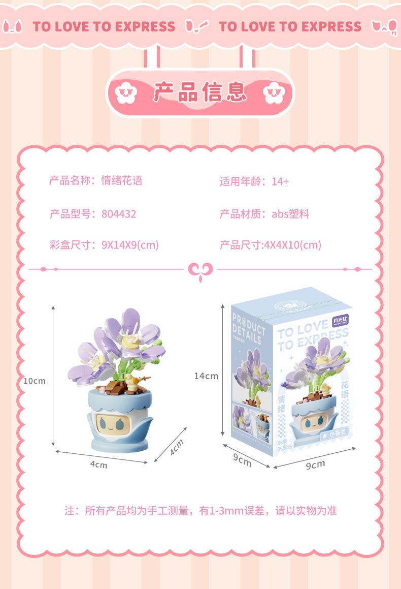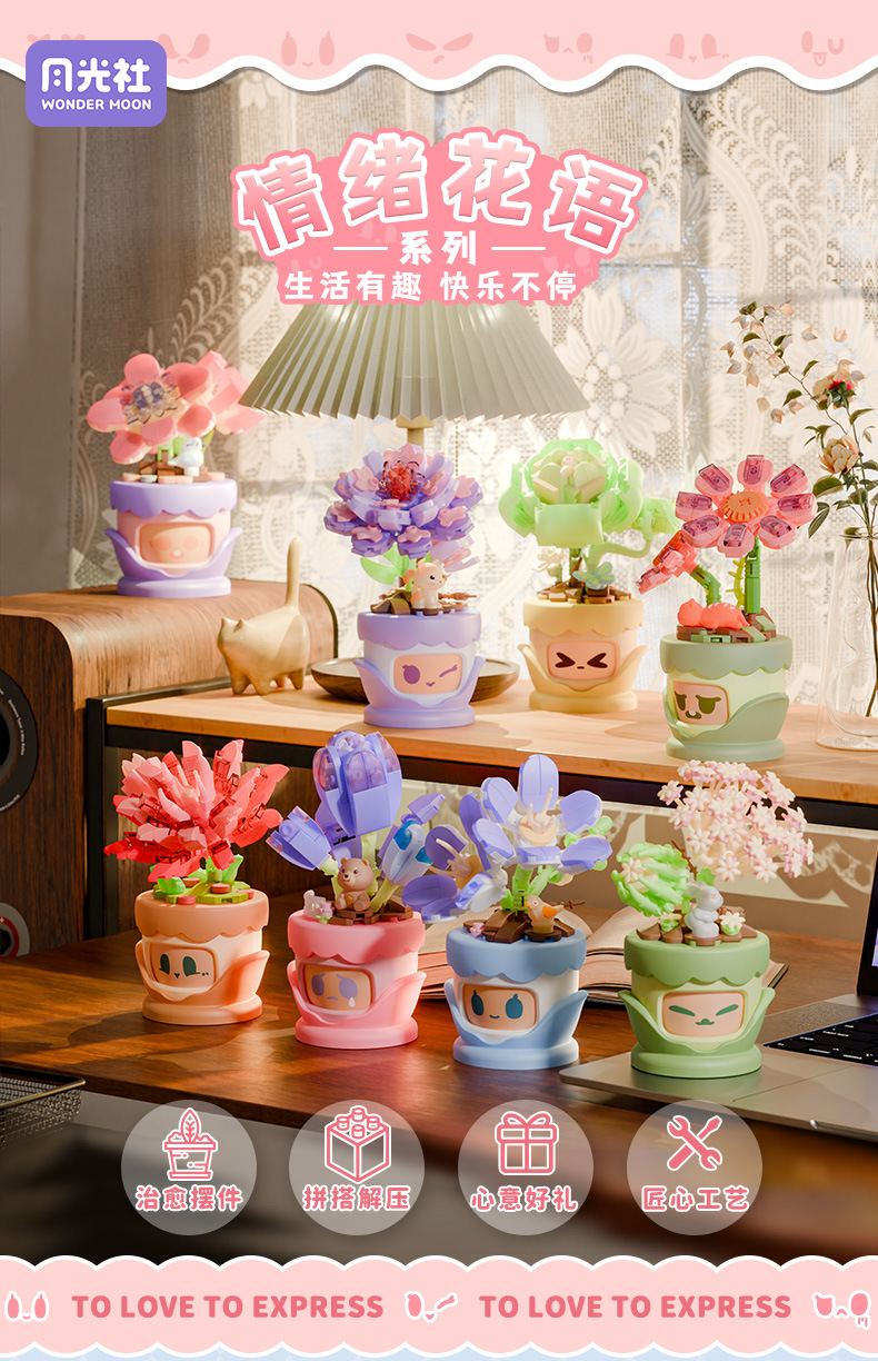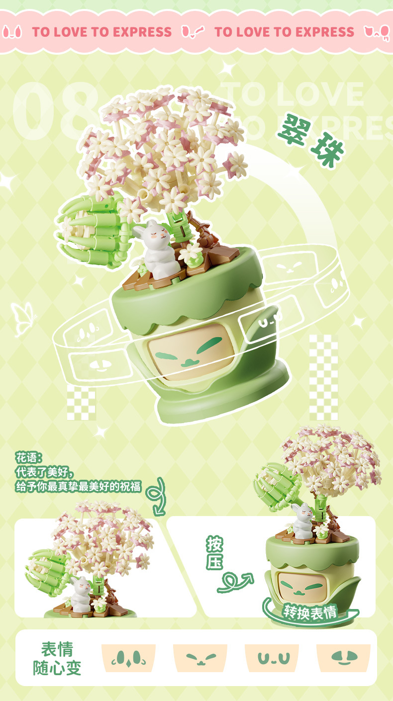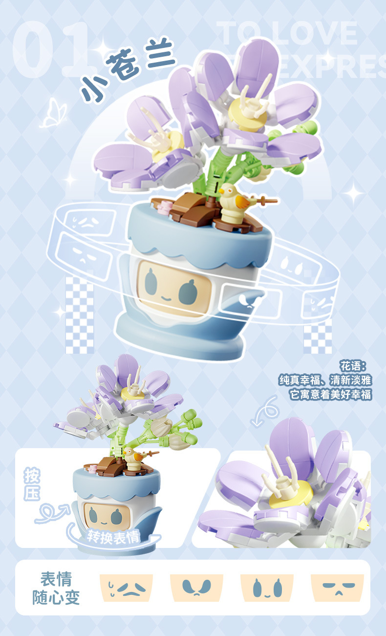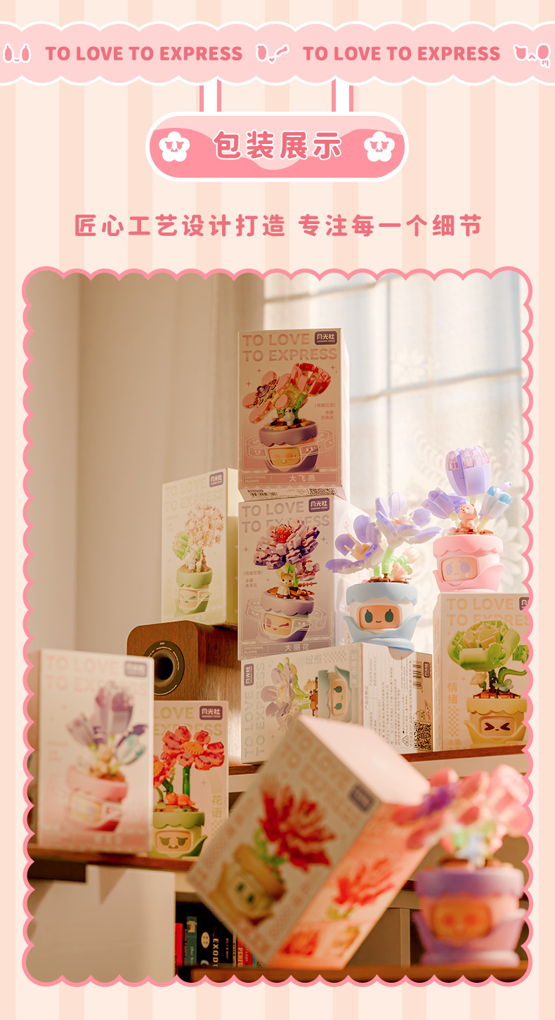 兼容乐高教师节情人节日积木花多肉盆栽情绪变脸花语拼装玩具