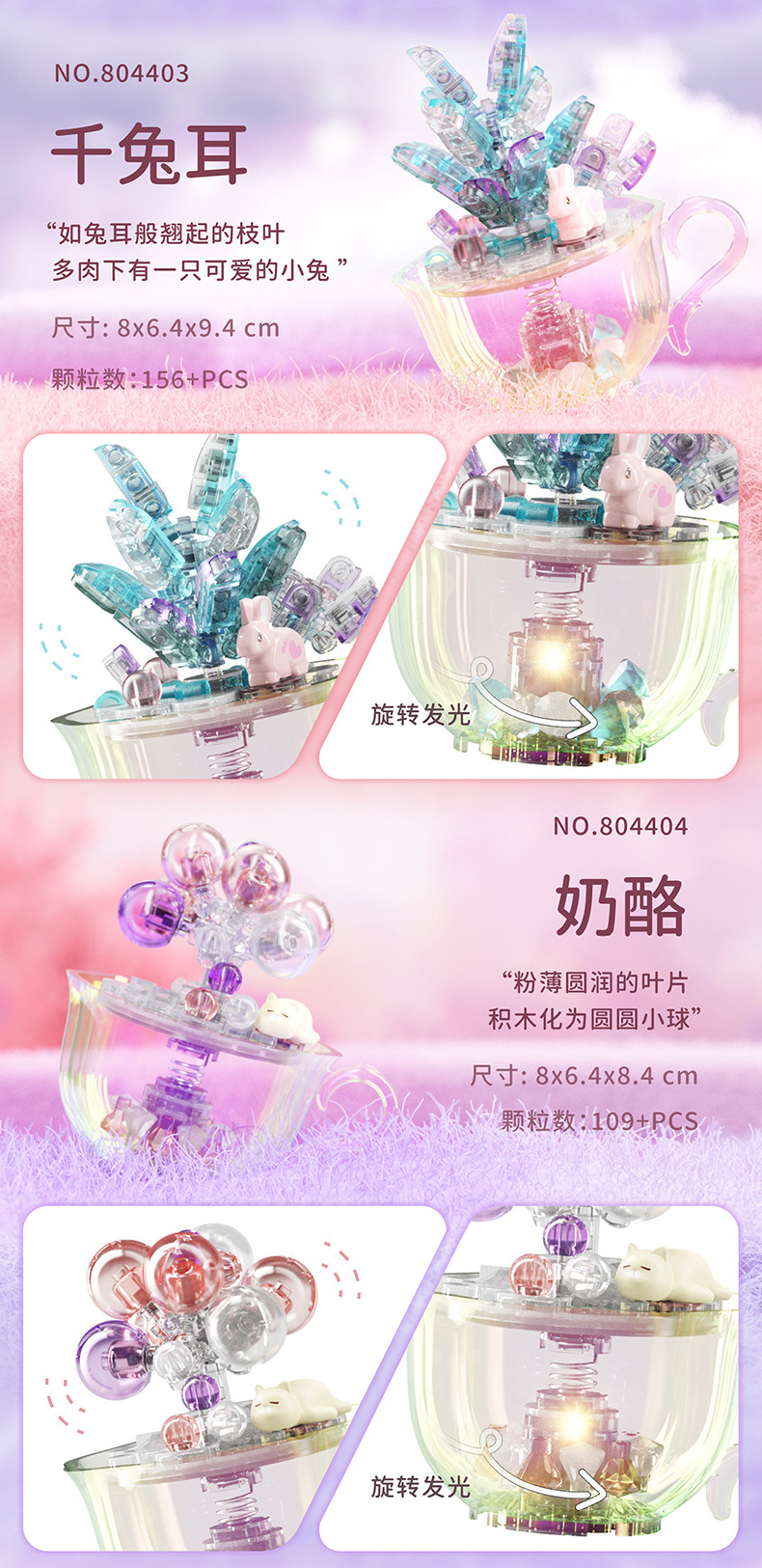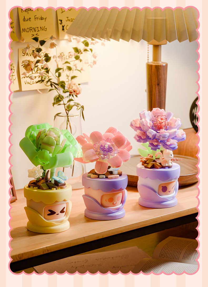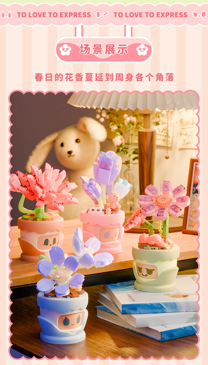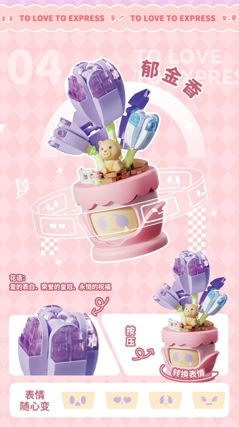 兼容乐高教师节情人节日积木花多肉盆栽情绪变脸花语拼装玩具