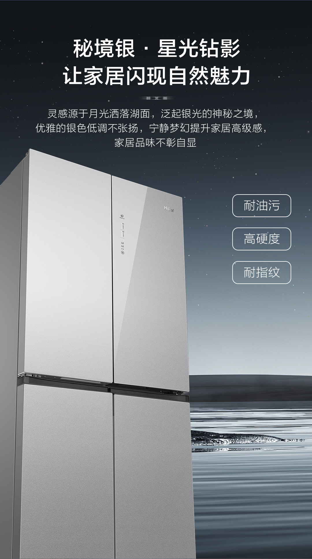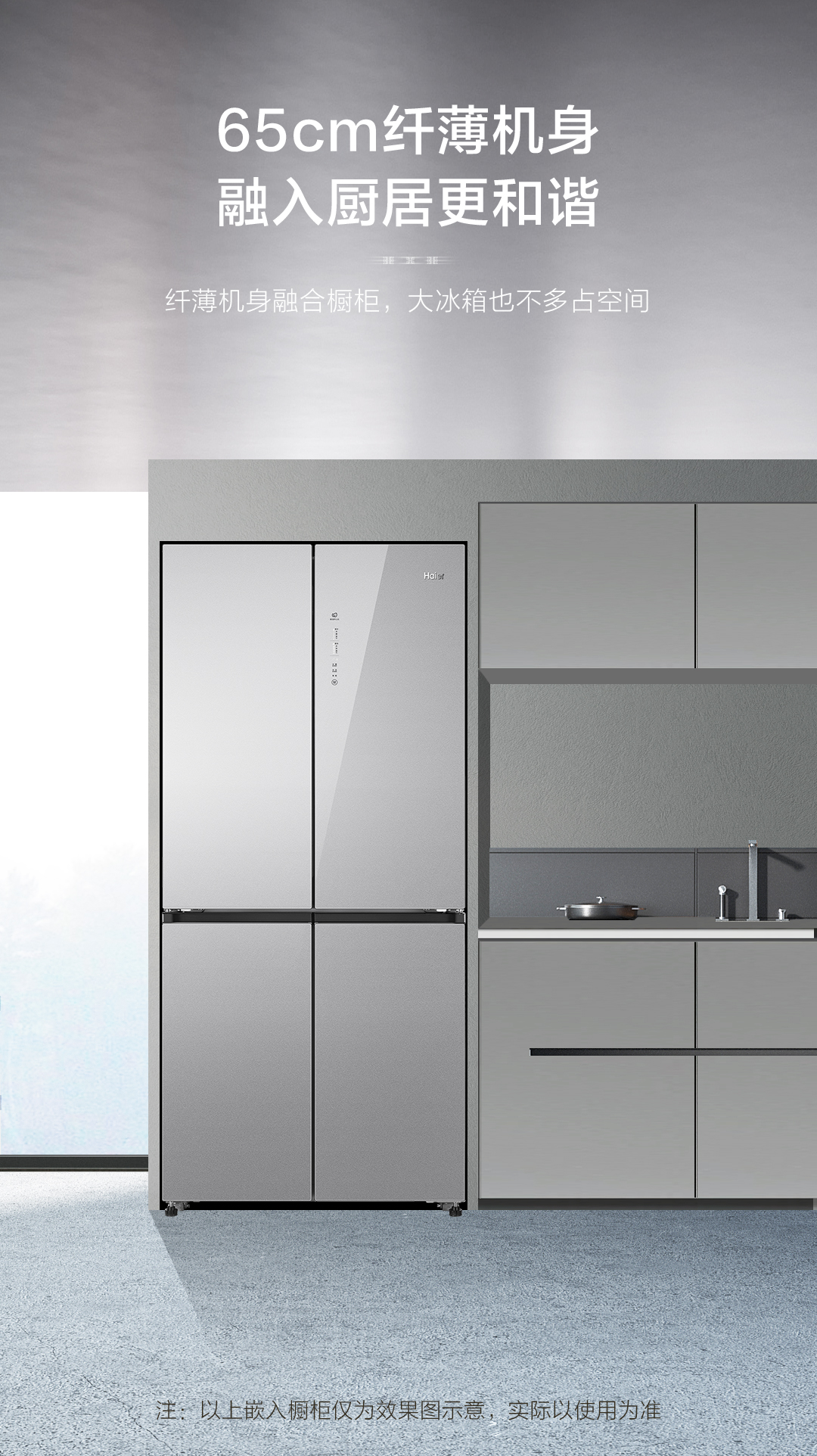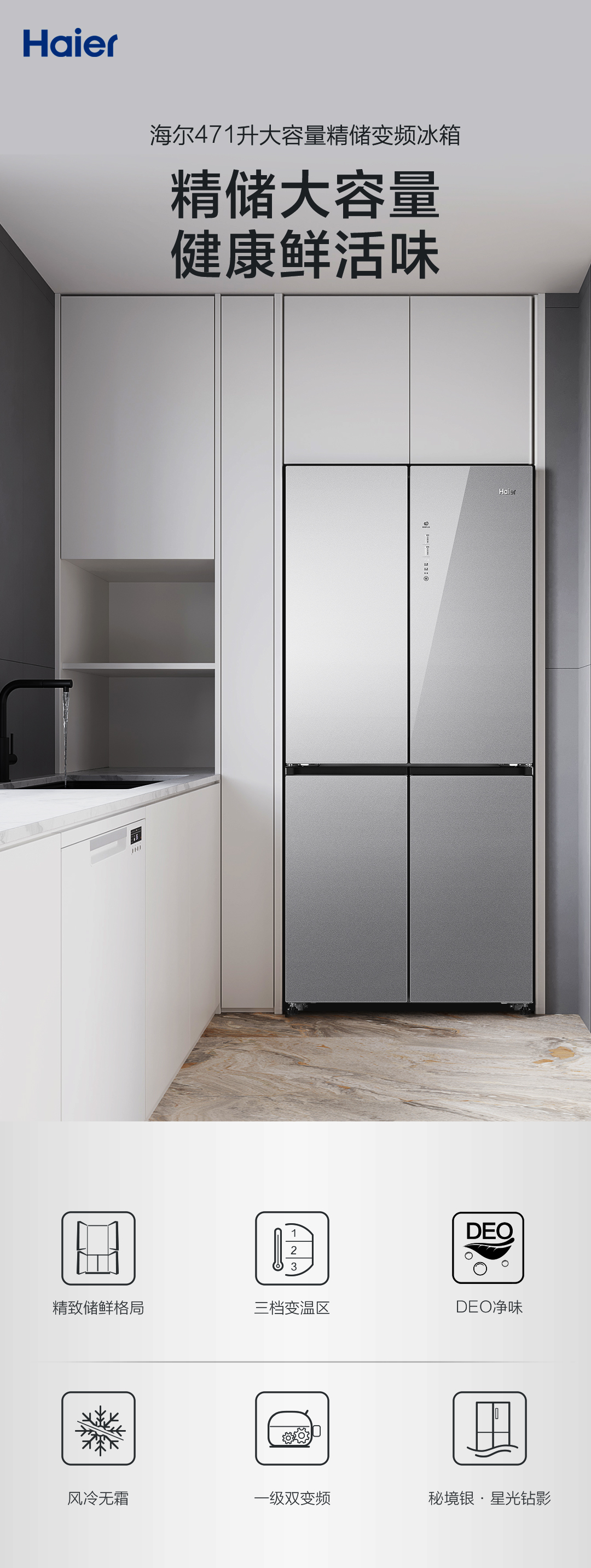 海尔(202883)冰箱BCD-471WGHTDEDSW彩晶变频1级风冷无霜 超薄箱体、厨装一体 压机风机双变频设计 三挡变温 DEO净味系统