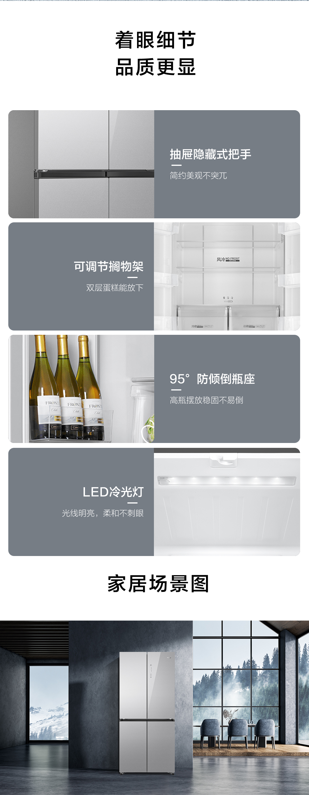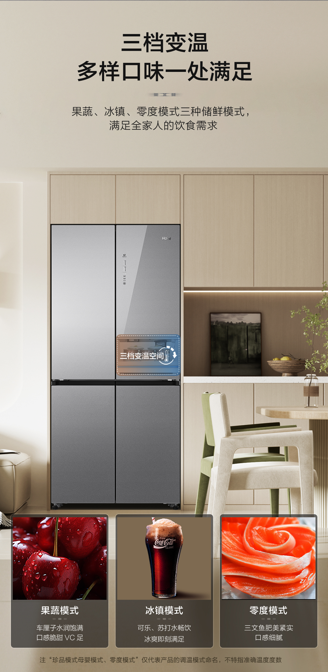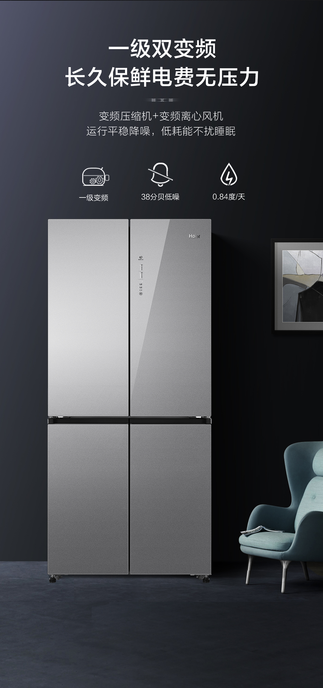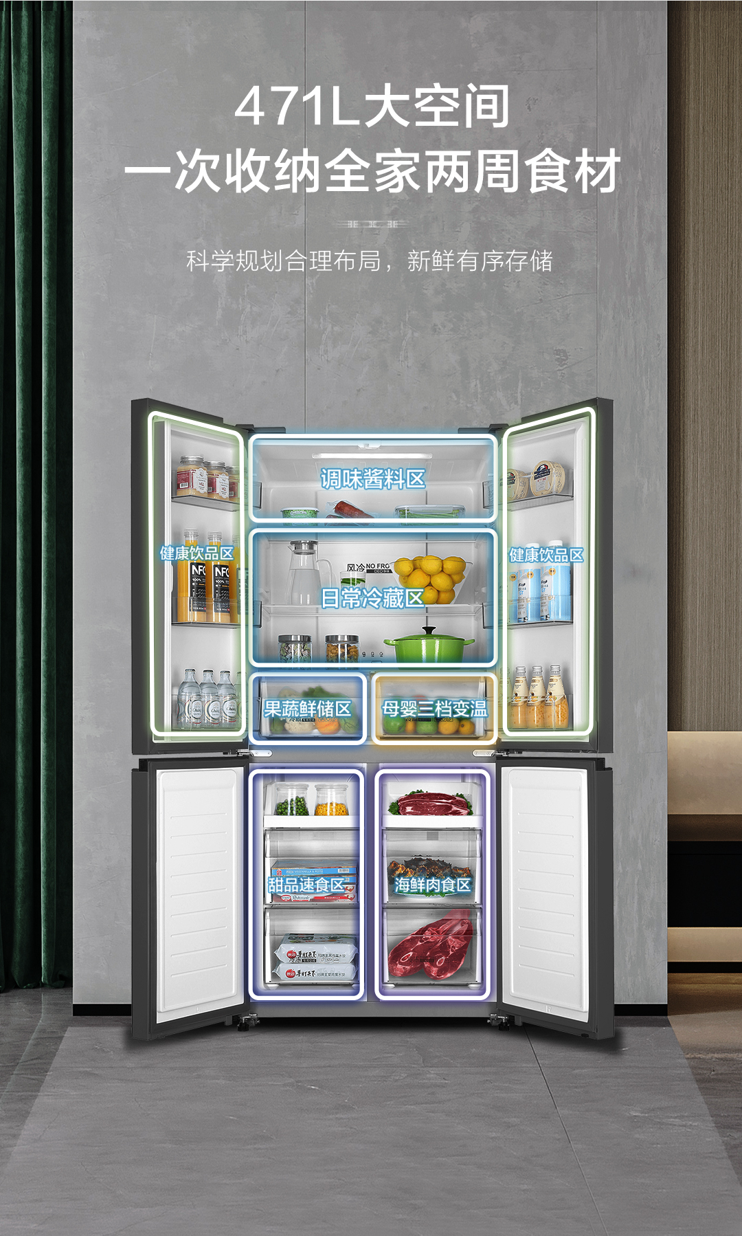 海尔(202883)冰箱BCD-471WGHTDEDSW彩晶变频1级风冷无霜 超薄箱体、厨装一体 压机风机双变频设计 三挡变温 DEO净味系统
