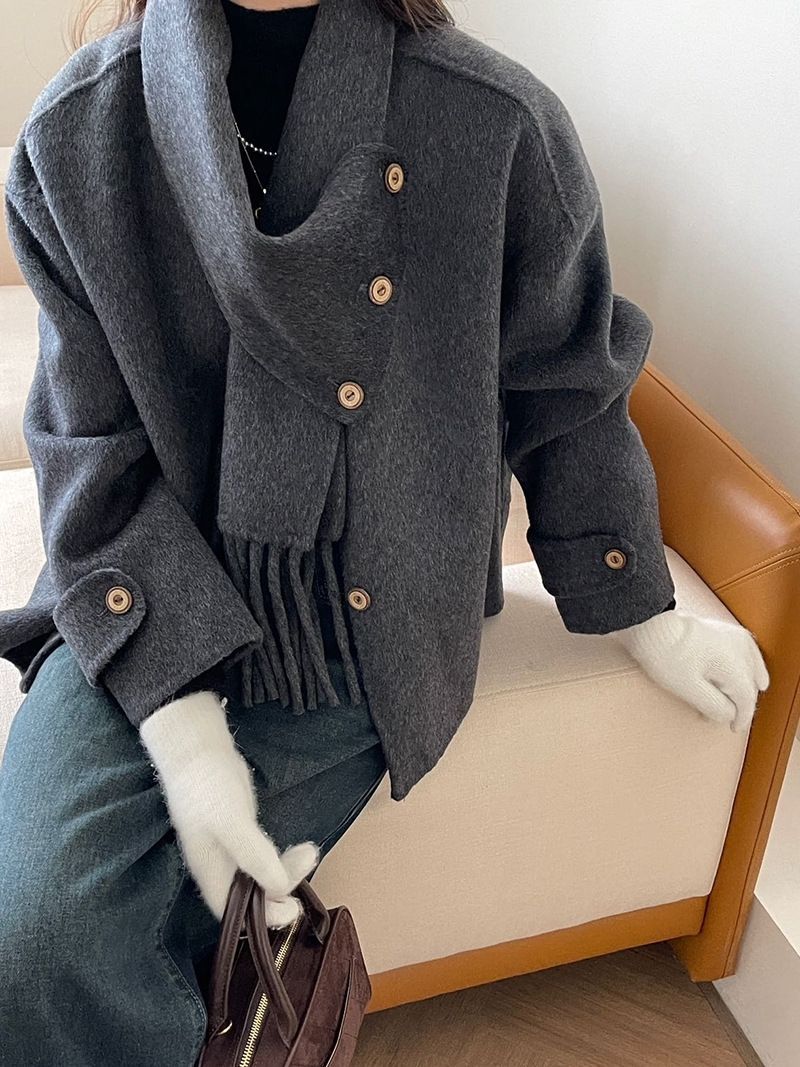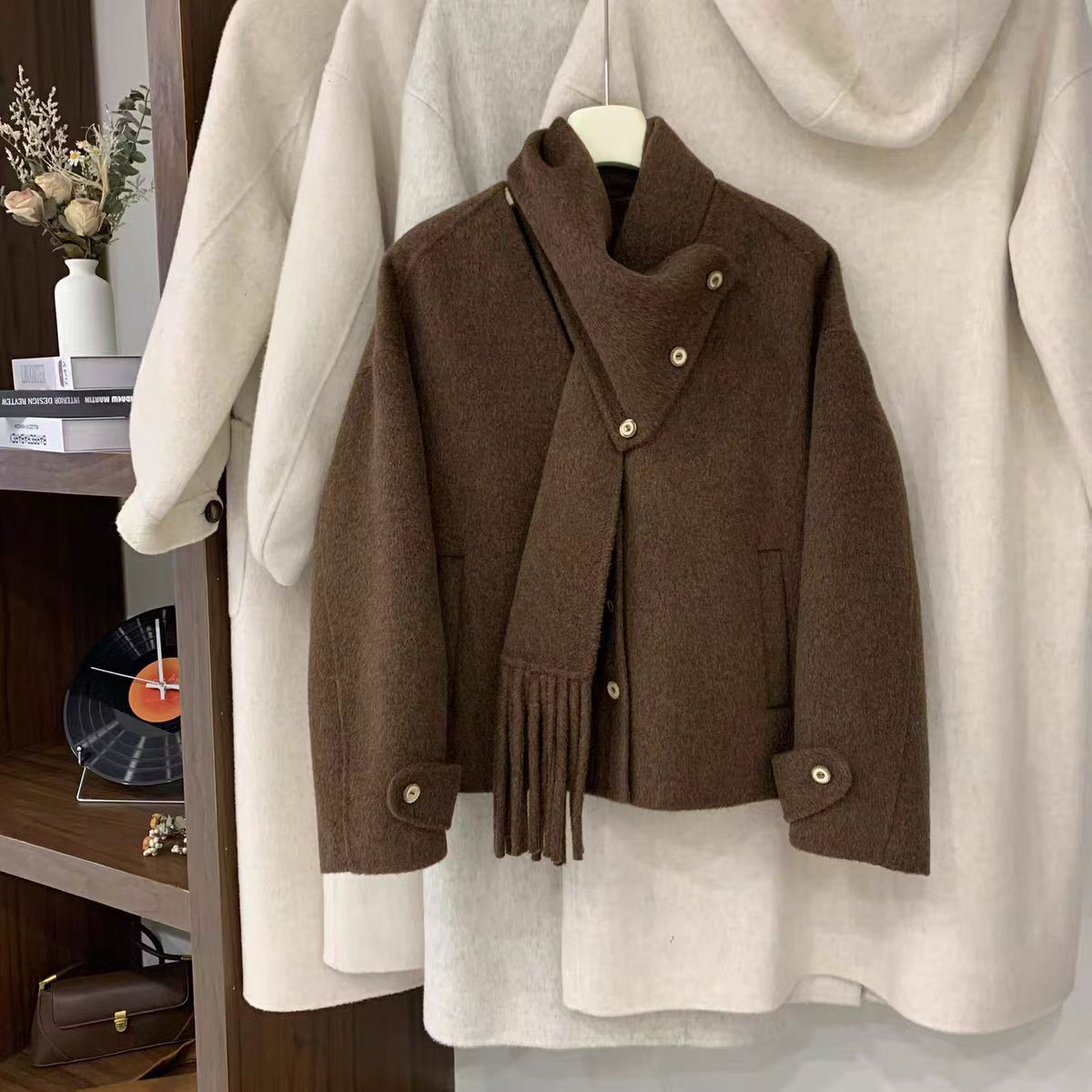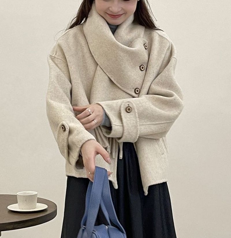 【YW】无忧购“清仓福利”秋冬时尚韩版宽松围巾双面羊绒大衣女羊毛呢外套(截单后3-5天发货)