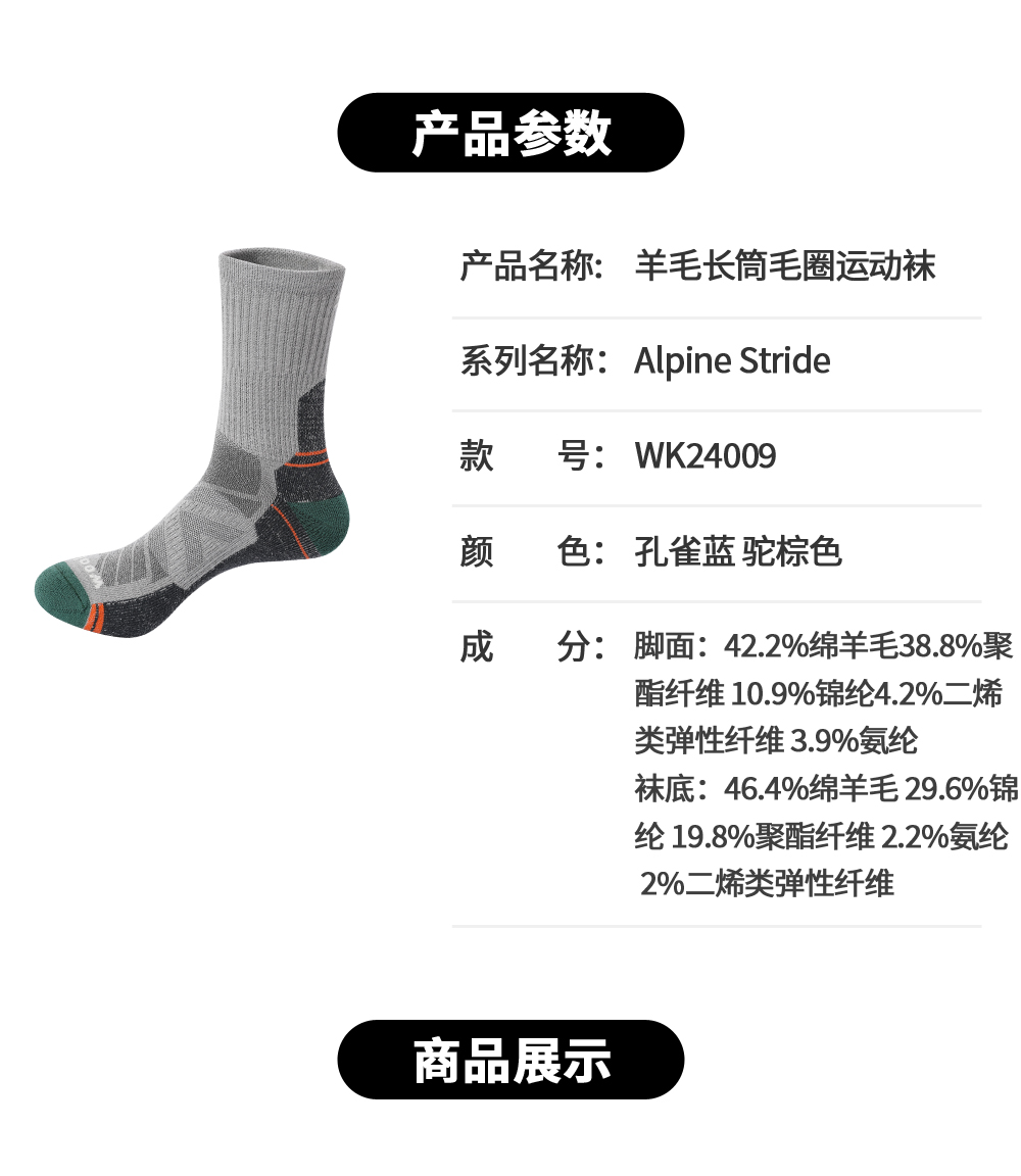 woolikin·Alpine Stride 羊毛长筒毛圈运动袜VICUNA@ WK24009