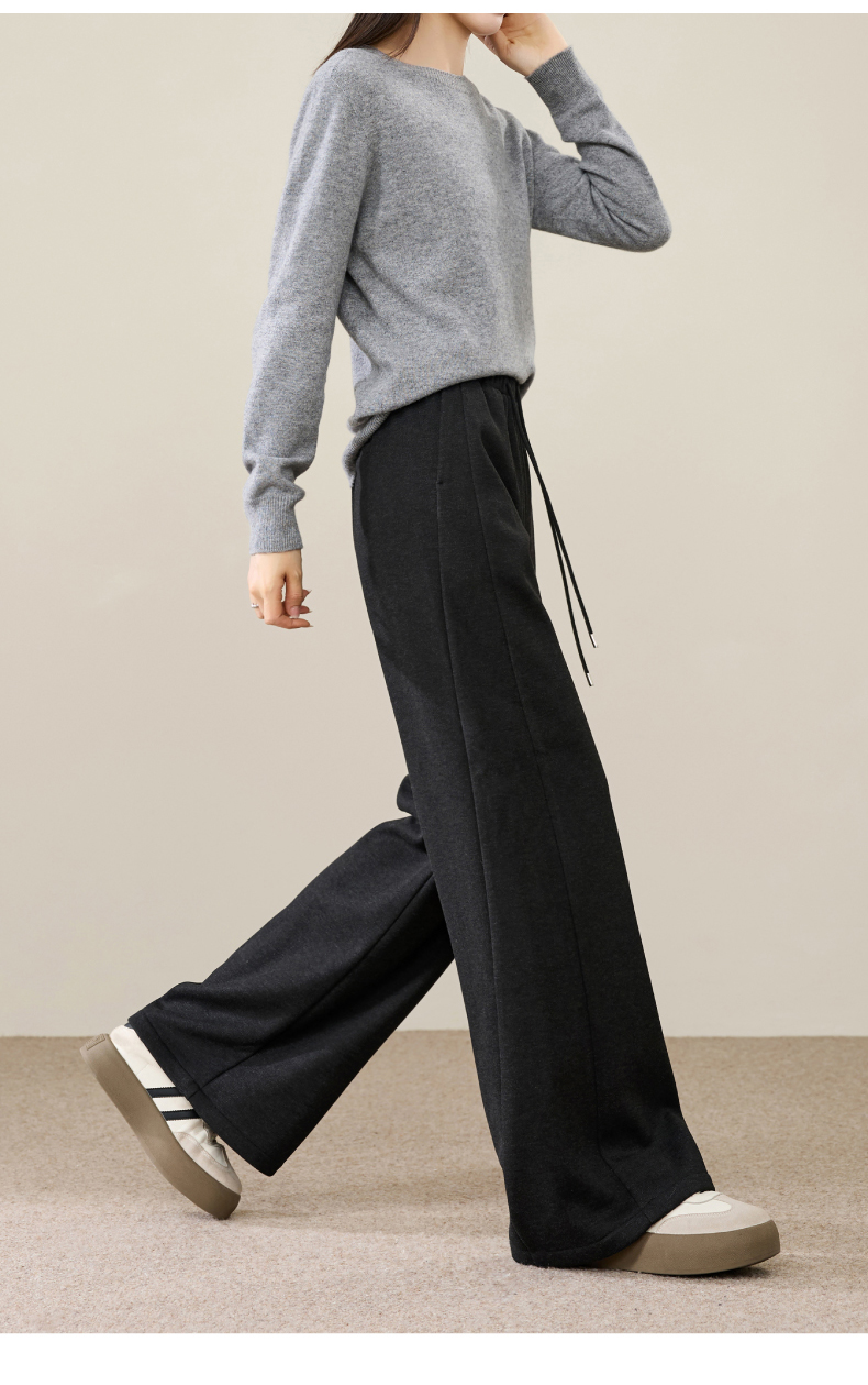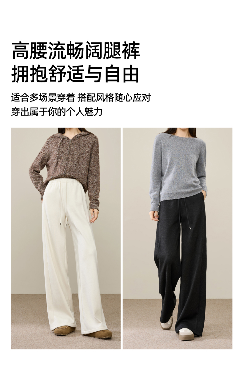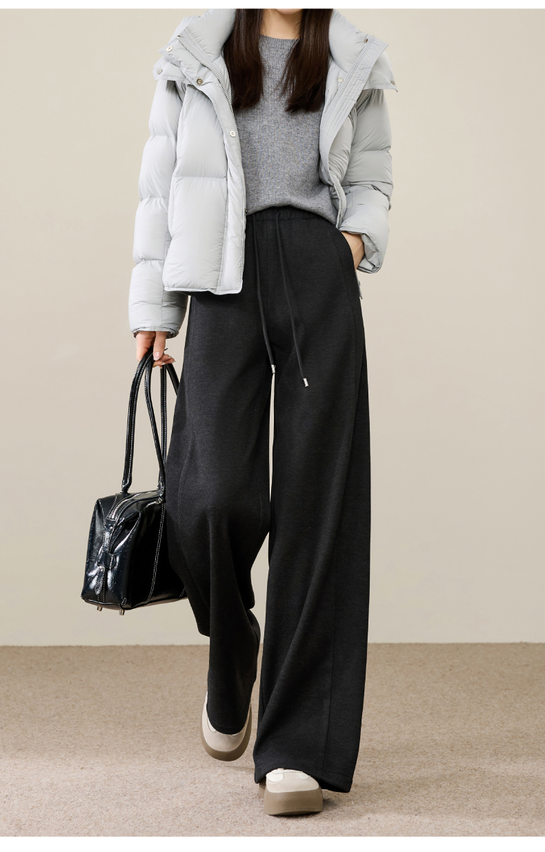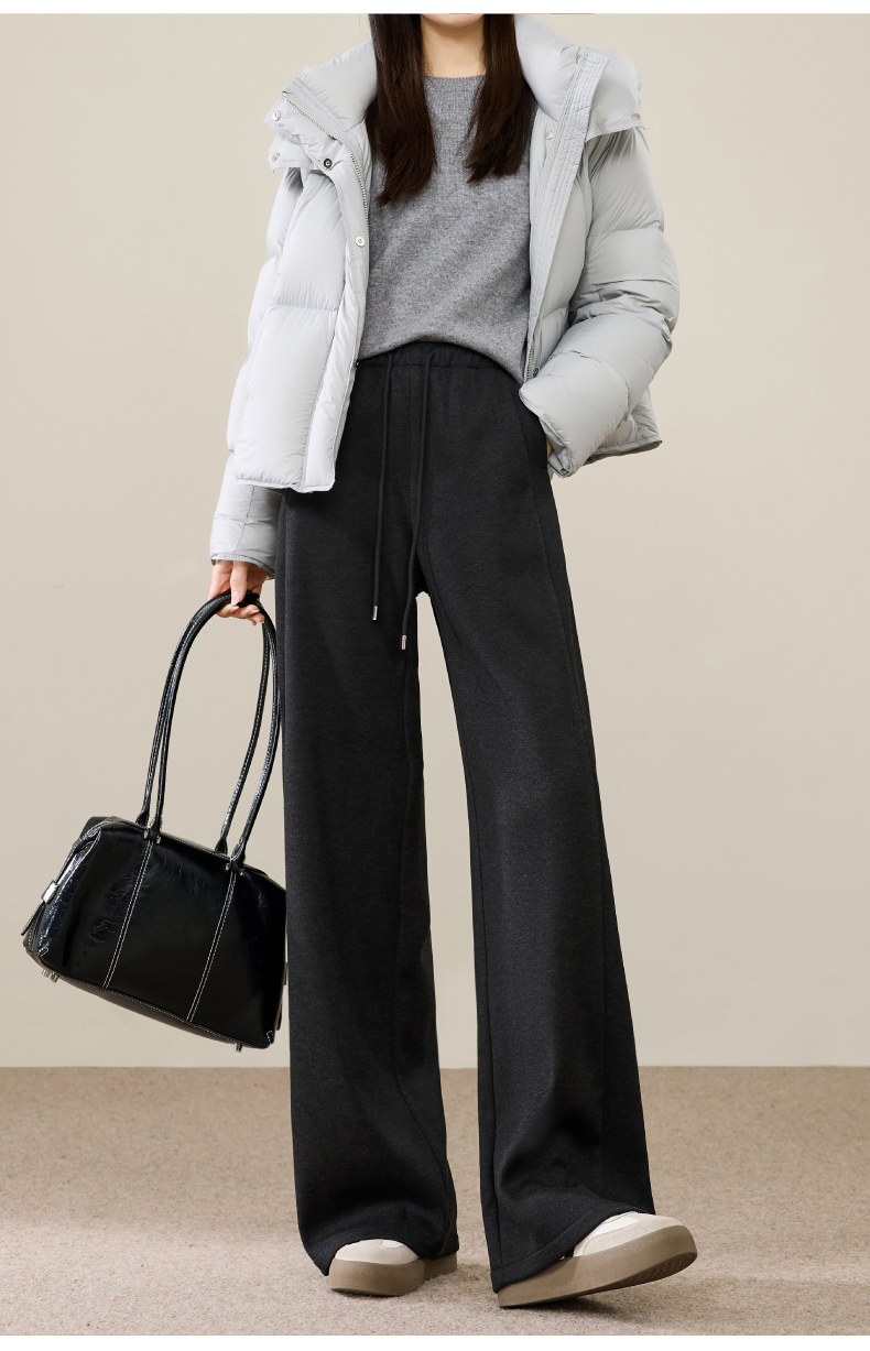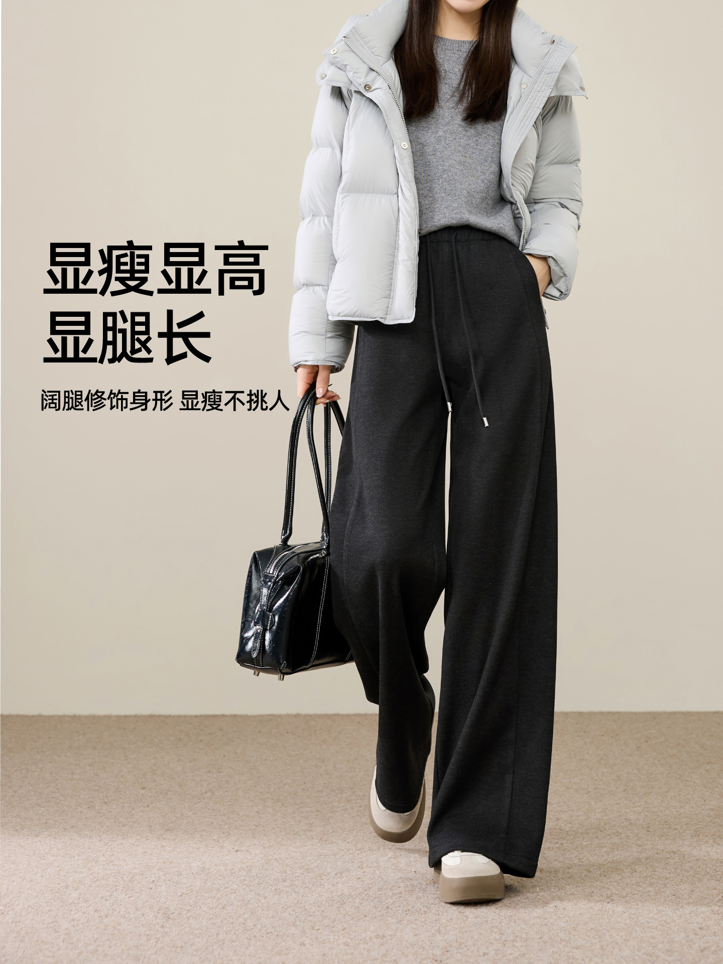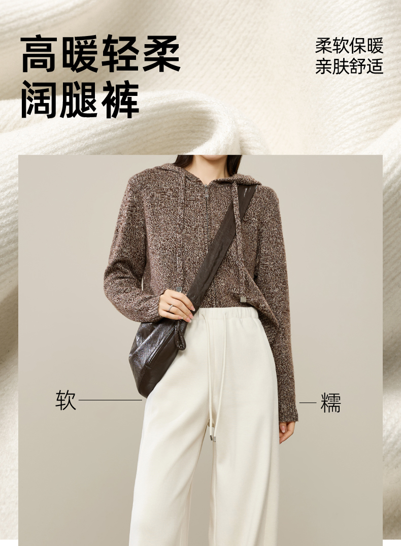 【高暖轻柔阔腿裤】逸阳冬季加绒加厚显瘦遮肉软糯侧分割宽松裤子8635