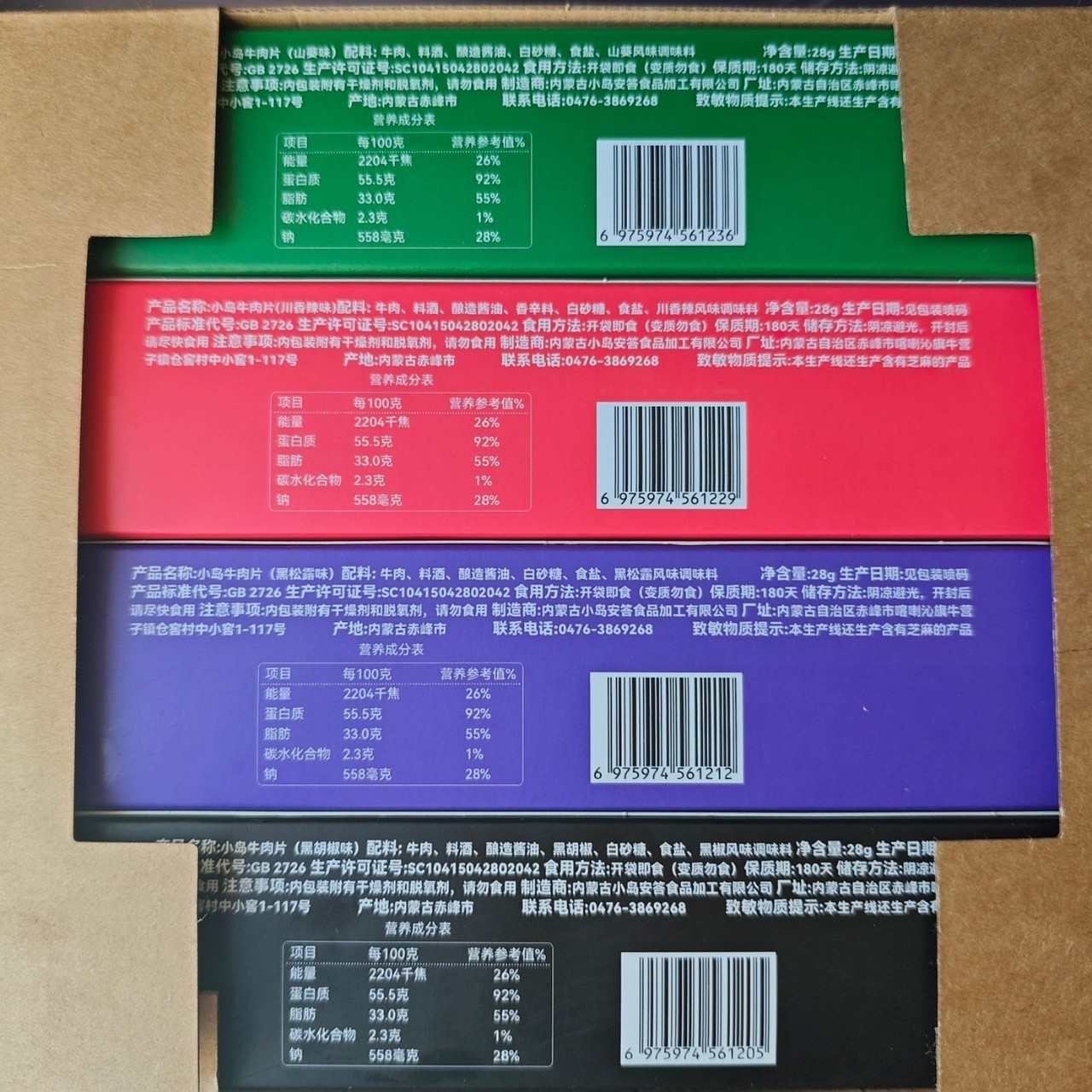 💚山葵味 ❤️川香辣味 🤎黑松露味 🖤黑胡椒味100%大片原切肉,纹理分明、奶香醇正还细腻耐嚼