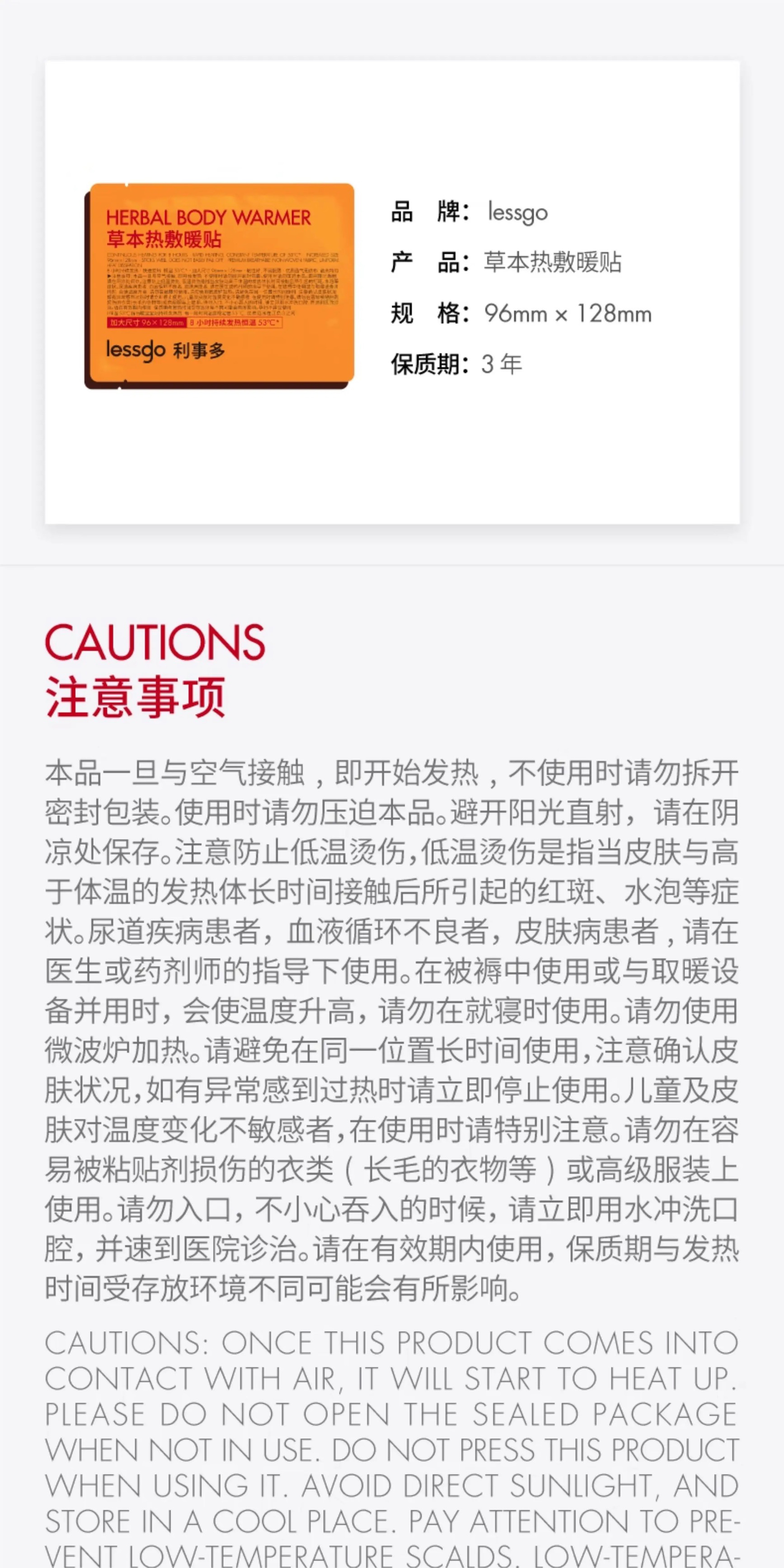 lessgo利事多草本热敷暖贴10片 女生宫寒痛经外敷暖身贴