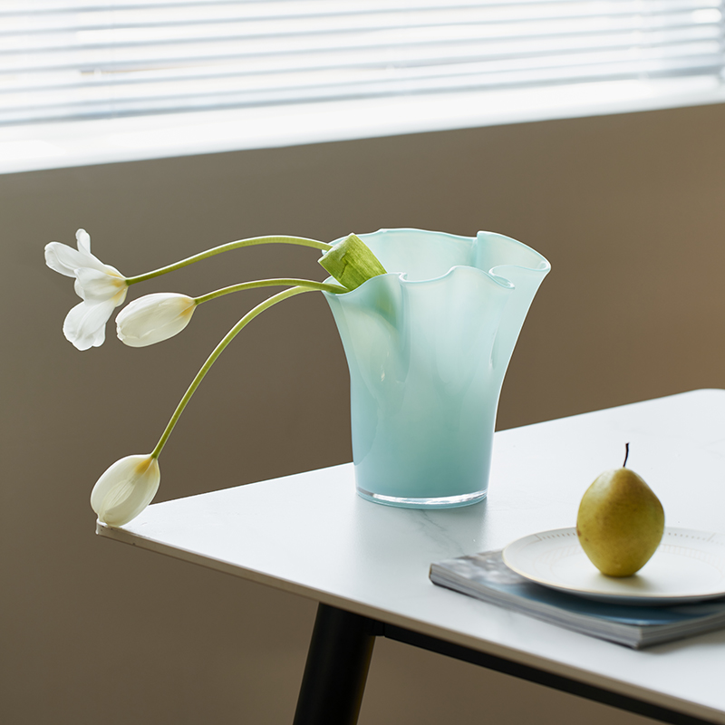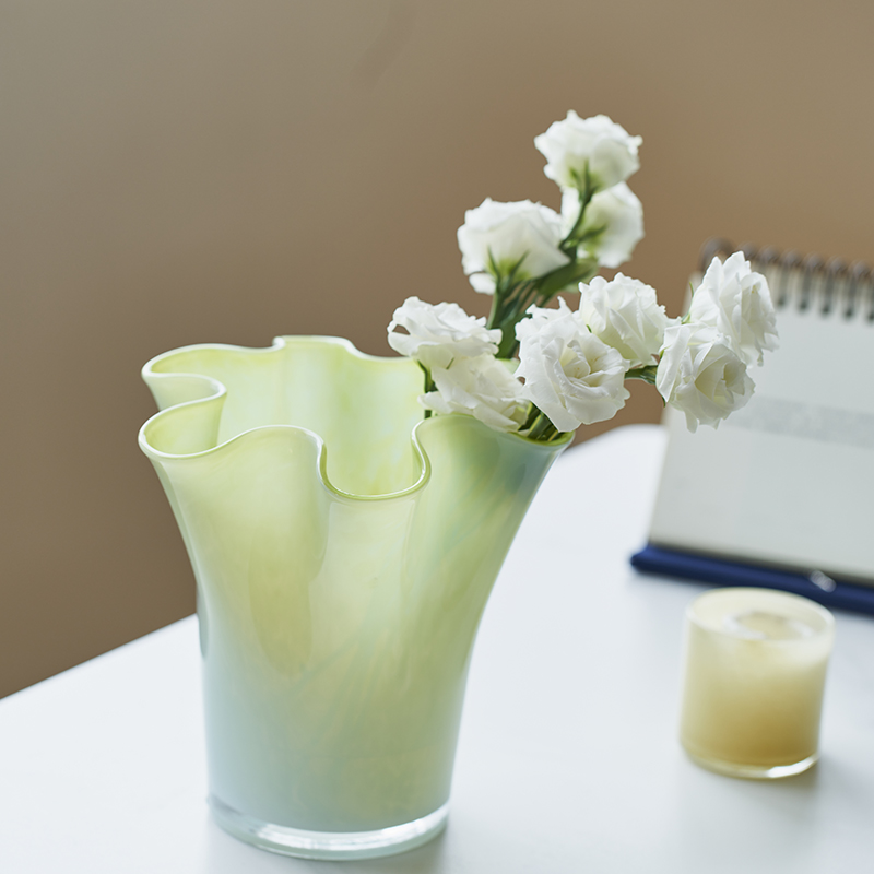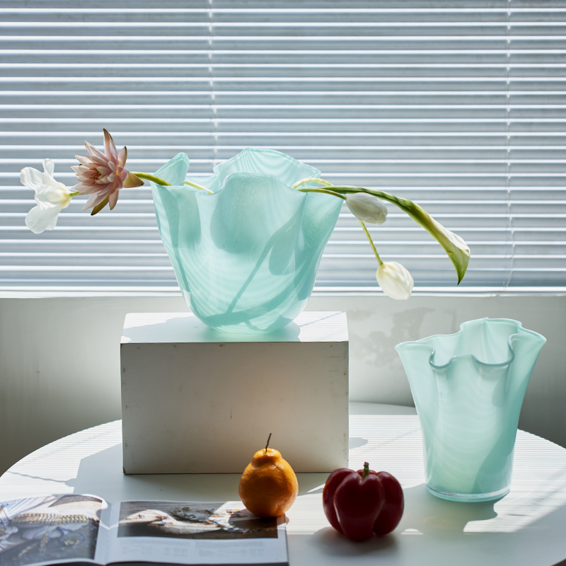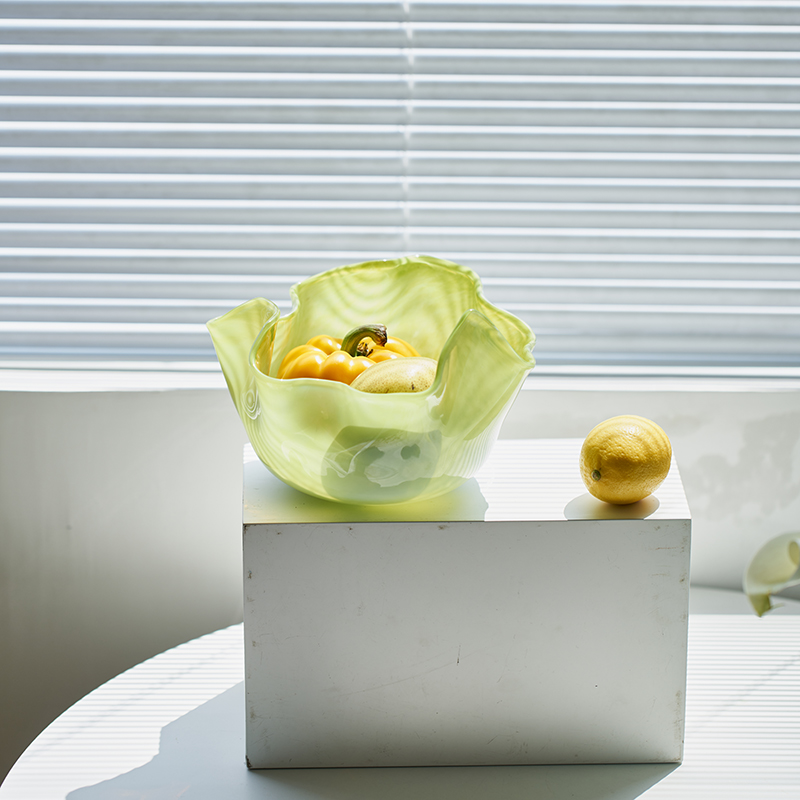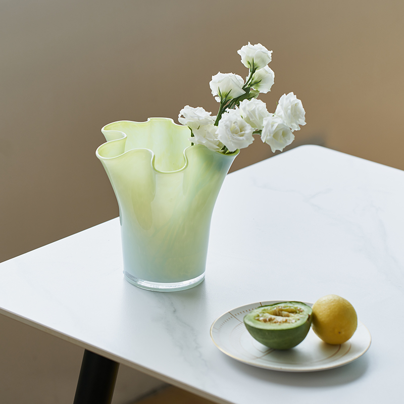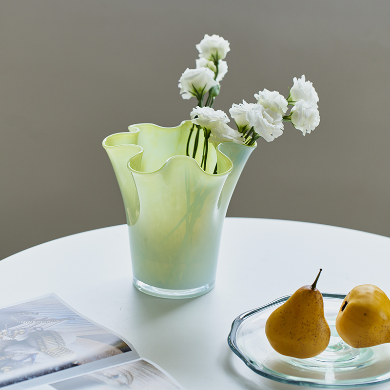 创意仿古褶子手工波浪口白菜玻璃花瓶家居软装台面水培果盘摆件