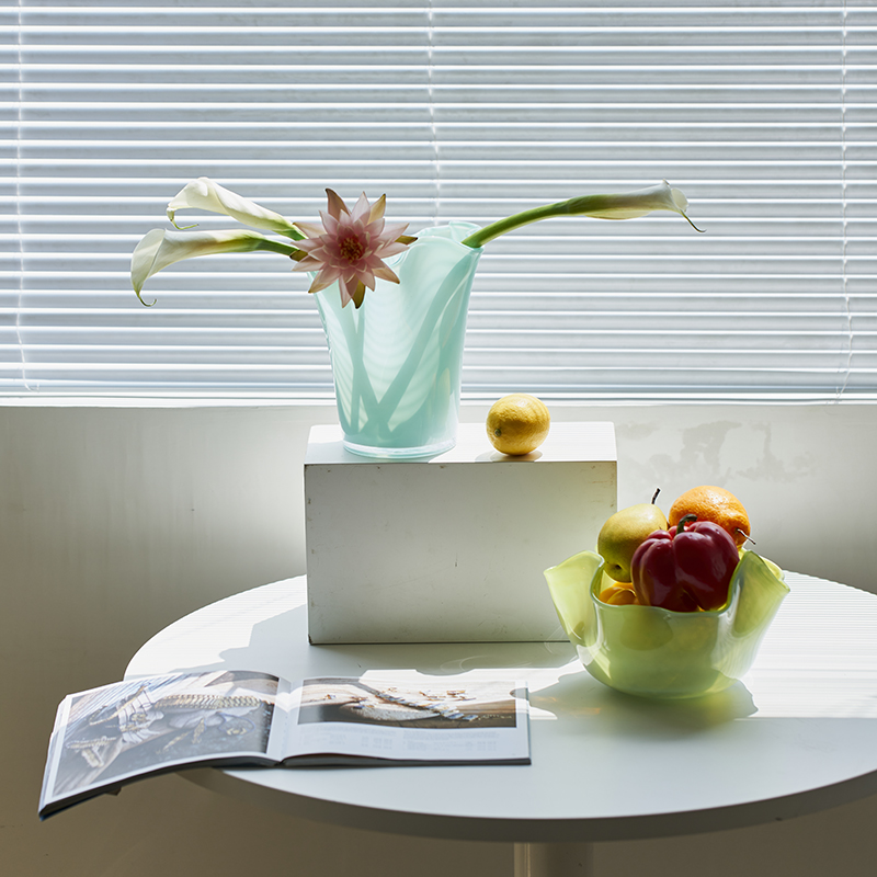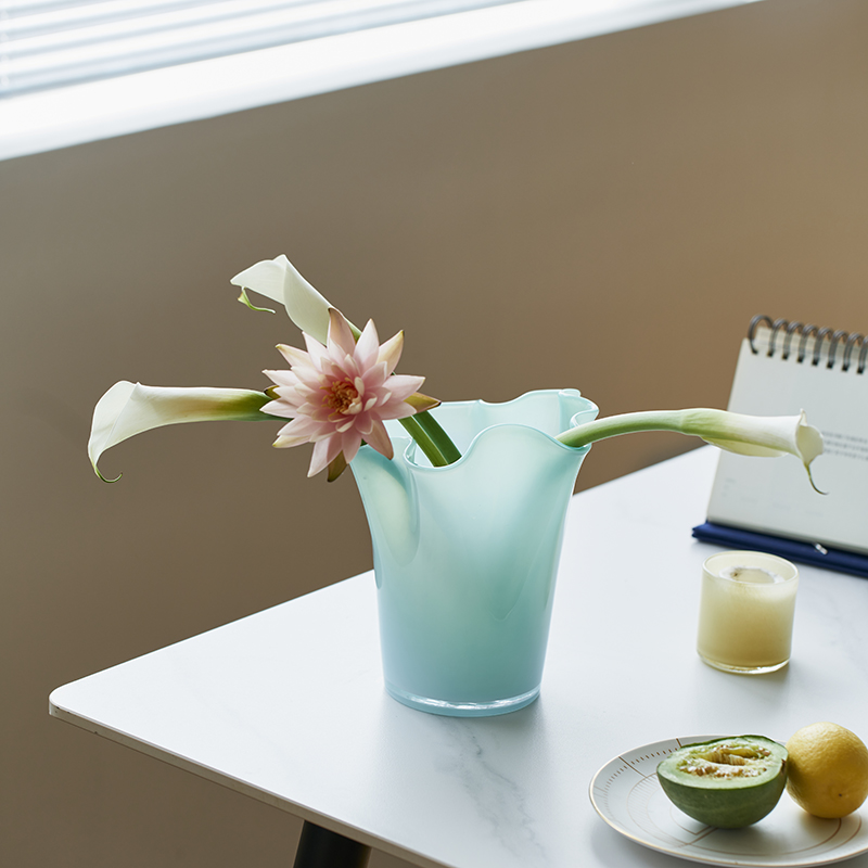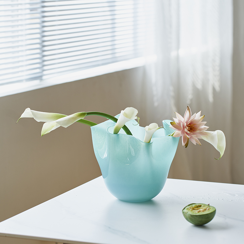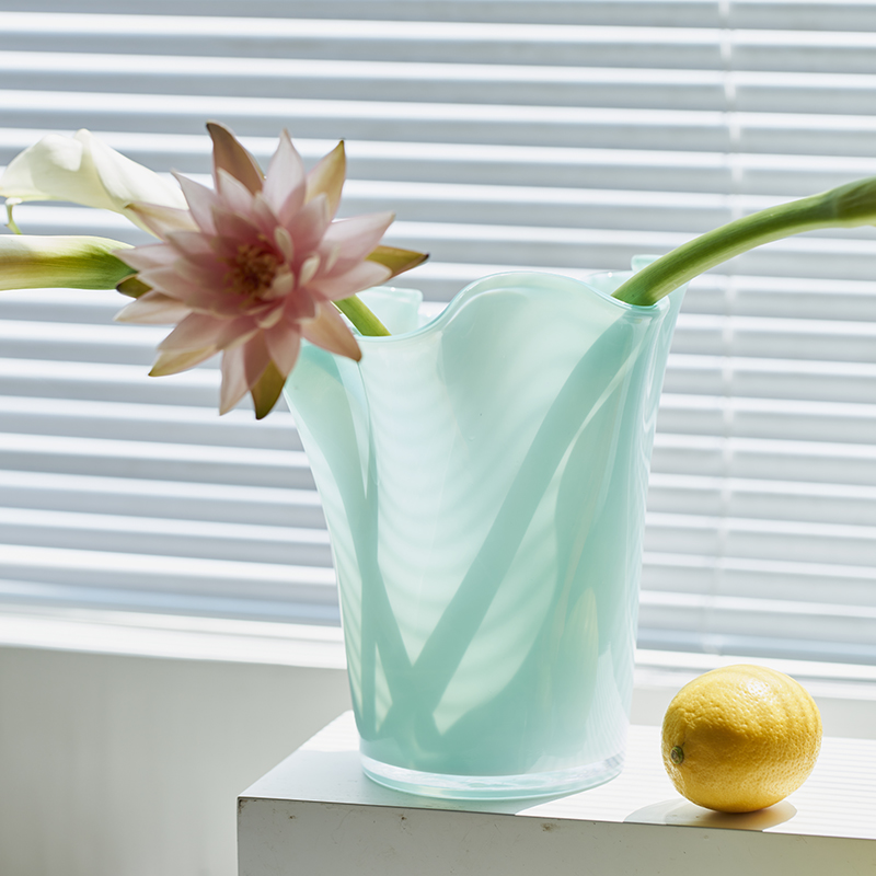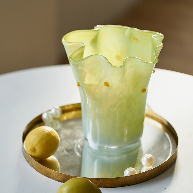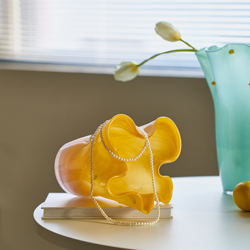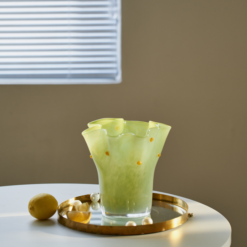 创意仿古褶子手工波浪口白菜玻璃花瓶家居软装台面水培果盘摆件