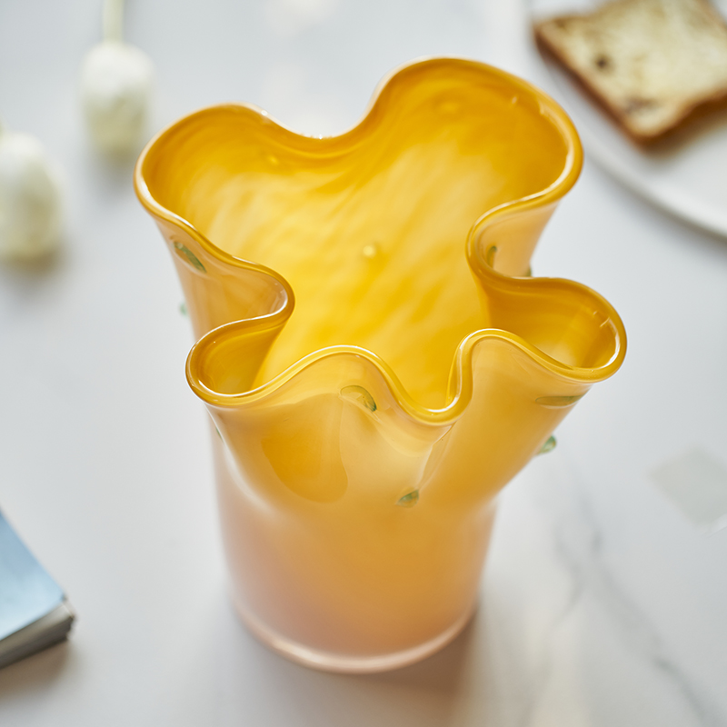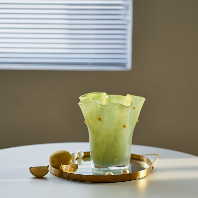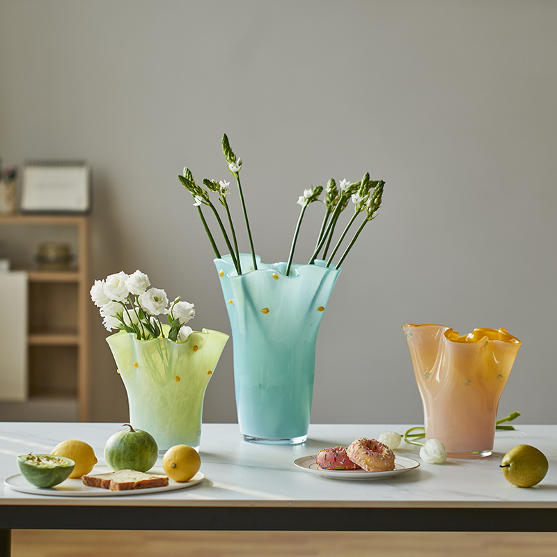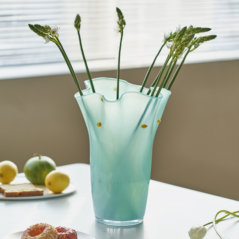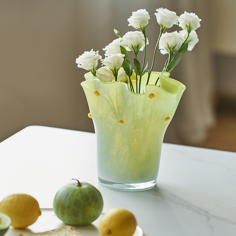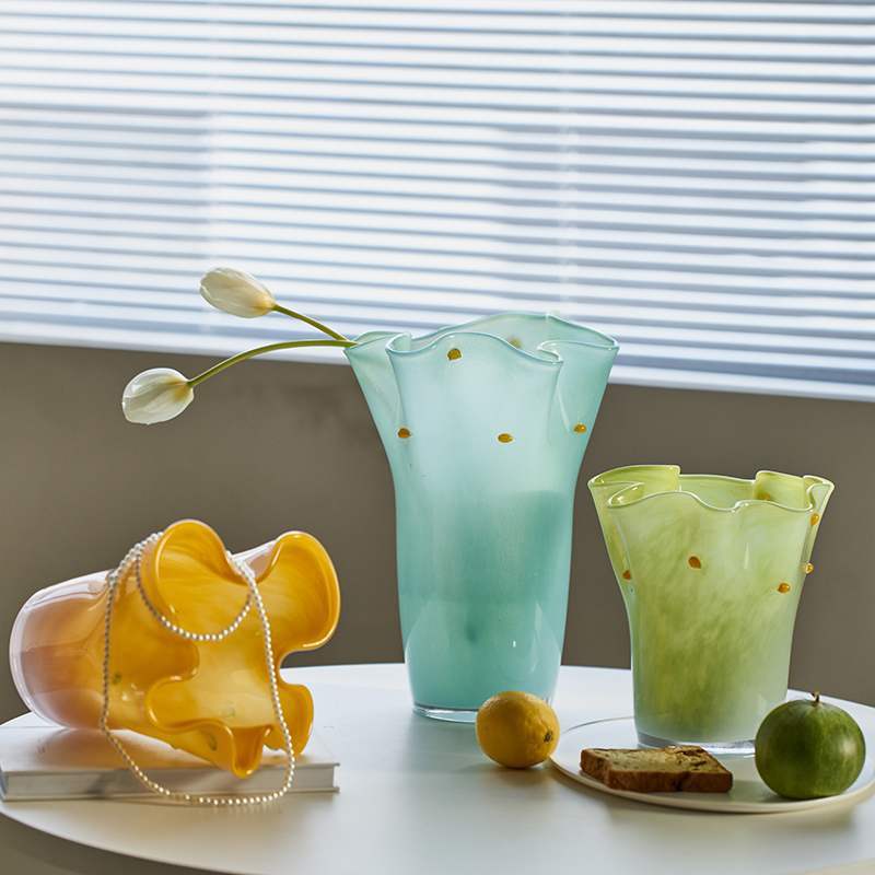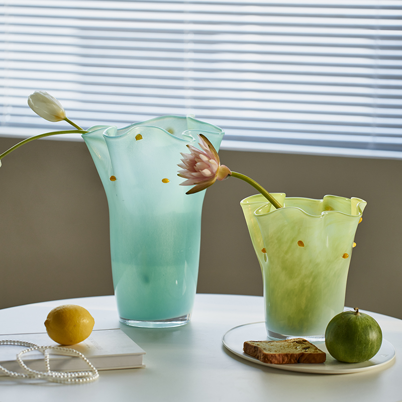 磁粉白菜口部花边玻璃花瓶器皿工艺品餐桌花插
