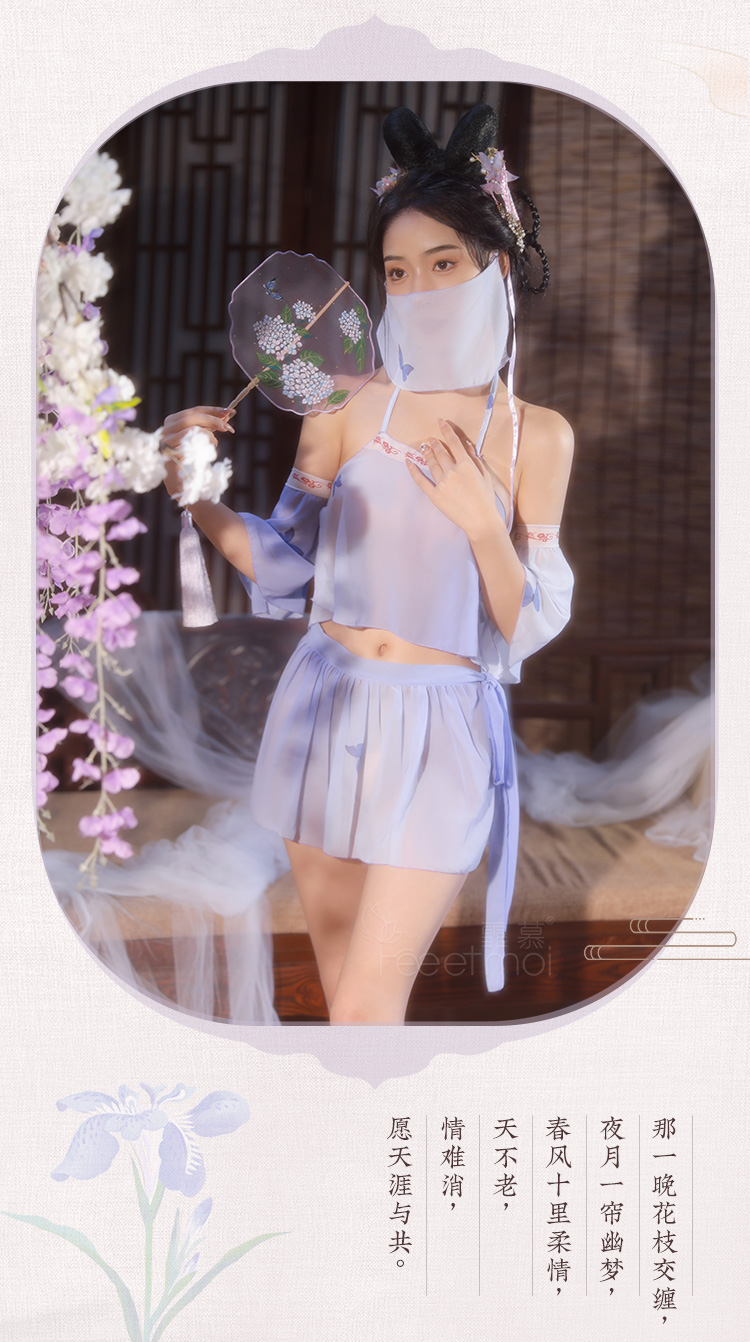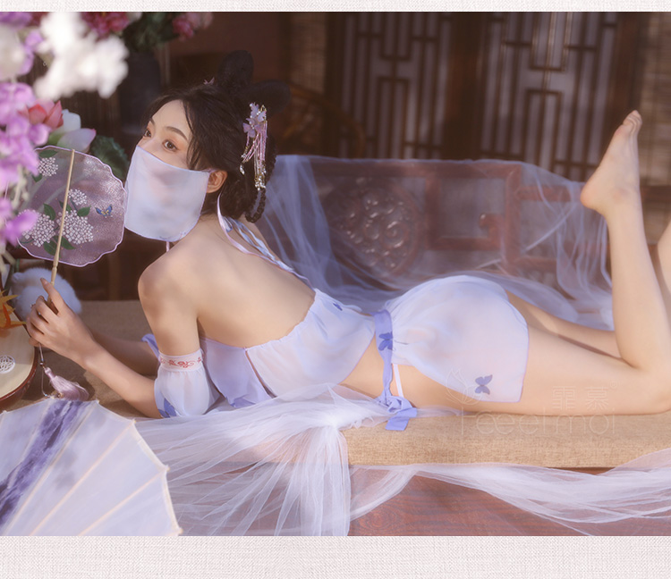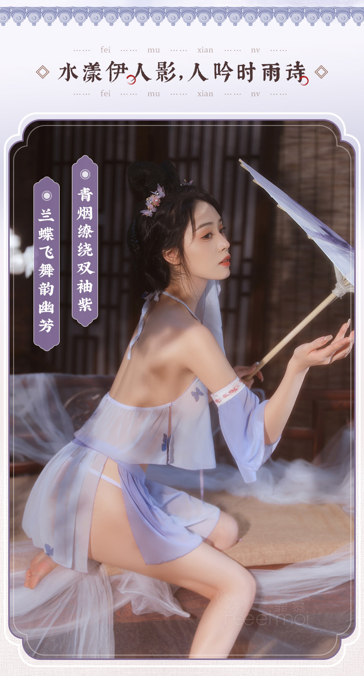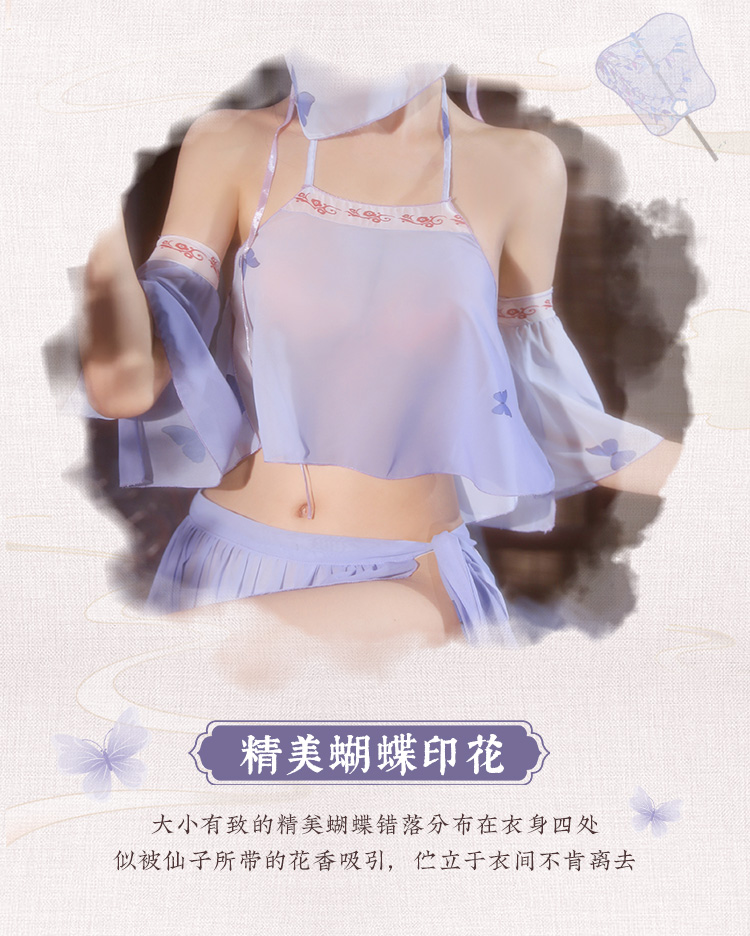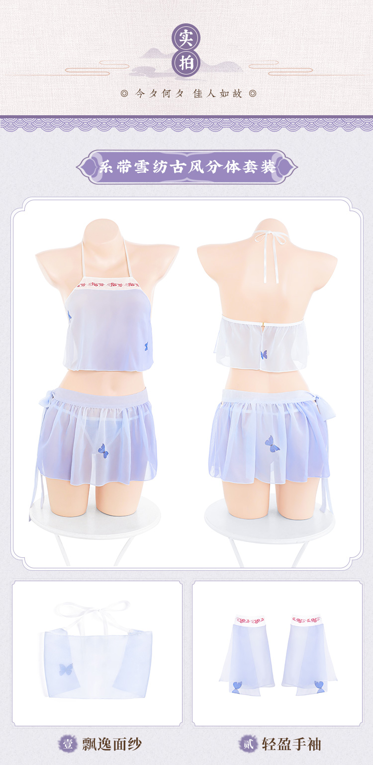 【情趣内衣 古风款!!】霏慕 系带雪纺古风分体套装紫色精灵套装6882