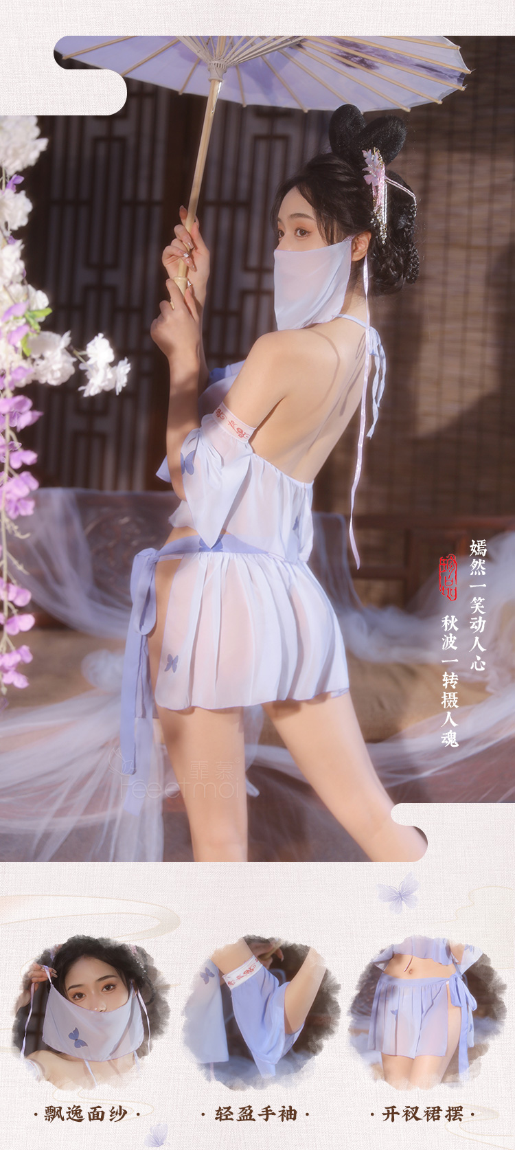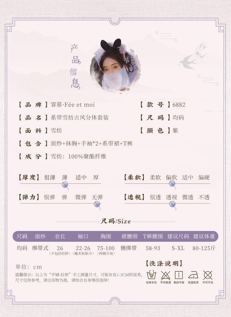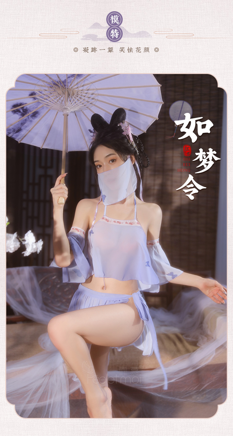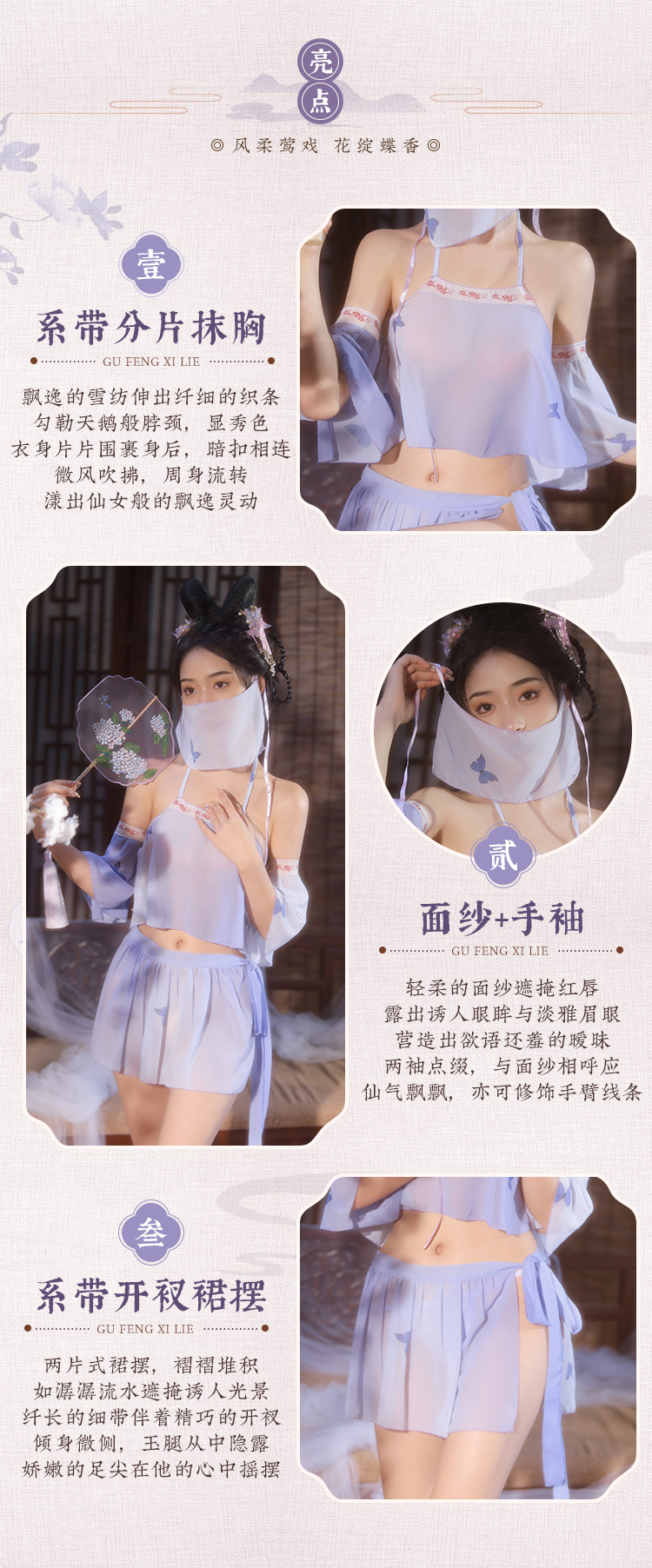 【情趣内衣 古风款!!】霏慕 系带雪纺古风分体套装紫色精灵套装6882