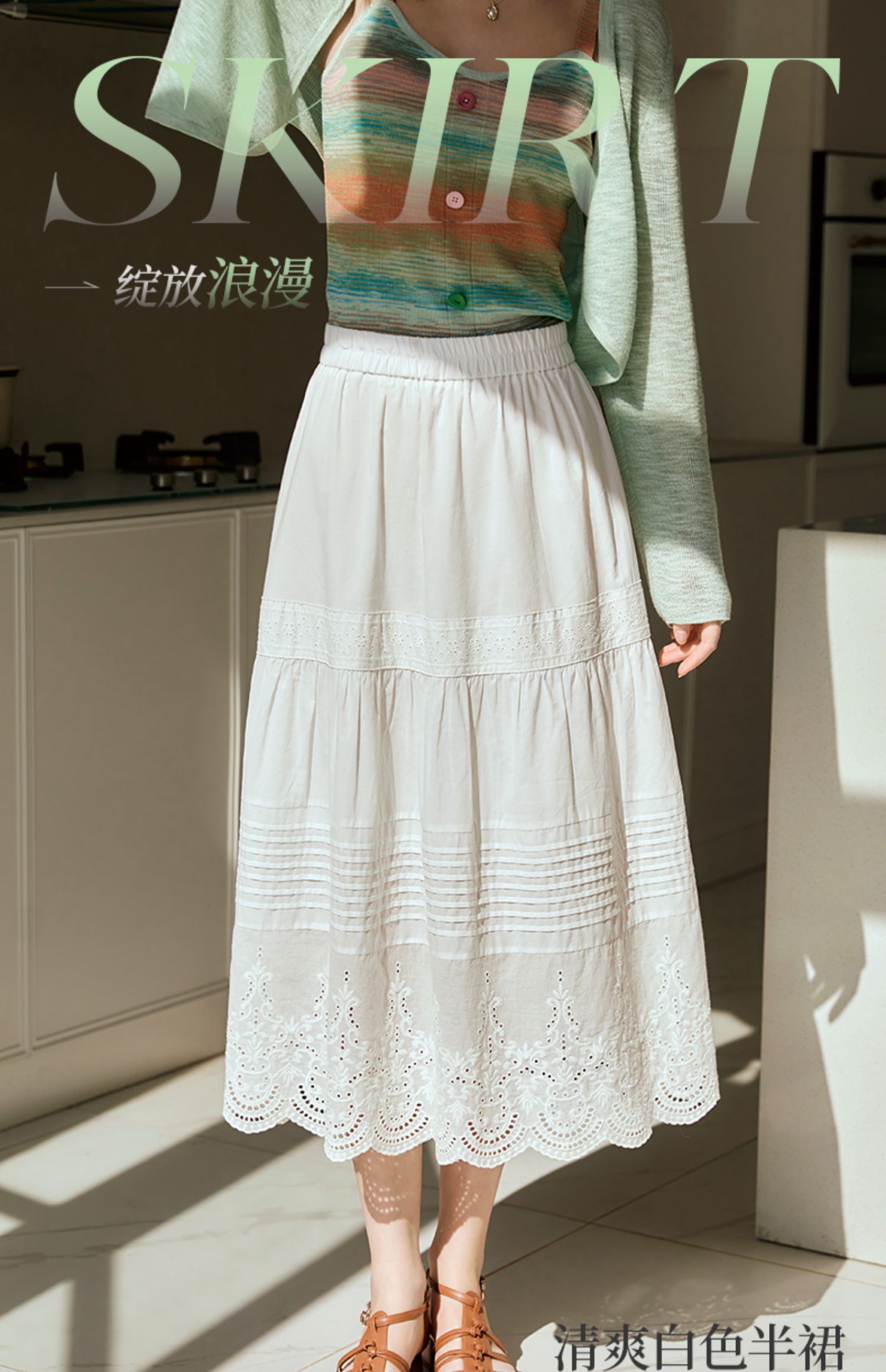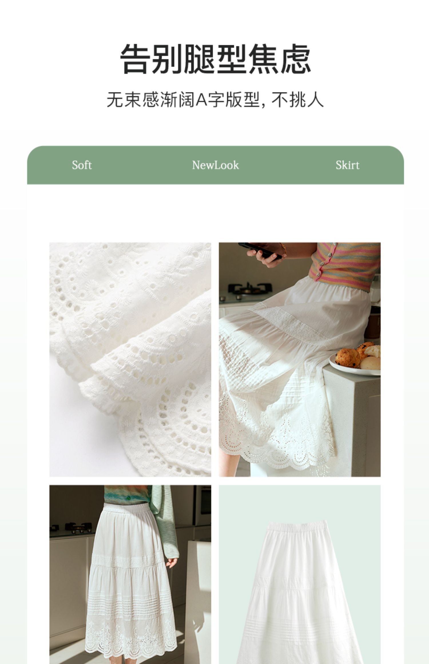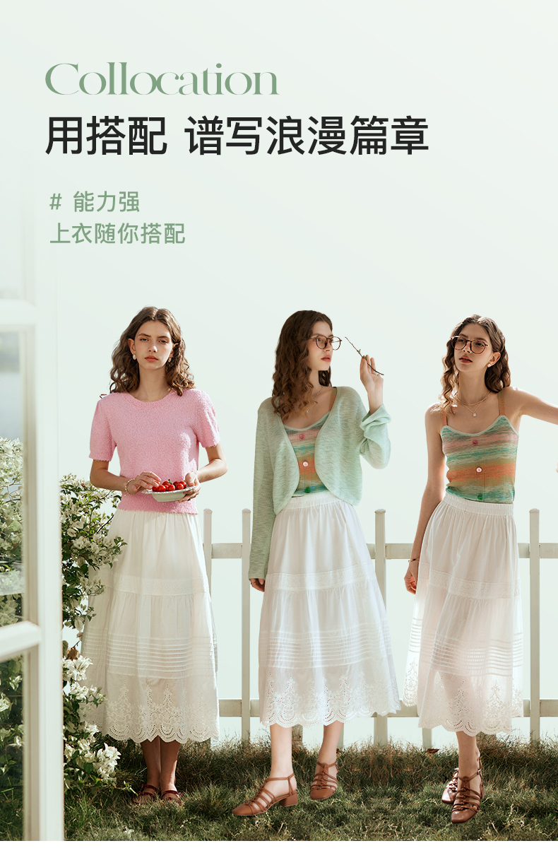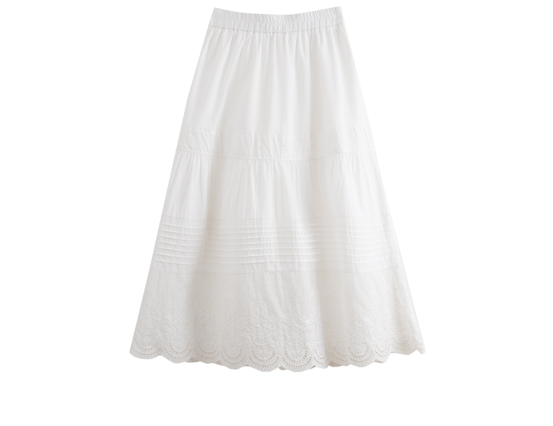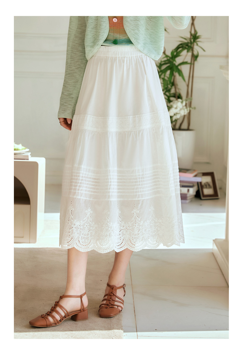 欧芮儿法式白色蛋糕裙半身裙女春夏2024新款高腰花边刺绣半裙长裙
