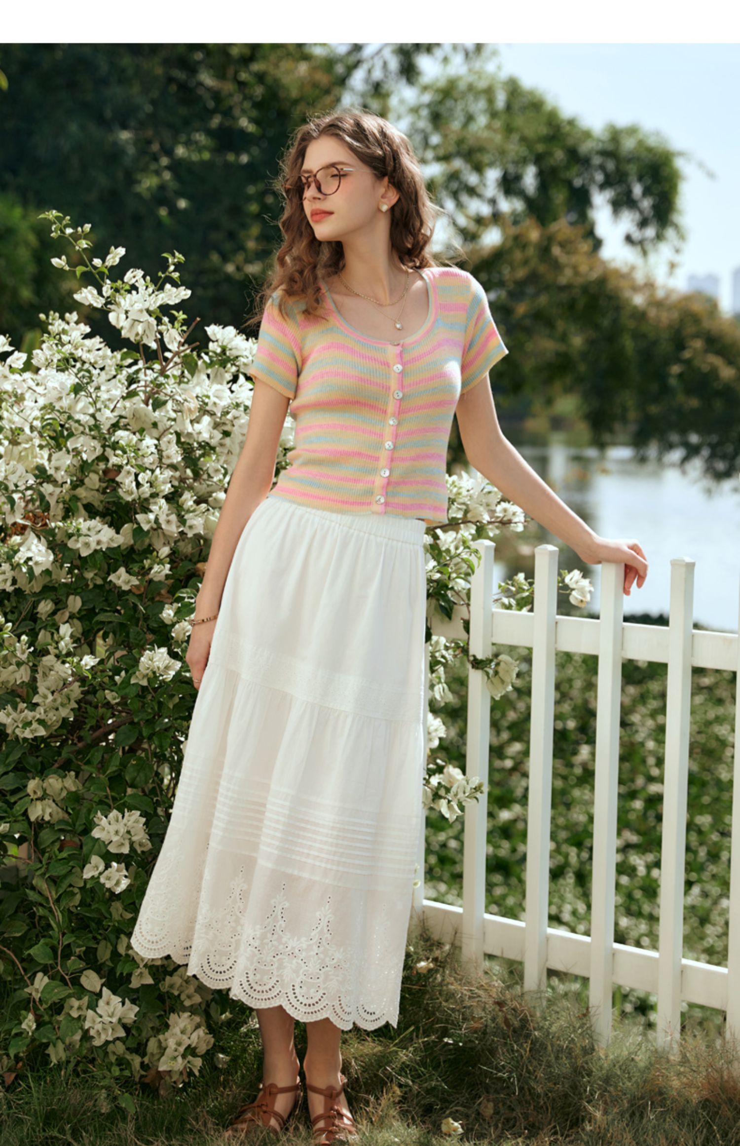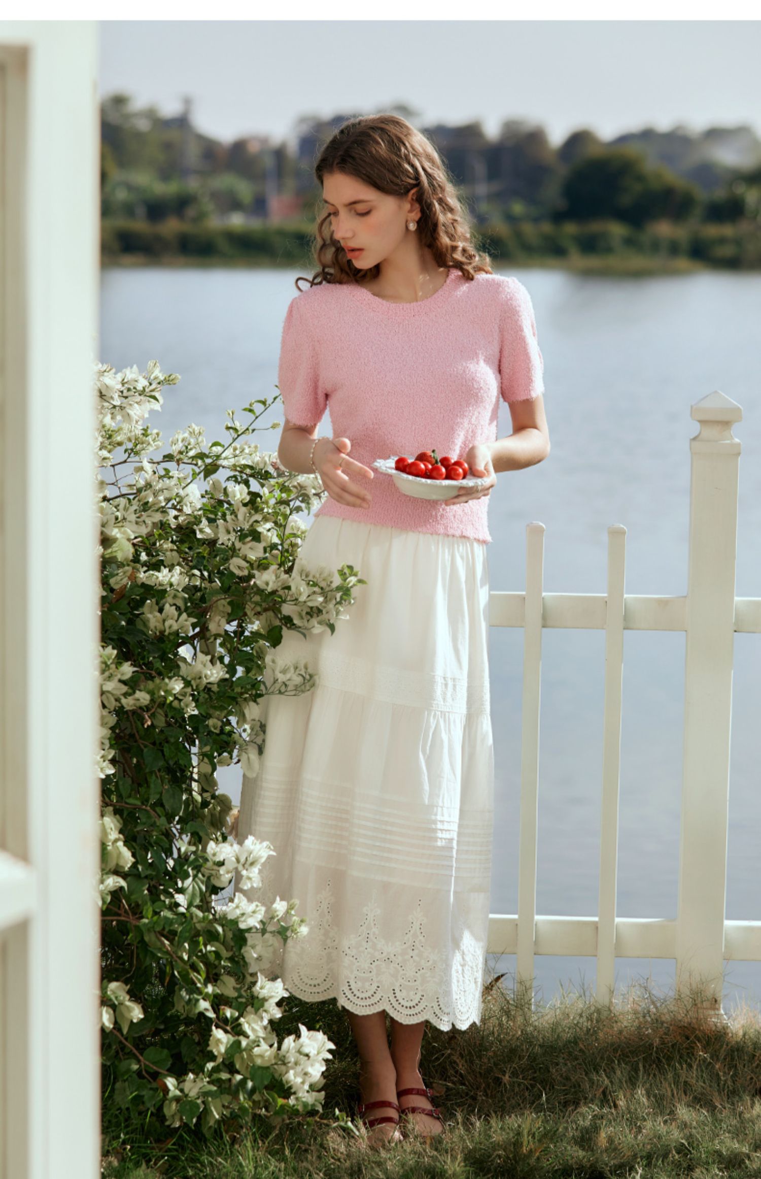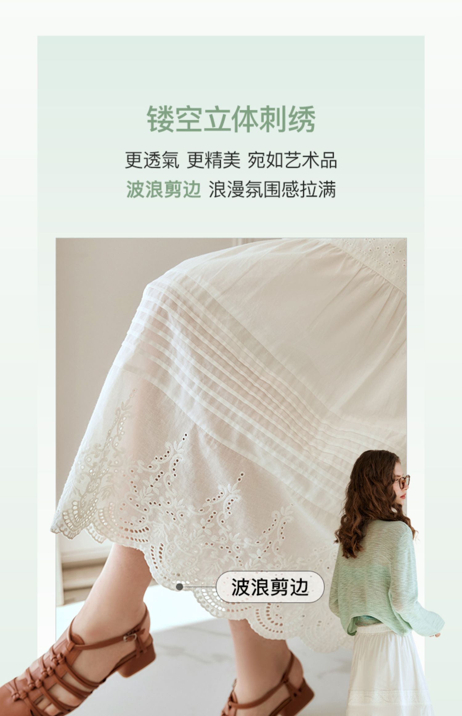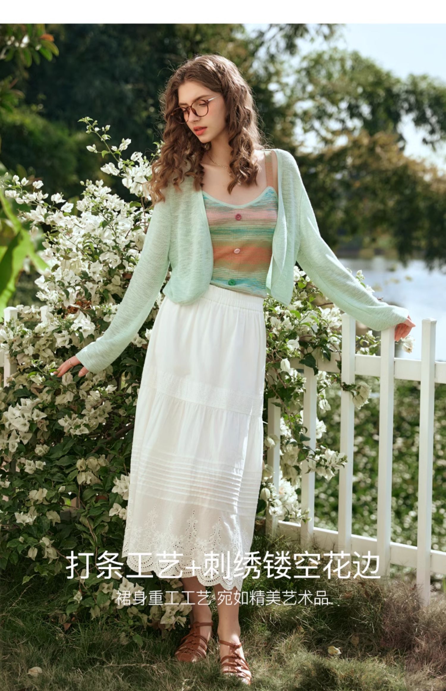 欧芮儿法式白色蛋糕裙半身裙女春夏2024新款高腰花边刺绣半裙长裙
