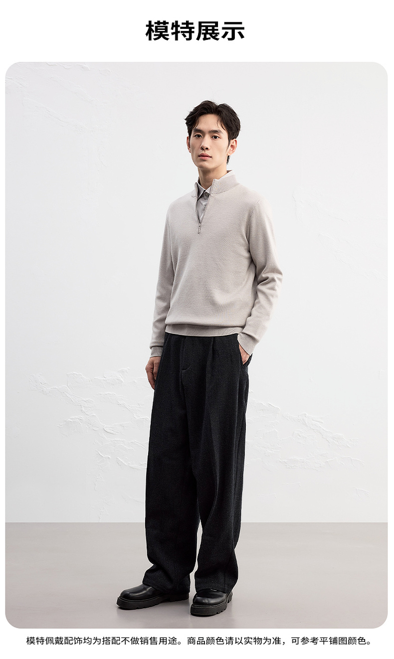 GXG男装【含绵羊毛】25秋季日常百搭舒适保暖翻领拉链男式针织衫K&C